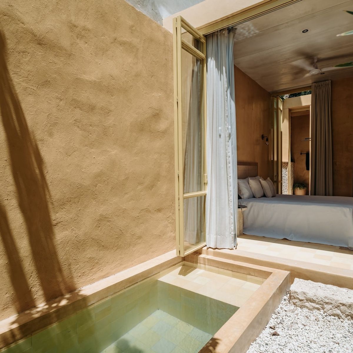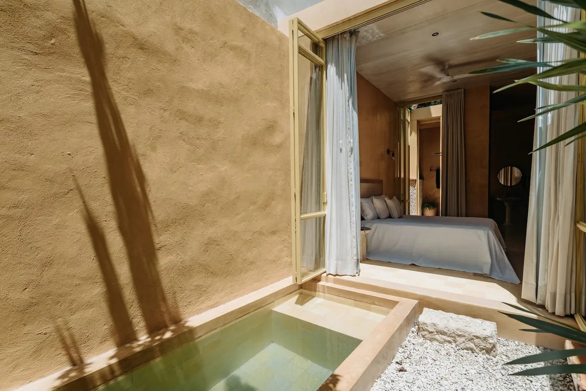 Inside this century-old renovated haven, you’ll discover two distinctive bedrooms, each adorned with unique allure. The ground floor sanctuary offers direct access to an inviting pool and features an al fresco bathroom — a truly private retreat within the property’s confines. Upstairs, find serenity in a chamber that boasts an indoor garden and a sumptuous king-size bed, crafting an intimate liaison with nature at your leisure.