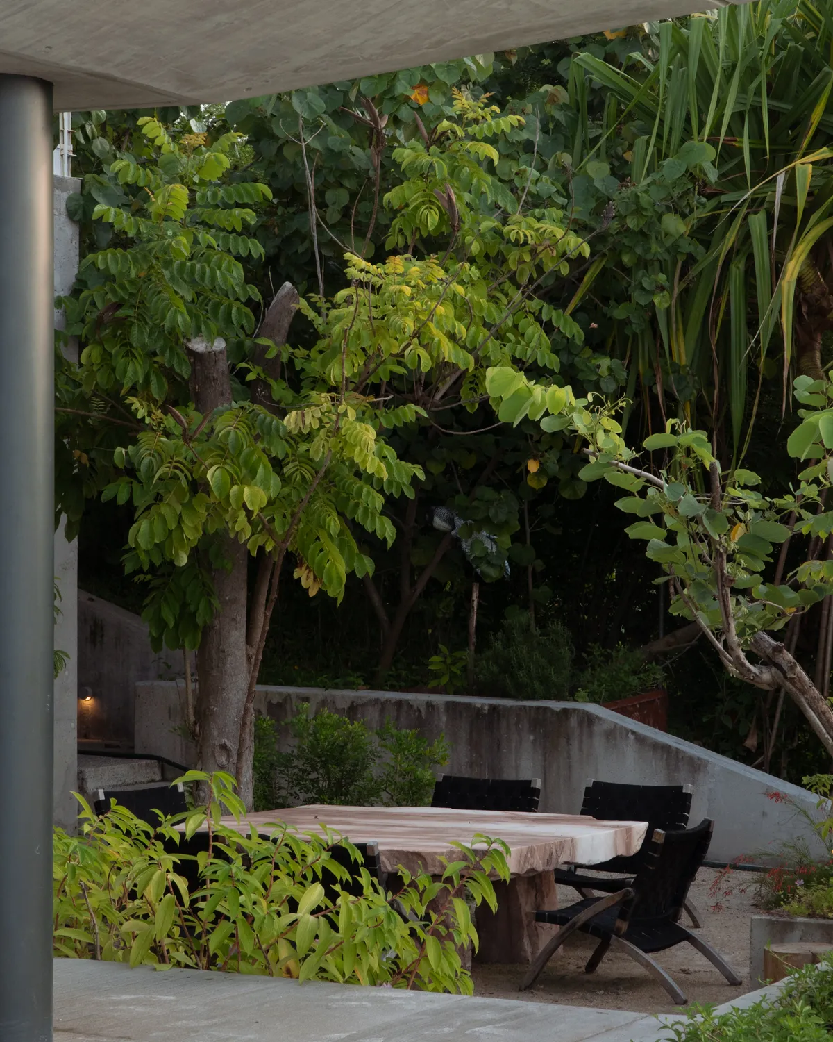 Wild tropical gardens with winding pathways, modern courtyards, and fragrant blooms surround the property, creating the atmosphere of living within the landscape. Sculpture accents were bespoke created by artists and thoughtfully placed throughout, complementing the vibrant greenery and enhancing the serene ambiance.