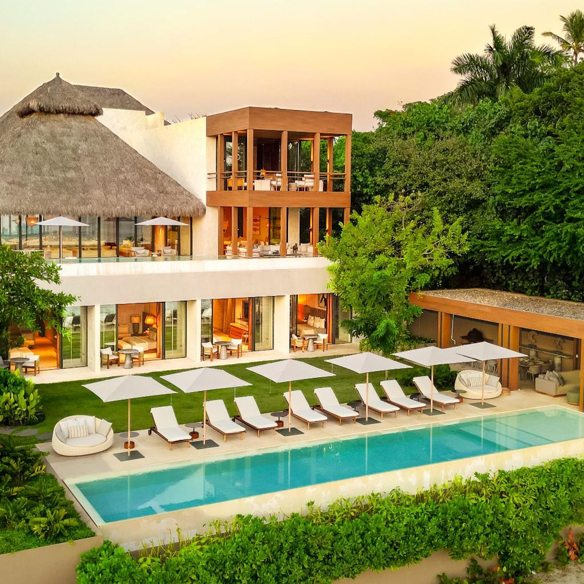 A private, 8-suite luxury villa nestled within the exclusive Paradise Coves gated community in Punta de Mita. With an unrivaled seaside setting and surrounded by the lush jungle and has an unrivaled seaside setting. A house that offers breathtaking views of the vibrant tropical landscape and the magnificent ocean.