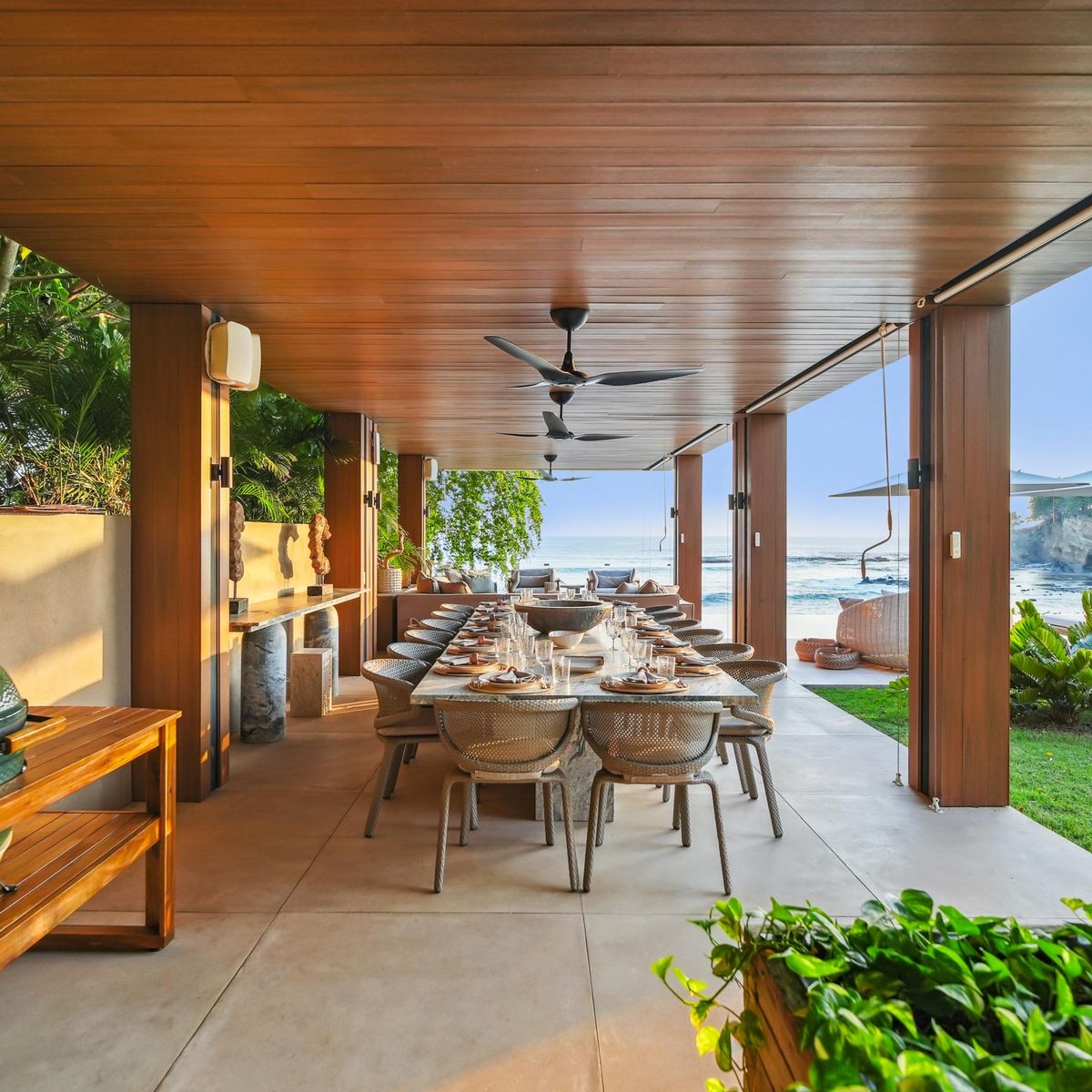 Experience unlimited luxury in this exclusive oceanfront home. Enjoy a private chef and butler, two infinity pools, a private beach, and spacious social areas surrounded by nature. Perfect for families or large groups looking for a unique experience of comfort, privacy, and elegance.