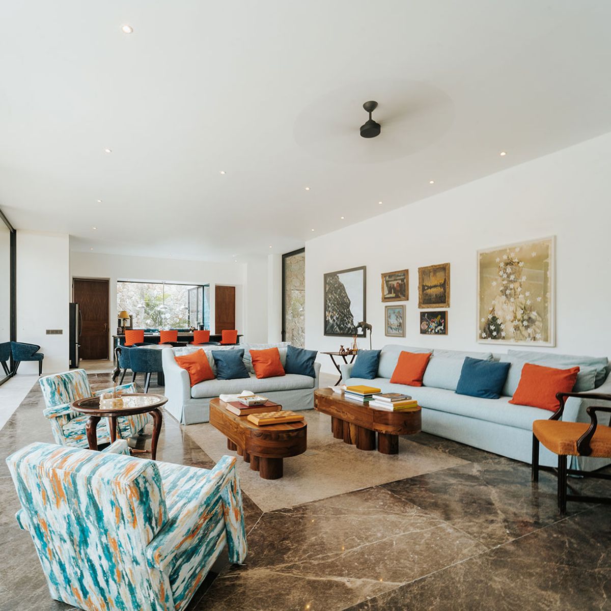 The principal residence has a huge open plan living room with a kitchen with all the most modern appliances and a staff kitchen as well, so entertaining is can be either a group affair or fully catered without you being disturbed.