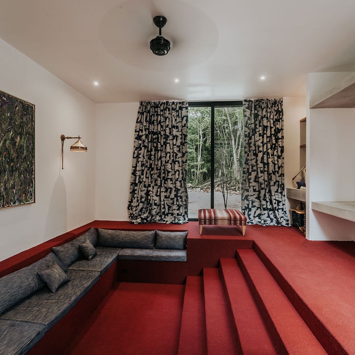 The media room has a sunken seating area for up to 10 people to enjoy the 100 inch TV.