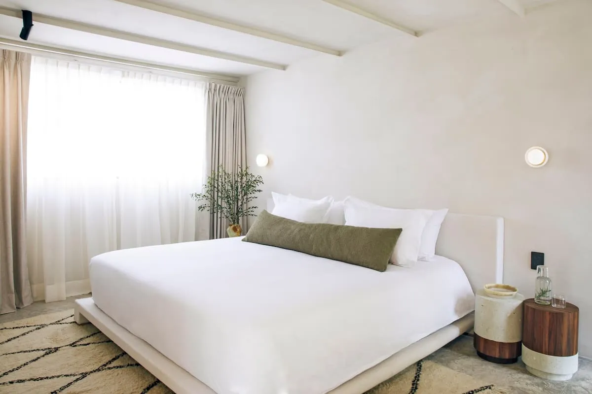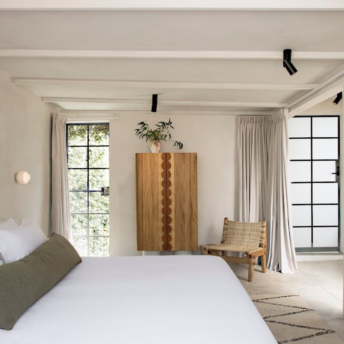 But it's not just about looks—the kitchen boasts a professional stove and various small appliances. Bedrooms are furnished with top-quality mattresses and Portuguese cotton percale linens, ensuring a peaceful night's sleep. Additionally, the house provides fast wifi and a Sonos speaker system.