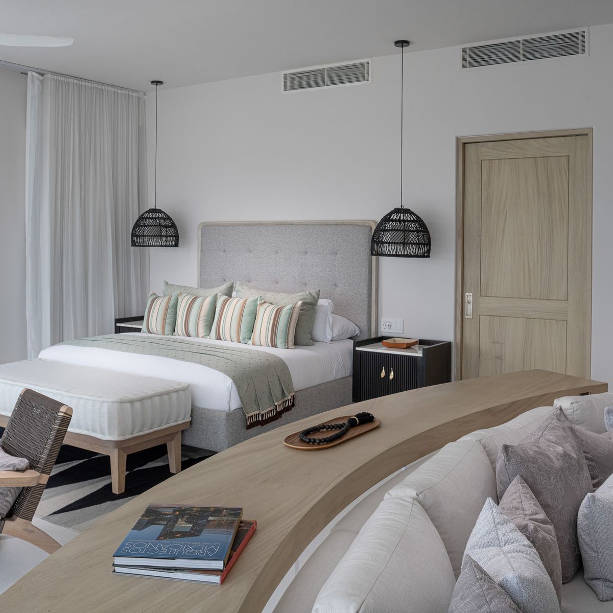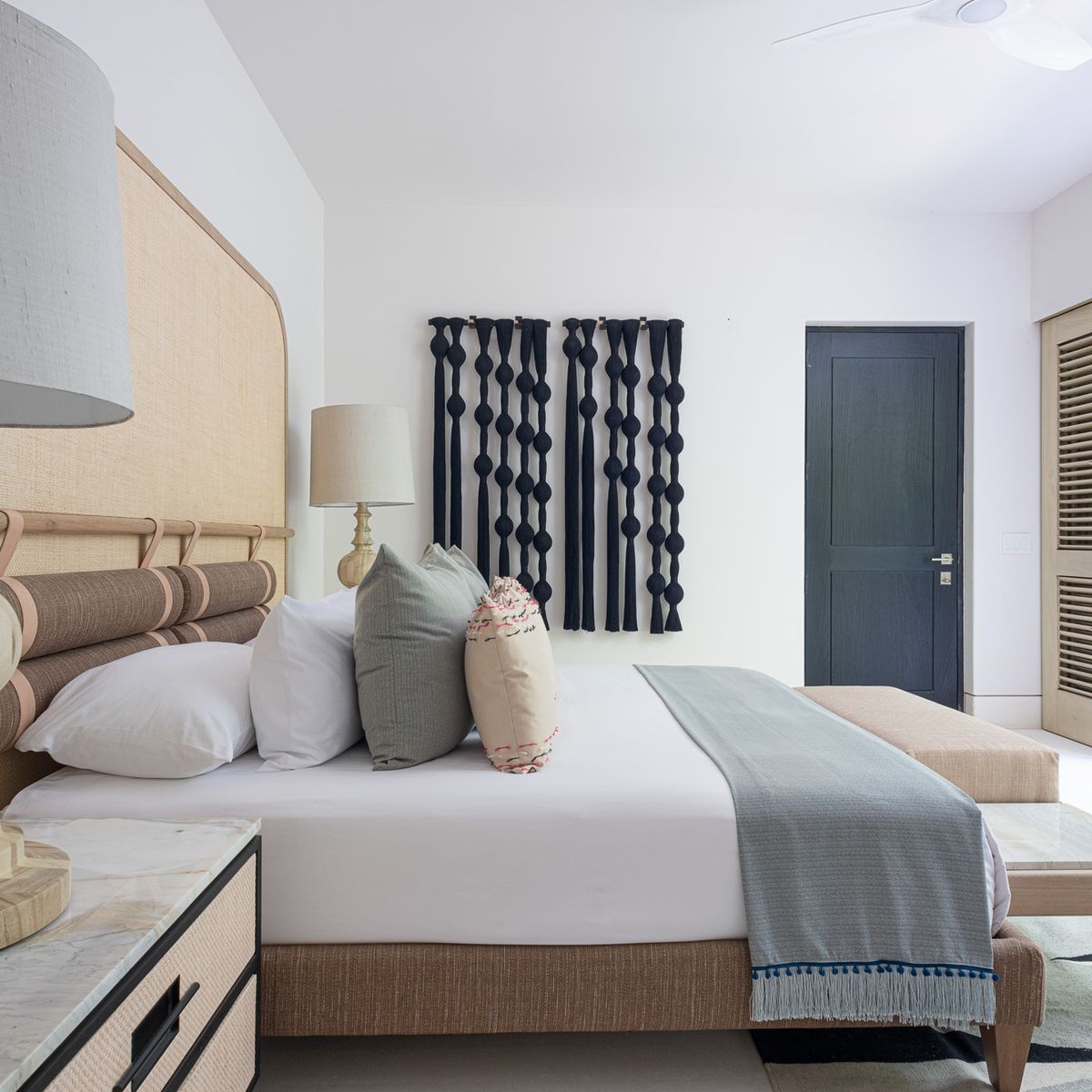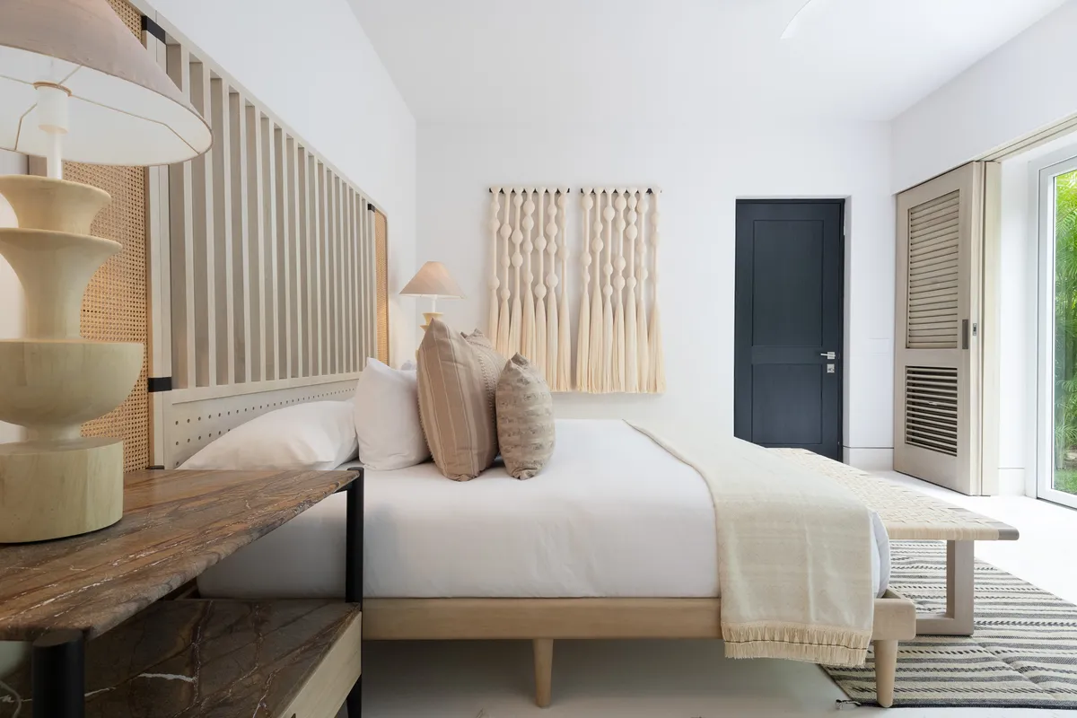 • Bedroom 1 - Primary: King size bed, Ensuite bathroom with stand-alone shower, Walk-in closet, Safe, Ceiling fan, Terrace, Ocean view