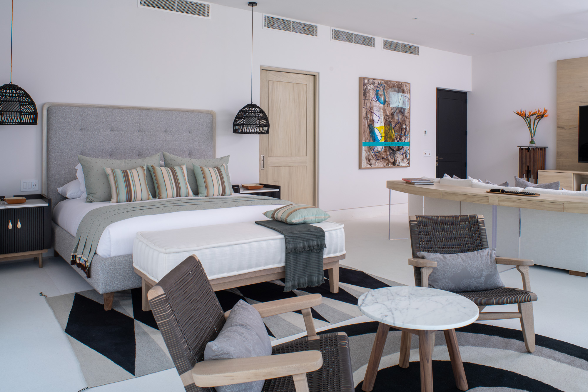 • Bedroom 2: King size bed, Ensuite bathroom with stand-alone shower, Walk-in closet, Television, Safe, Ceiling fan, Terrace, Ocean view