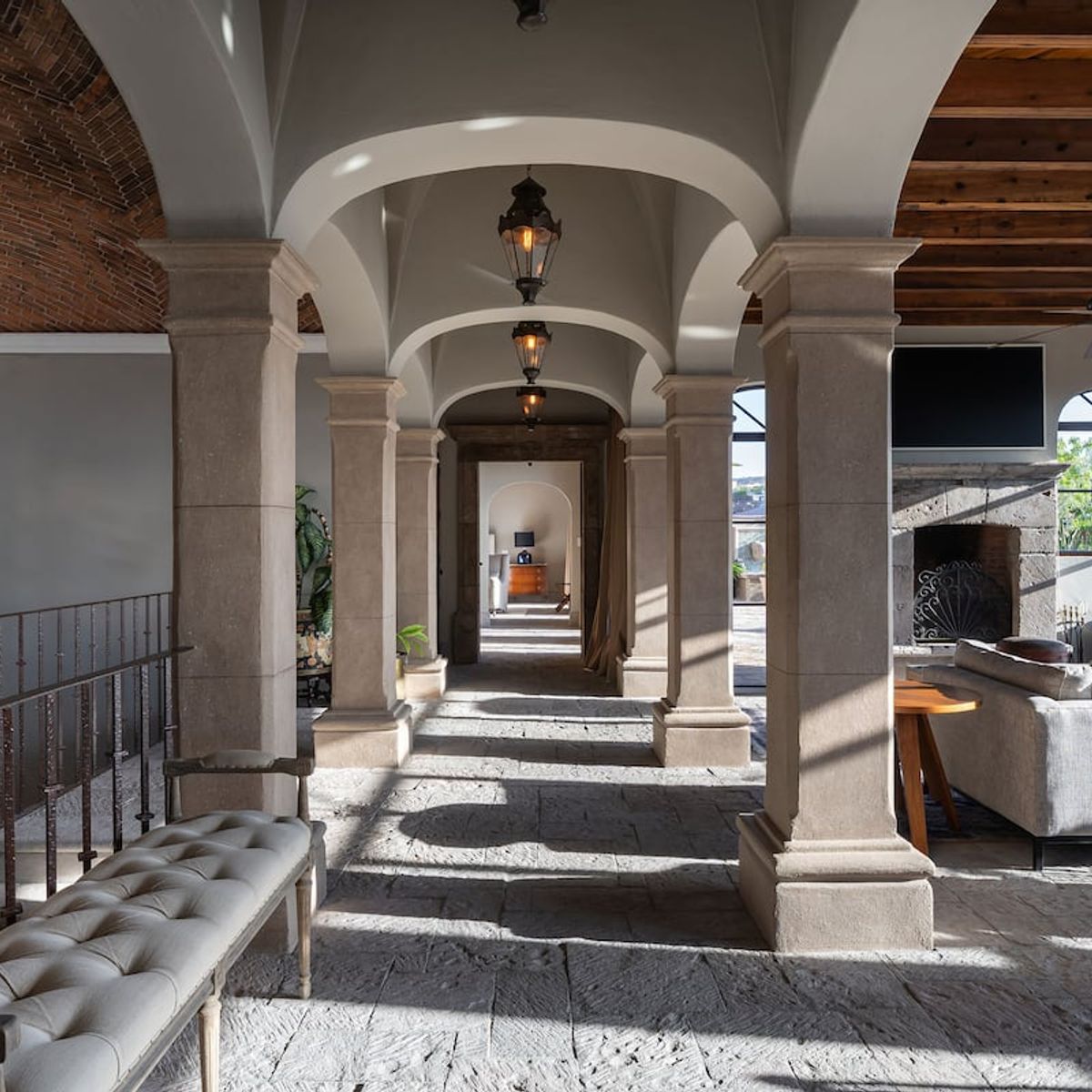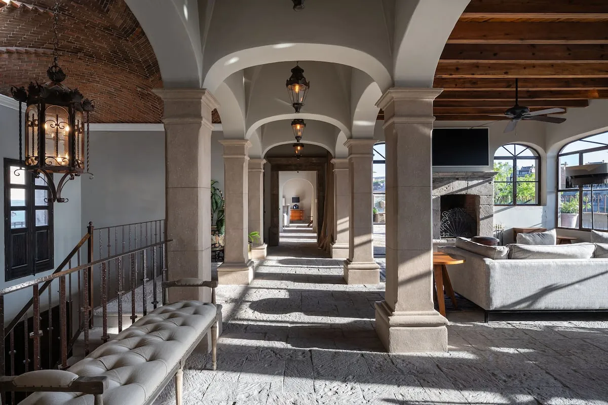 Ideally located in a peaceful neighborhood, The mansion is just a short walk from the restaurants, shops, and charm of San Miguel’s historic Centro. A private two-car garage also makes exploring the city easy and convenient, with additional parking on the street.