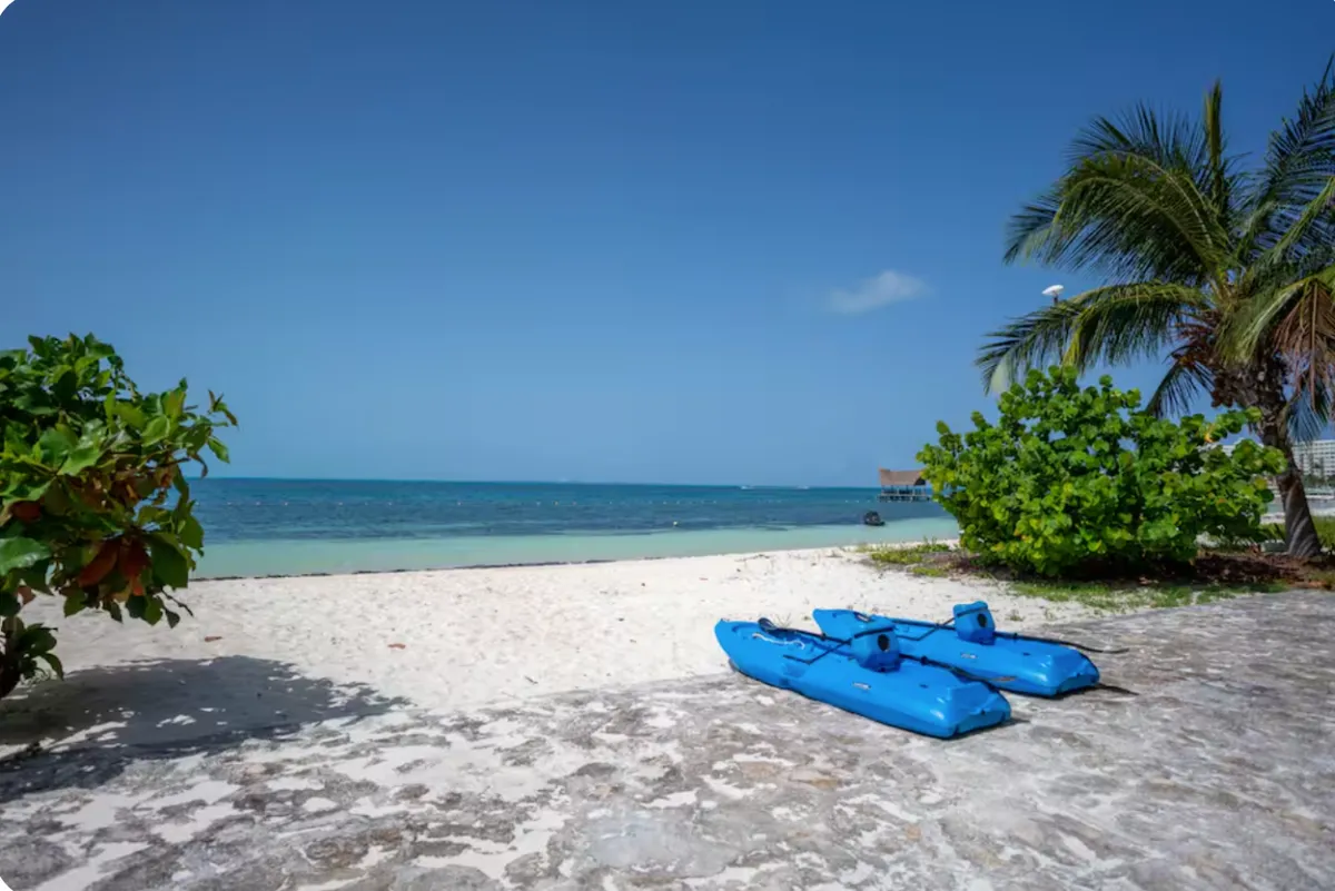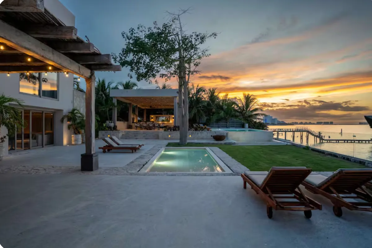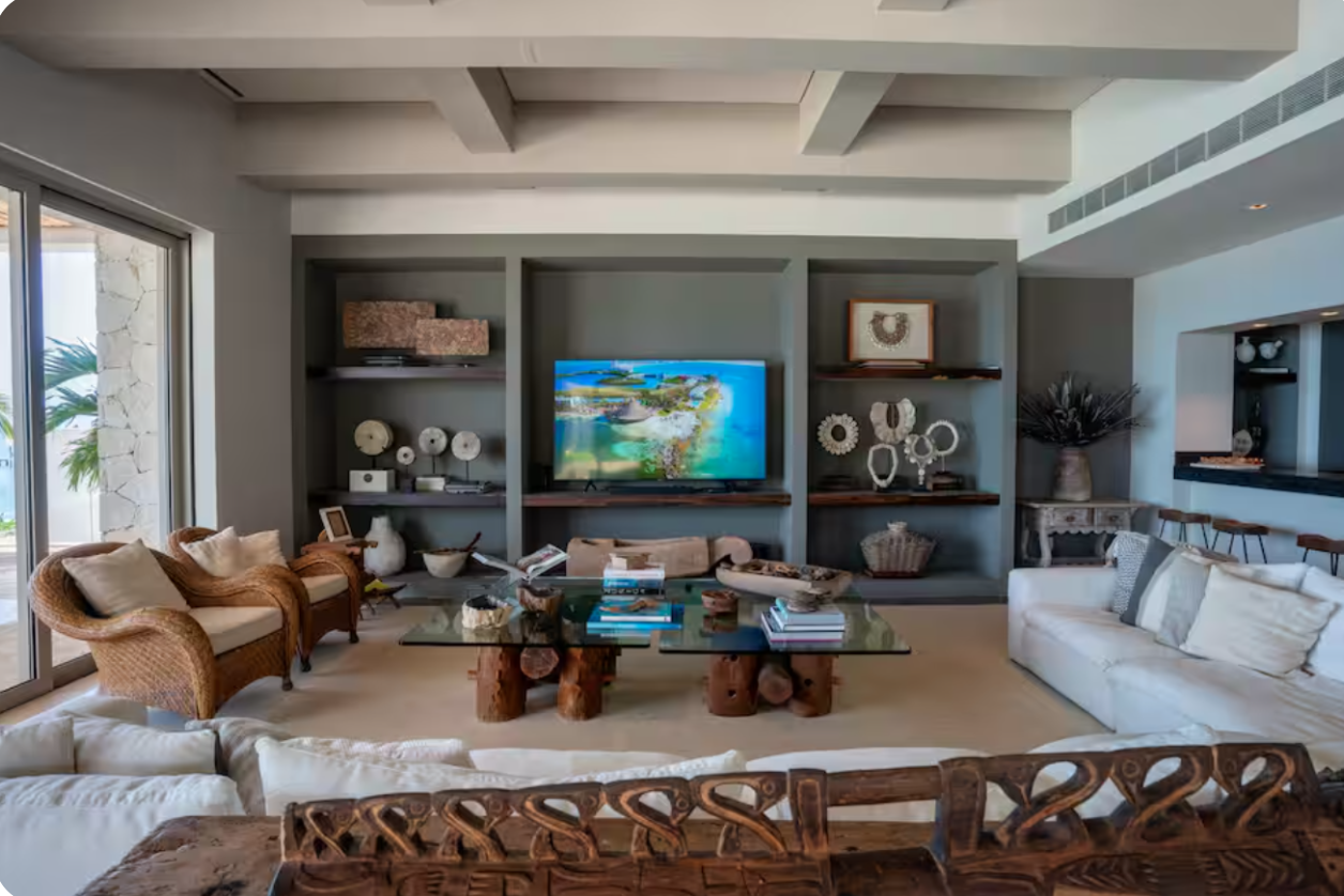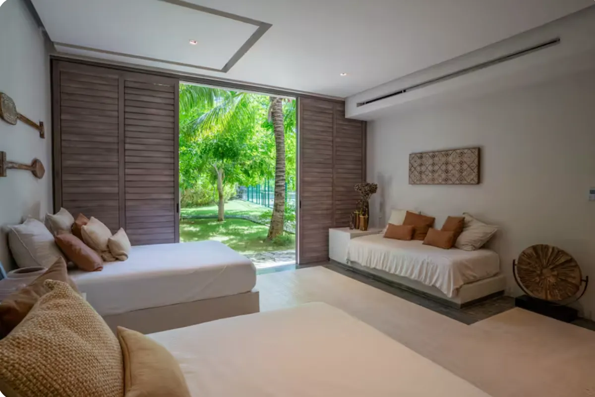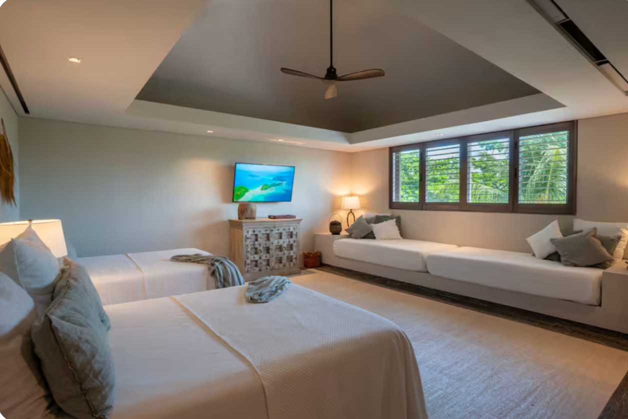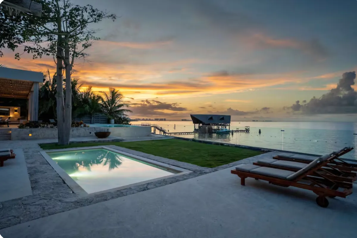 With direct access to one of Cancun’s most desirable beaches, this villa offers a refined setting for groups seeking privacy, comfort, and a true oceanfront experience.