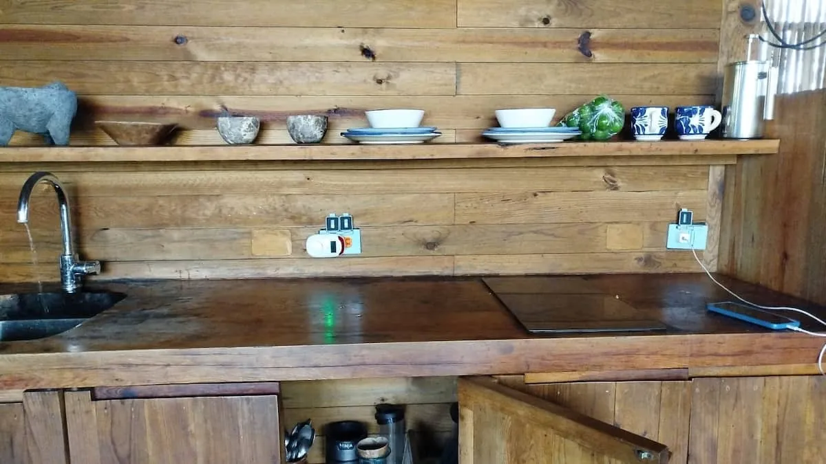 Free Wifi but the space is really meant for people who want to disconnect and live an ecological and natural experience. Far from "glamping", the idea is for it to feel like a wrecked wooden barge, abandoned and disconnected from civilisation. Lights are dim, internet unstable, showers are warm (not hot), and there's no air conditioning because the breeze naturally flows through the house. The house is open to nature but also to the tempest that comes with it. Especially during rain season (July-September) this is a place for adventurous souls, for pirates, sailors, mermaids and water nymphs that don't fear getting wet or encountering all kinds of wild life but rather enjoy being outside and feel the storm.
