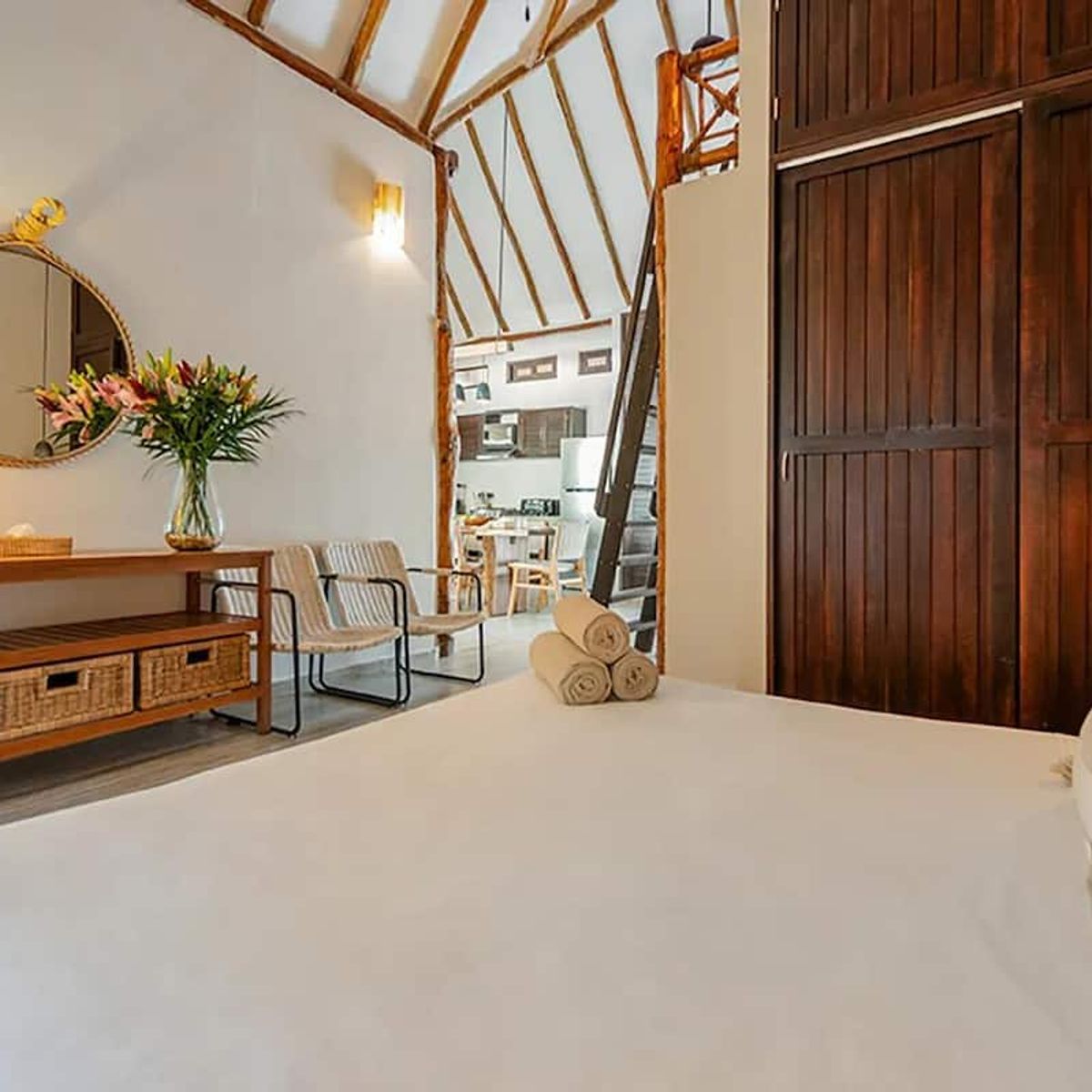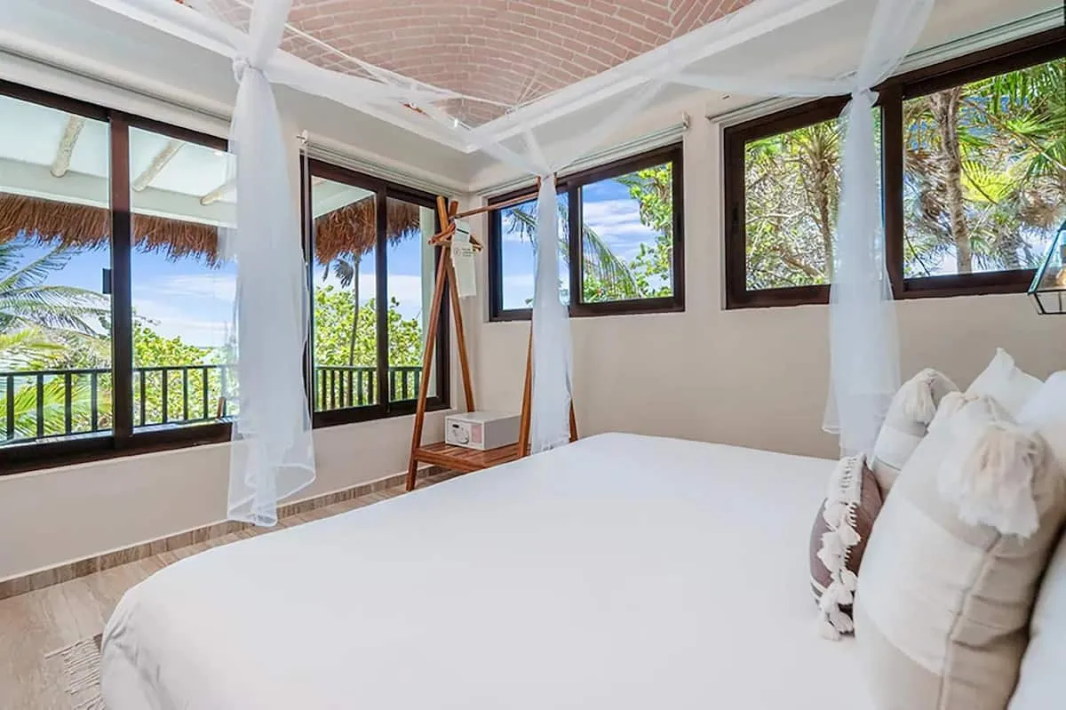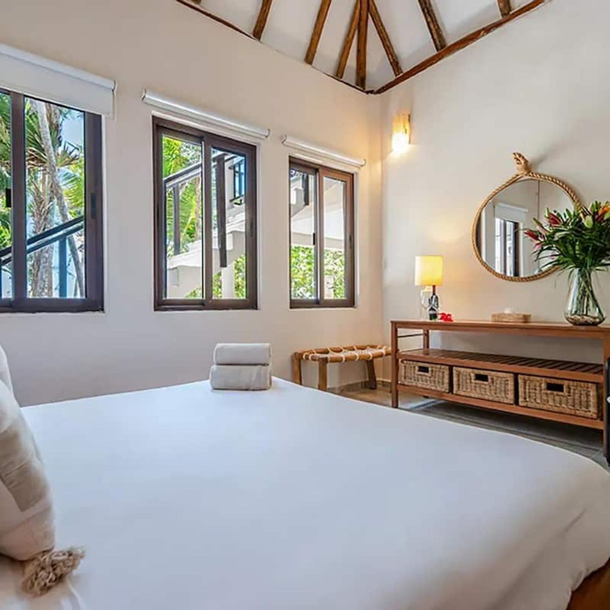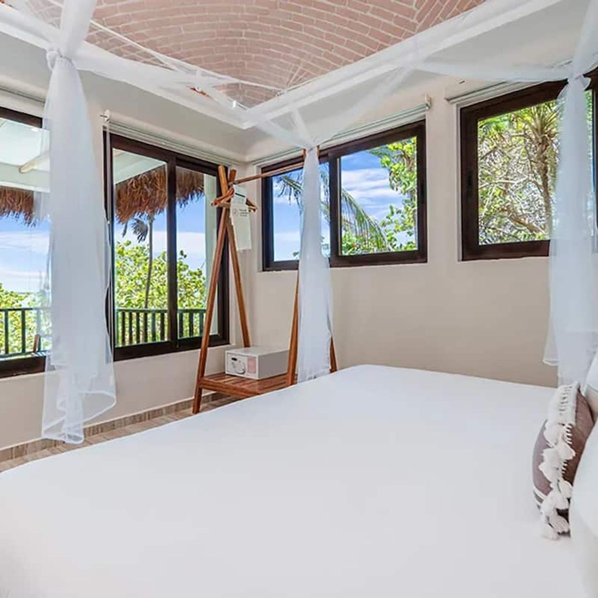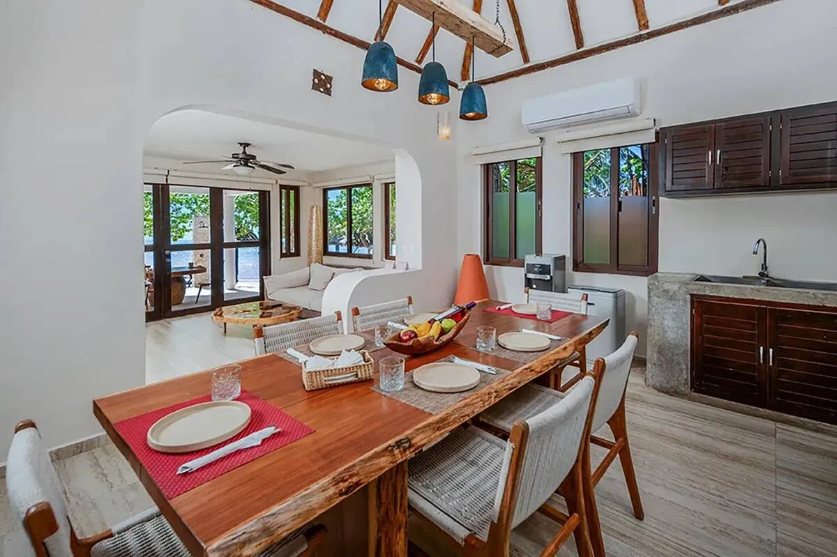 Nestled along the tranquil shores of Soliman Bay, Casita Corazón Uno is a bohemian beachfront retreat designed for those seeking barefoot luxury and coastal serenity. This airy two-bedroom bungalow features two king suites and a cozy loft with twin beds, accommodating up to six guests, ideal for families or small groups.