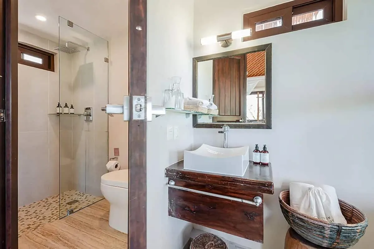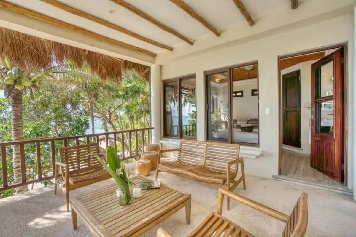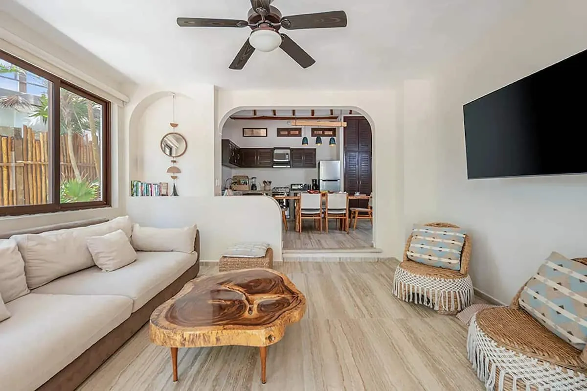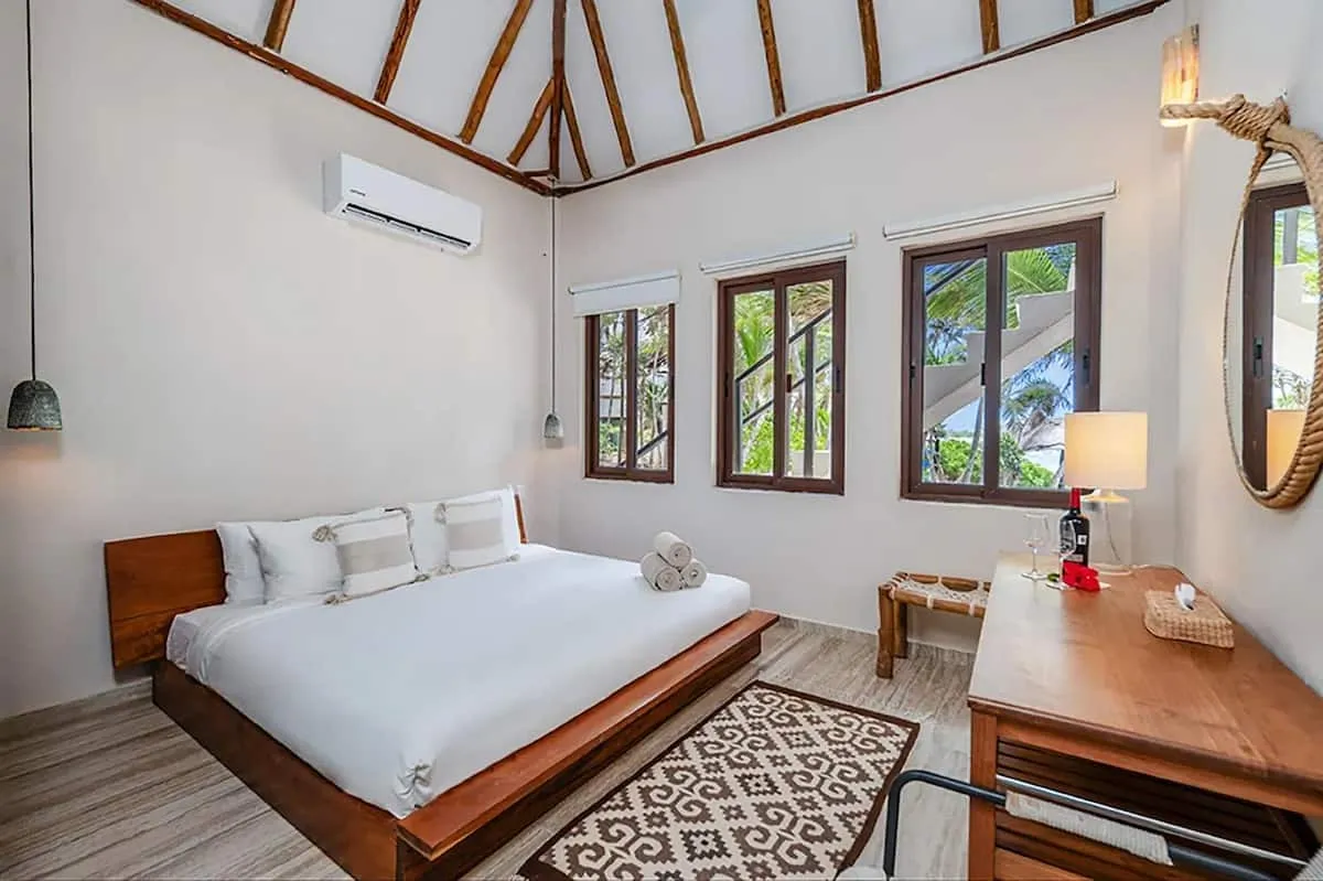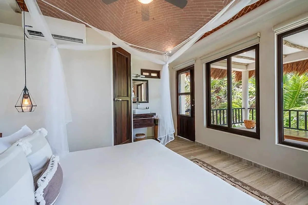 Nestled along the tranquil shores of Soliman Bay, Casita Corazón Uno is a bohemian beachfront retreat designed for those seeking barefoot luxury and coastal serenity. This airy two-bedroom bungalow features two king suites and a cozy loft with twin beds, accommodating up to six guests, ideal for families or small groups.