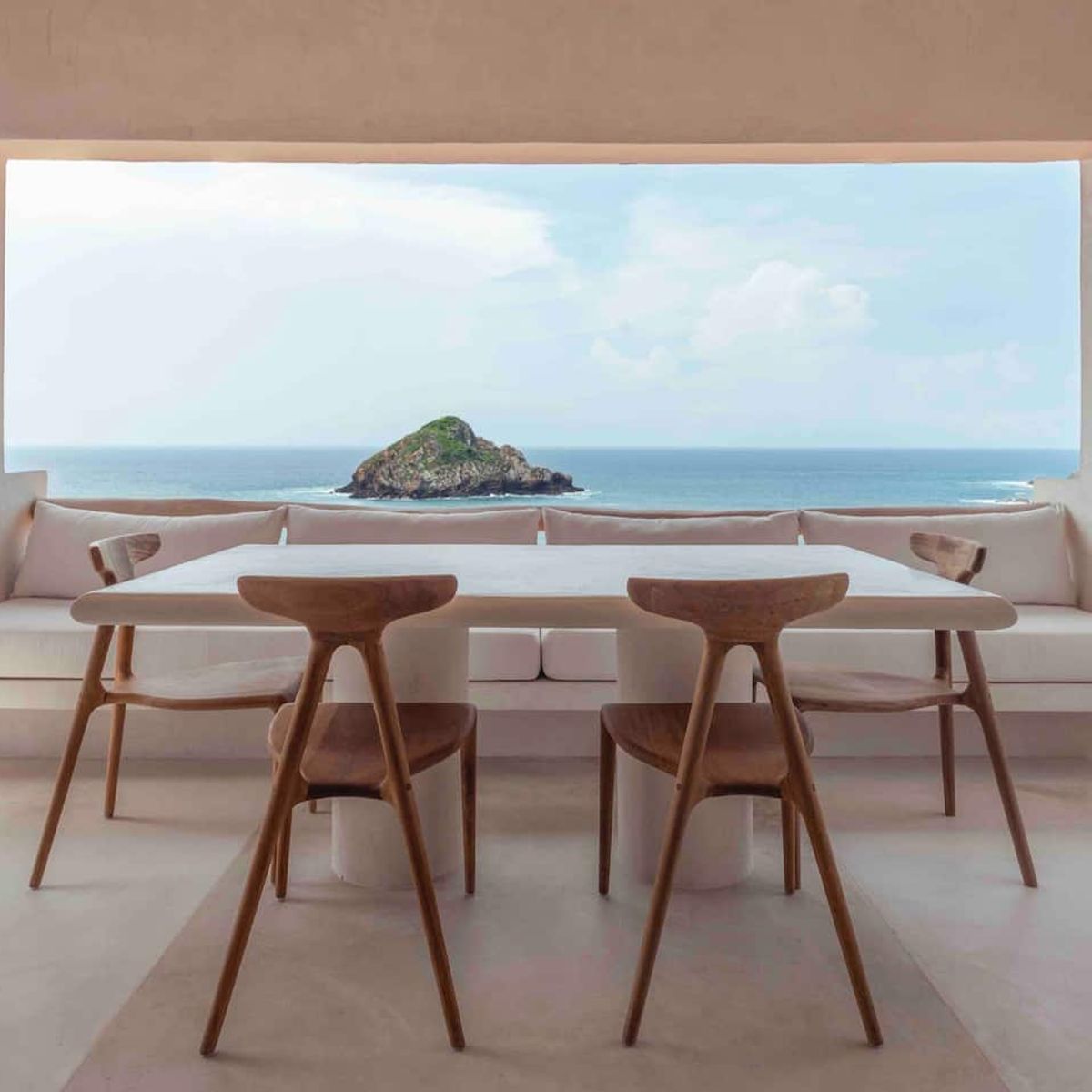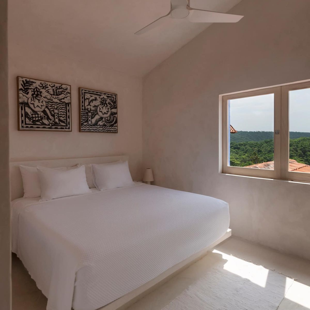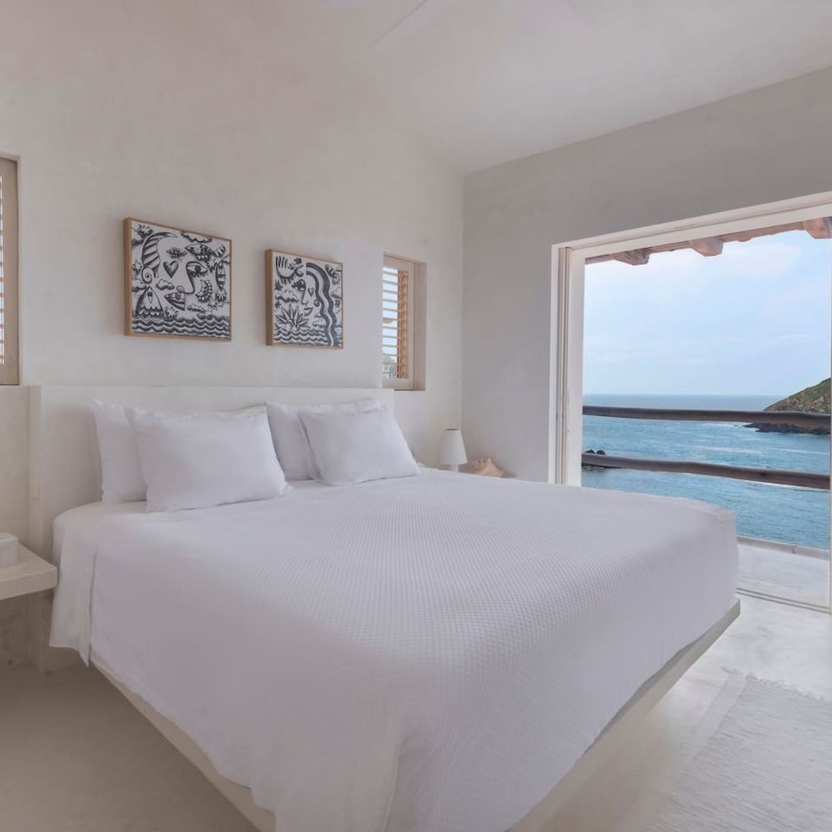 Designed for four adults, the residence features a refreshed interior, preserving the area's classic charm. It offers two private king suites, each with an ensuite bathroom. Stunning panoramic views are visible throughout, accessible from the main living room terrace and the primary suite's private balcony.