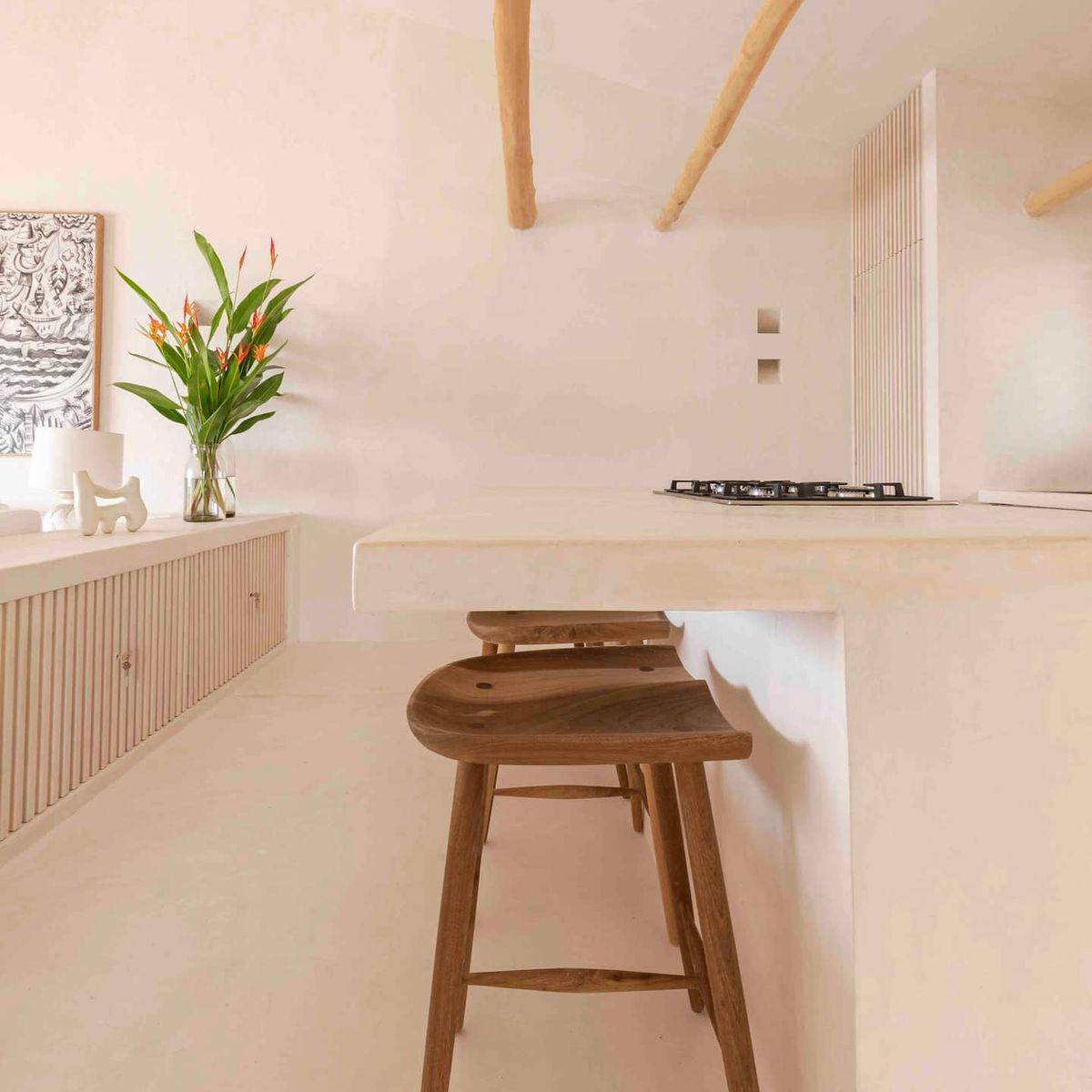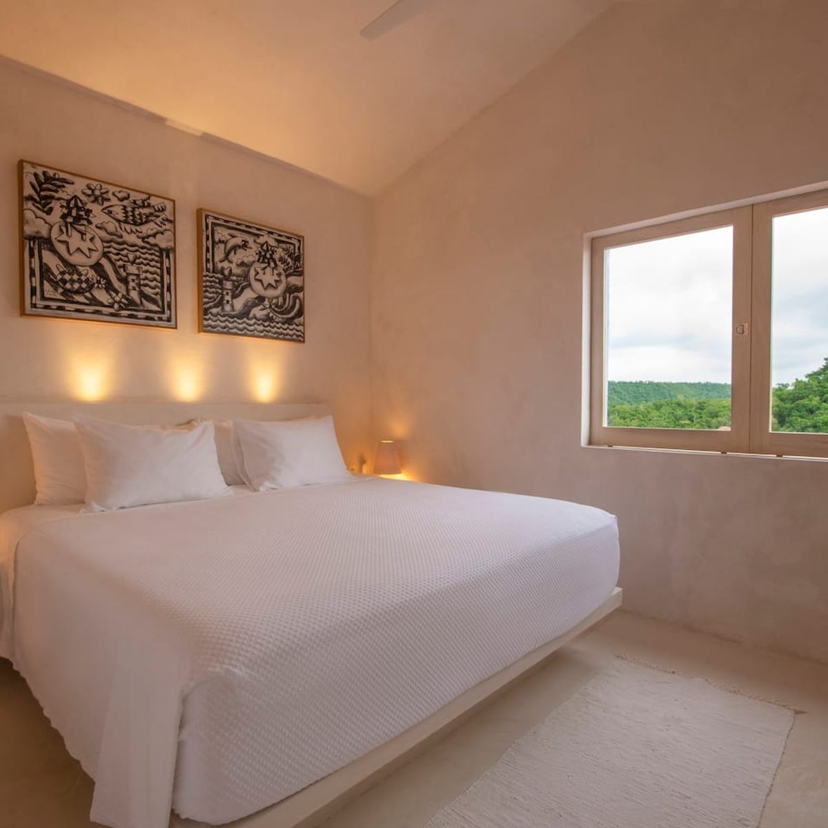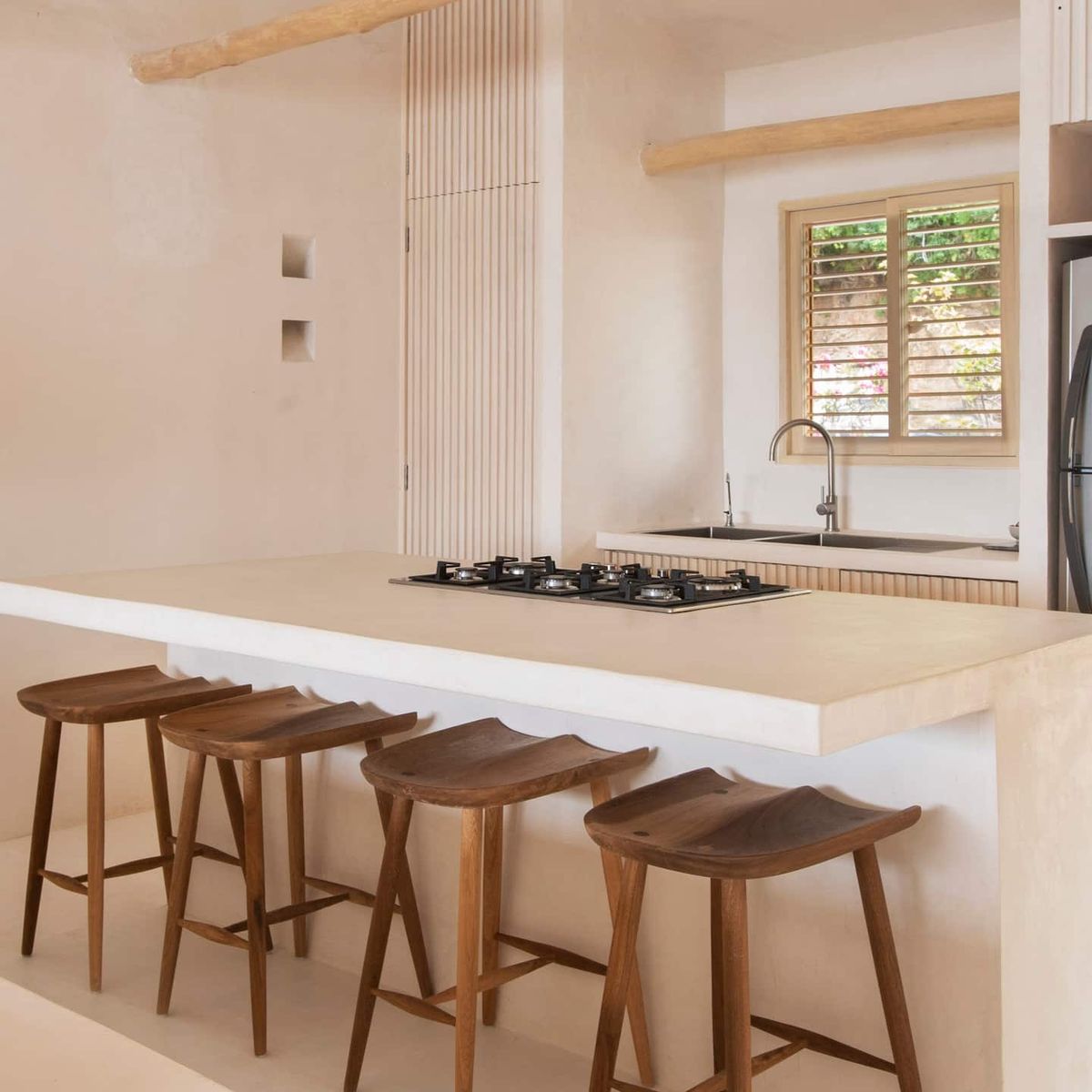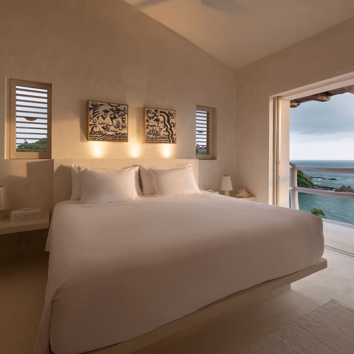 The fully equipped modern kitchen includes a refrigerator, stove, microwave, and tasteful tableware. Guests also receive access to the nearby Playa Rosa, located just minutes away.