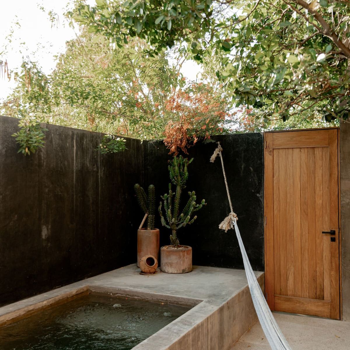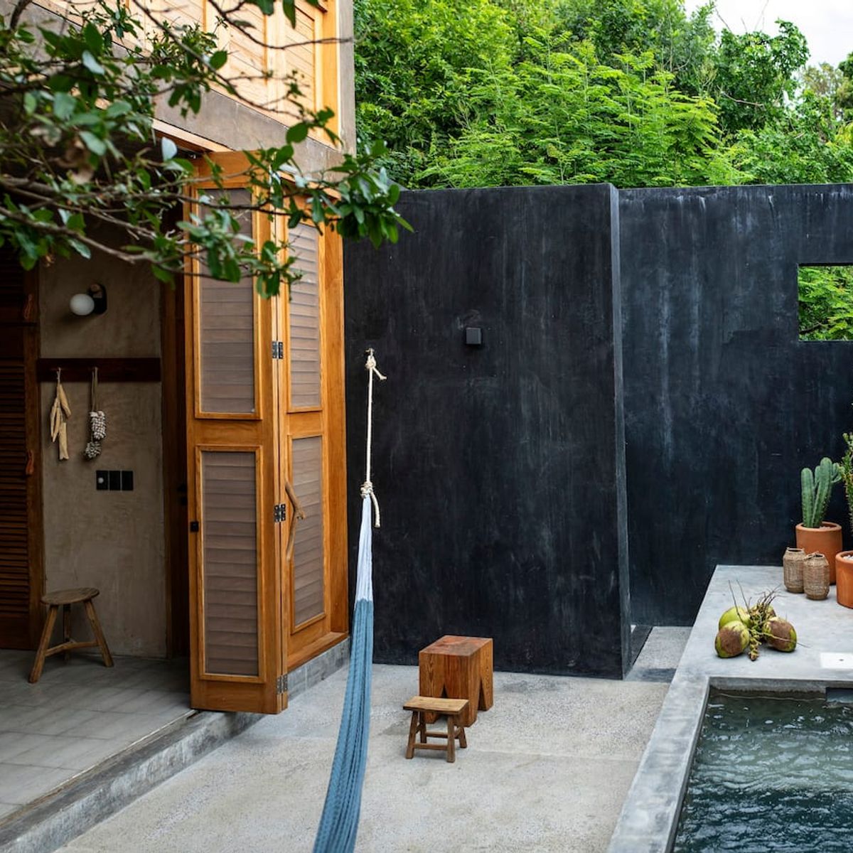 Casita Erizo has three levels. On the ground floor is the common space, with a living room, a dining room for four people, a fully equipped kitchenette and a bathroom with an outdoor shower with hot water. This space opens to a private patio that has a freshwater plunge pool and a hammock.