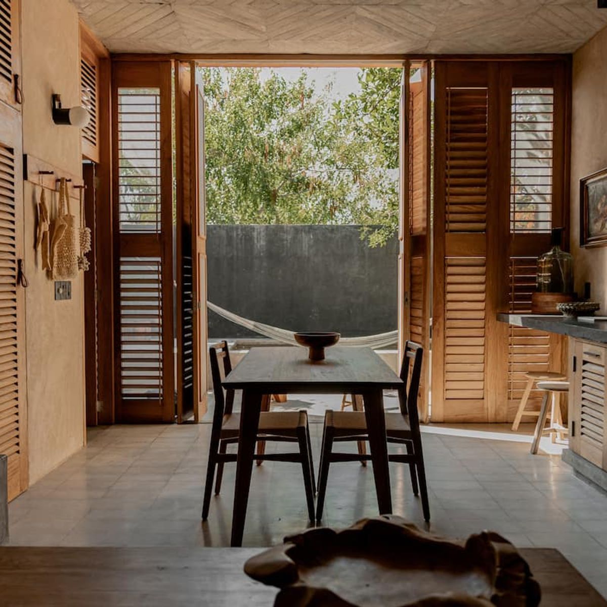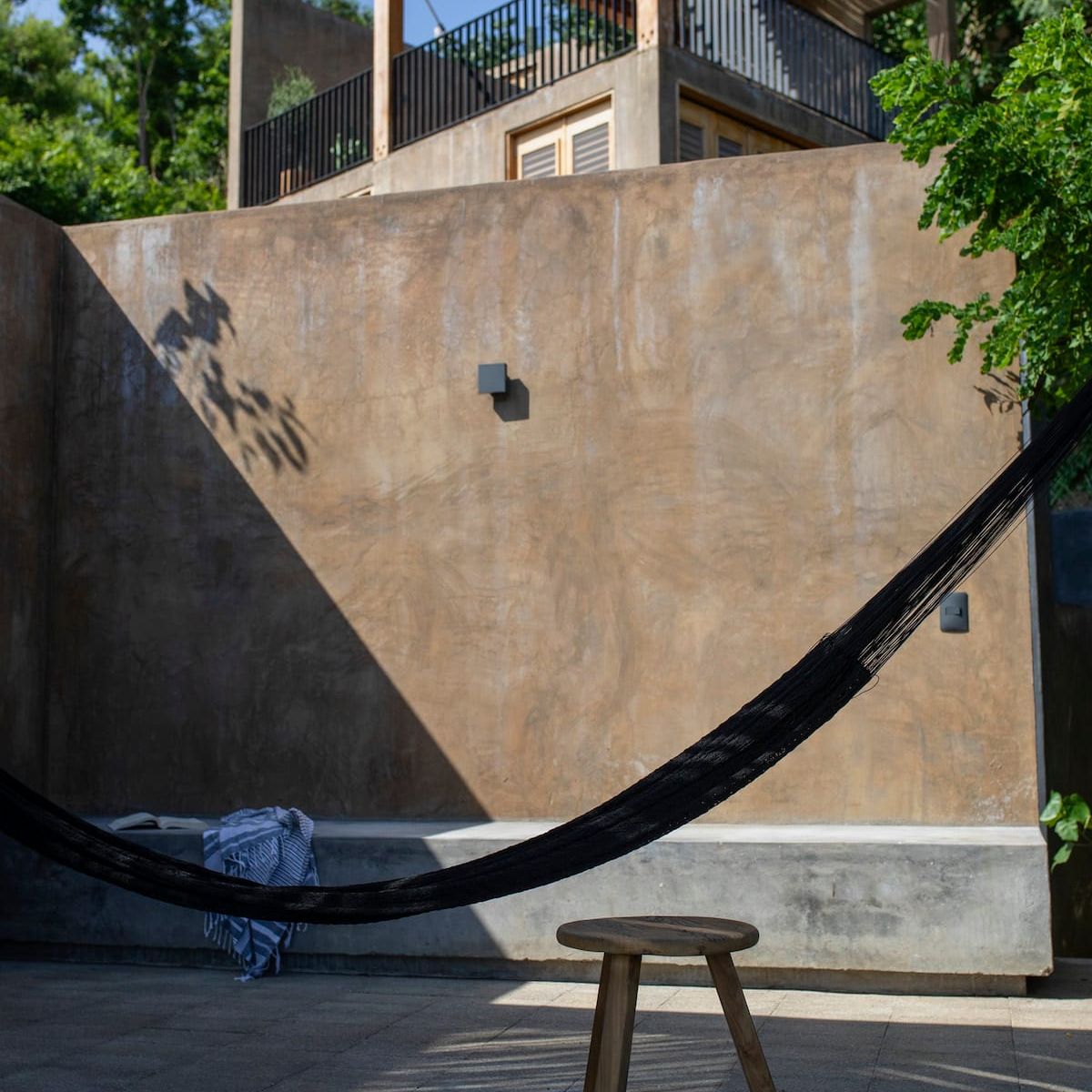 The external staircase continues to the third floor, where there is a terrace with panoramic views of Mermejita beach, a shaded space and two hammocks.