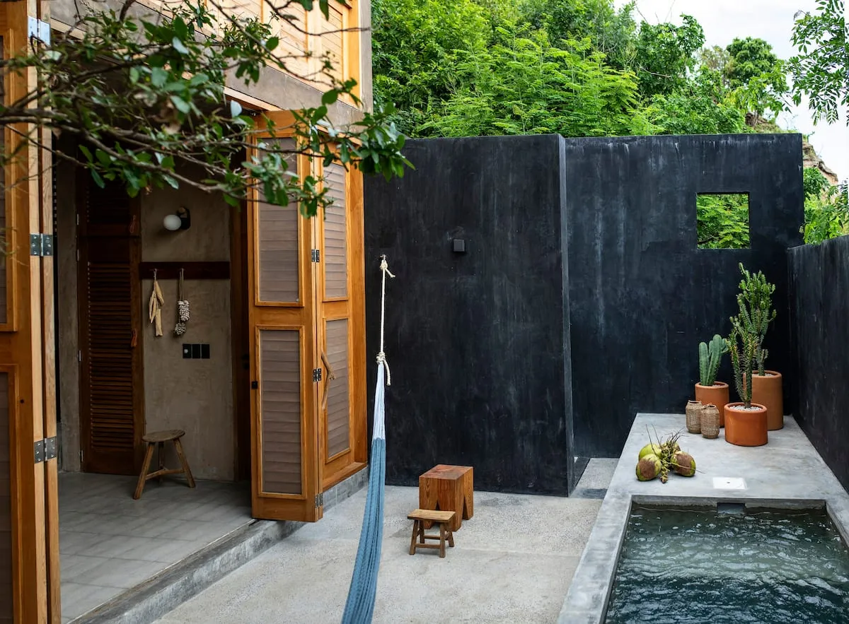 Casita Erizo has three levels. On the ground floor is the common space, with a living room, a dining room for four people, a fully equipped kitchenette and a bathroom with an outdoor shower with hot water. This space opens to a private patio that has a freshwater plunge pool and a hammock.