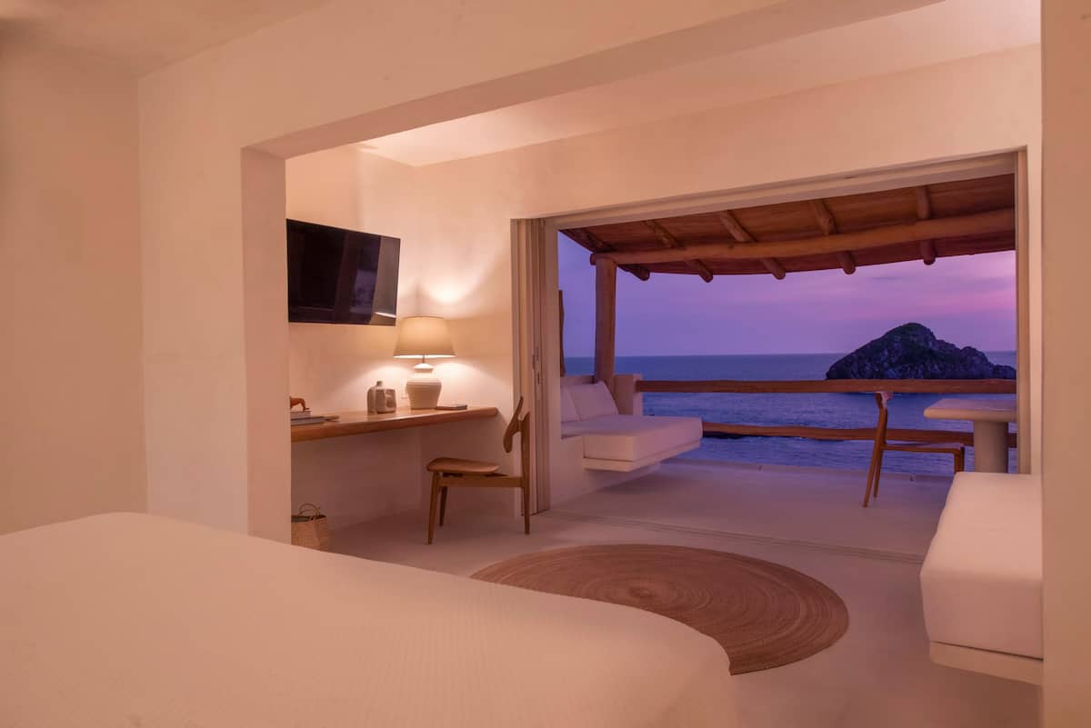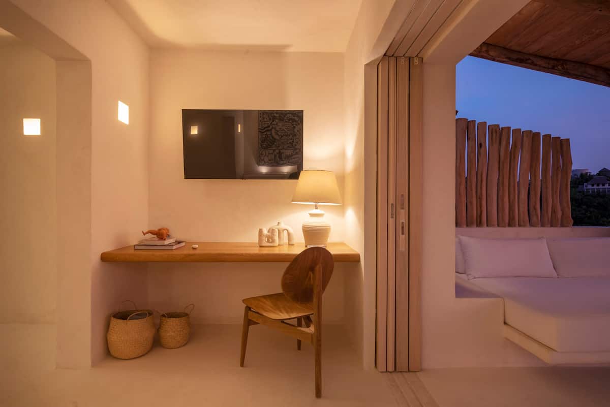 They have a comfortable king size bed with amazing view. They also have a relaxation area to watch TV with a smart tv of excellent resolution, and a Netflix account especially from the house. They have a comfortable desk in case you need to work at home, and a beautiful balcony where you can enjoy the most beautiful sunsets from a large armchair. They also have a dining room for 2 people to have breakfast with the best view.