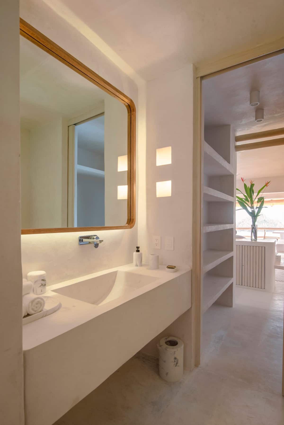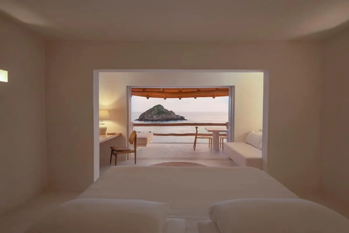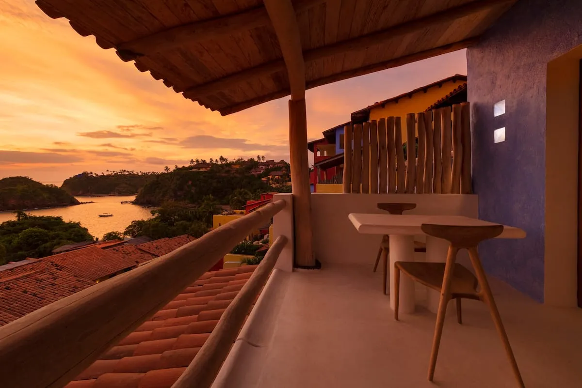 One of the advantages of this little house is its easy access as it is only one level down from the parking lot. Just go down a few steps to enter the cottage and you can drive to the beach or restaurants without problem. You can also walk down between the houses to Playa Rosa. Casita Jaguarundi has an exceptional view at Casitas de las Flores.