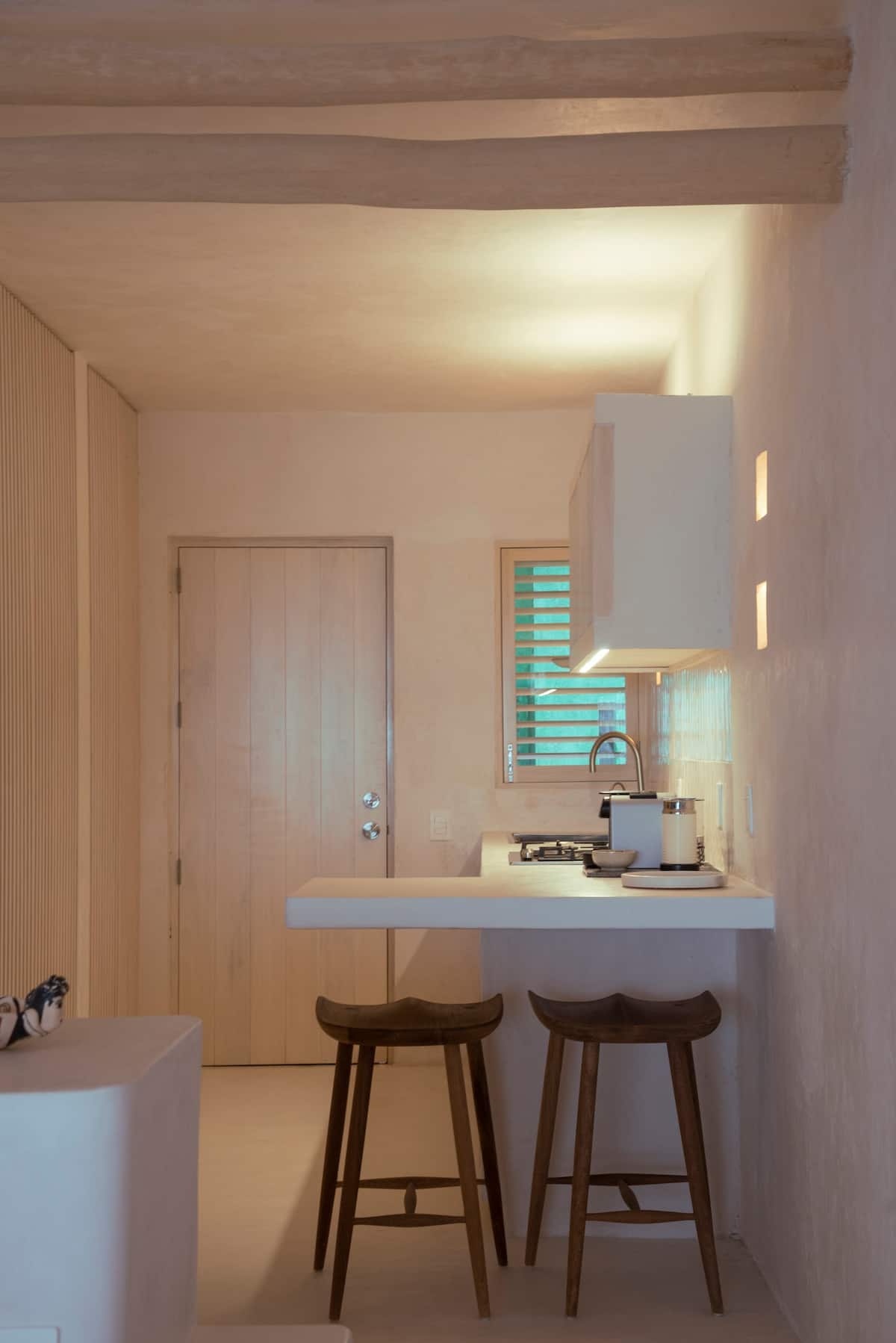 You can enjoy a beautiful view from practically the entire house, it is a comfortable studio single room for two adults with a kitchen equipped with refrigerator, stove, electric oven, microwave oven, cooking utensils, drip coffee maker, nespresso coffee maker and a beautiful dishes perfect for making a nice table set-up.