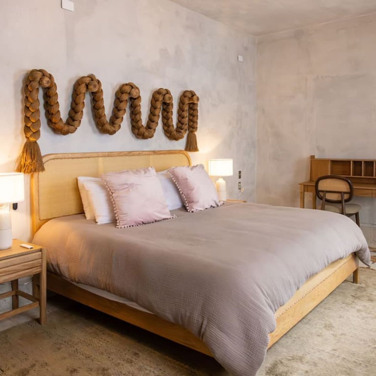 - Bedroom 4 has a king-size bed, a work desk, and a private bathroom and a pool view.