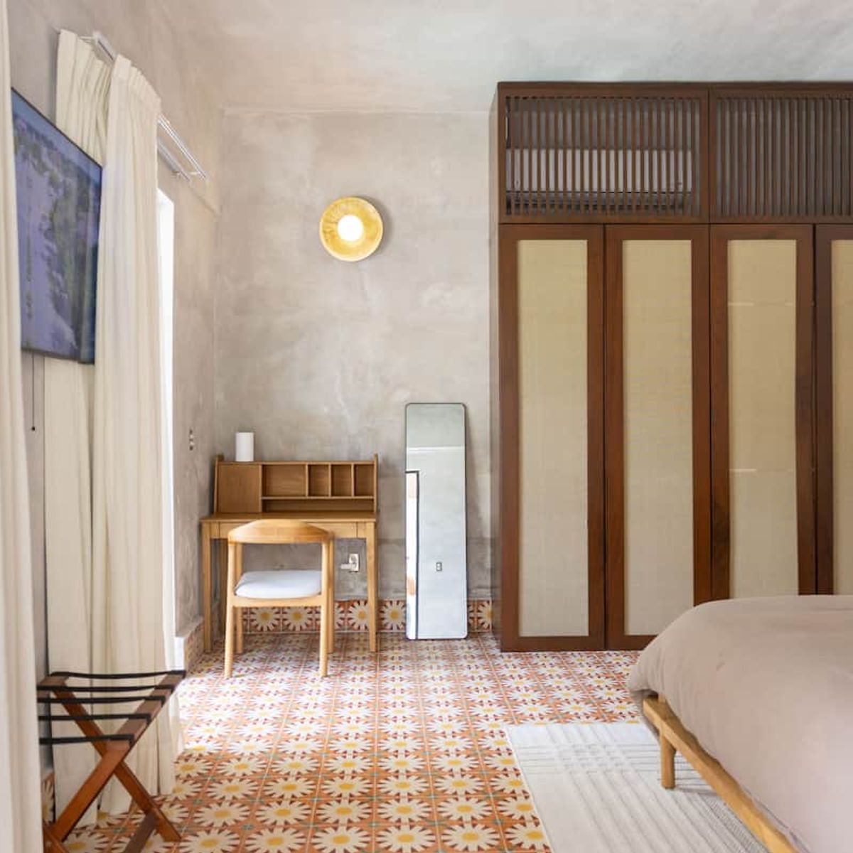 - Next to it, a TV room with a desk.