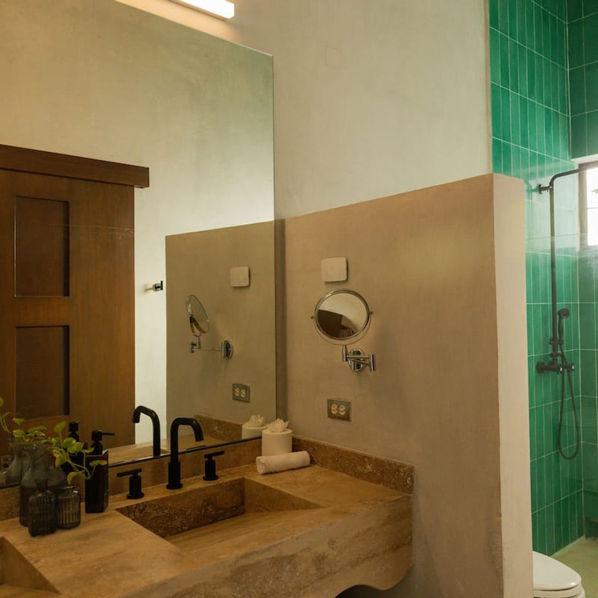 A historic 1920 mansion divided into two buildings and two floors. Throughout the house, you'll find a Bluetooth speaker in each area and Wi-Fi repeaters throughout. Each bedroom has a private bathroom, as well as two half-bathrooms (one next to the dining room and one next to the pool).