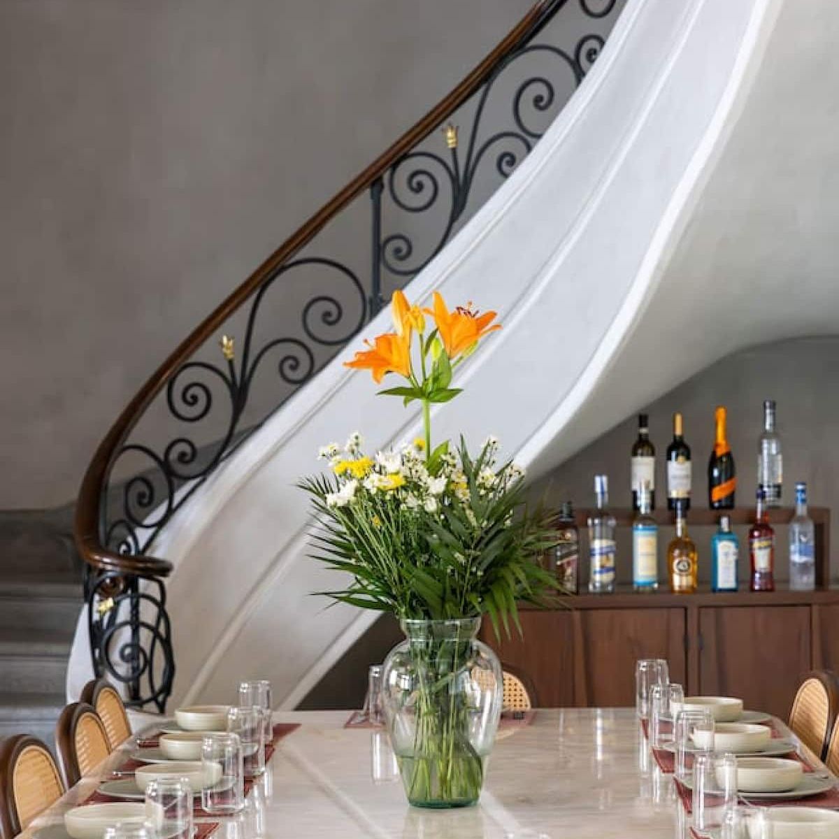 - A dining room for 14 people with a minibar stocked with a variety of wines and drinks that you can purchase during your stay.