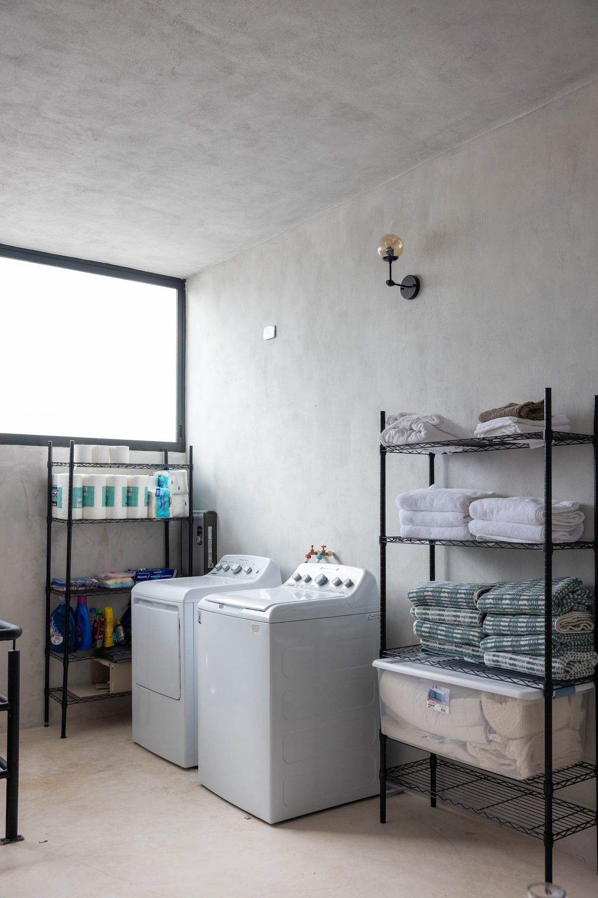 All interior areas of the house have mini-split air conditioners - except the laundry room- and in the common areas these are automatically programmed to cool and dehumidify.