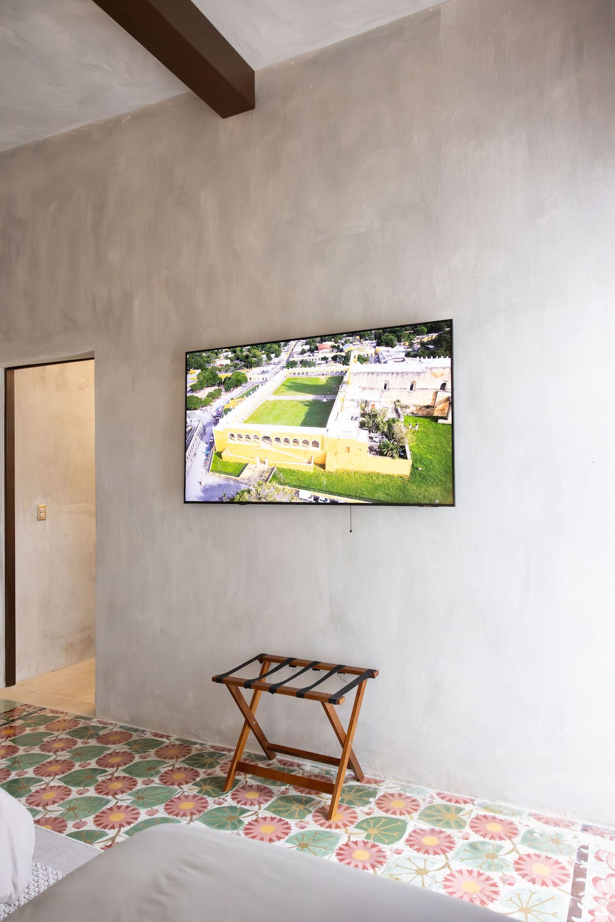 - Next to it, a TV room with a desk.