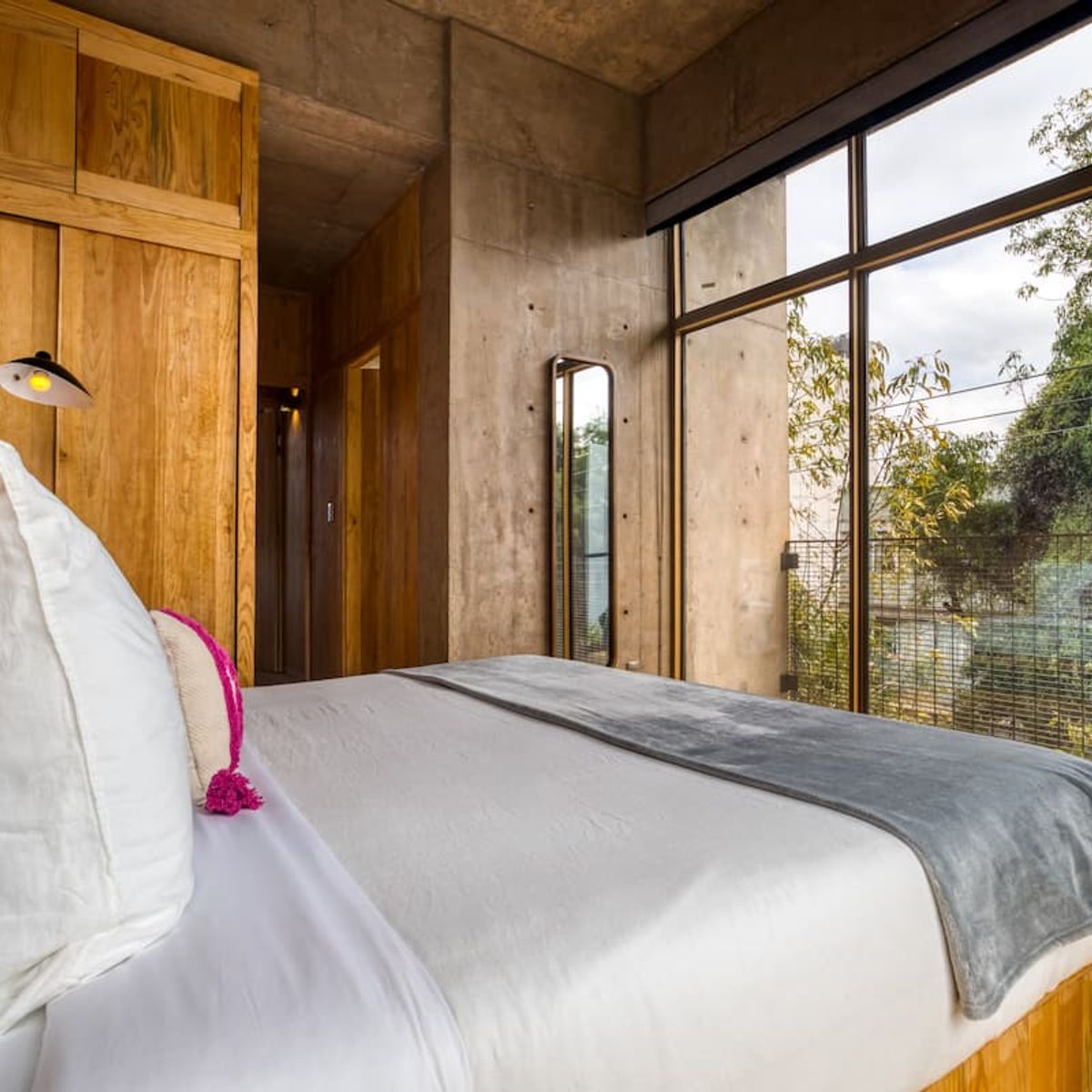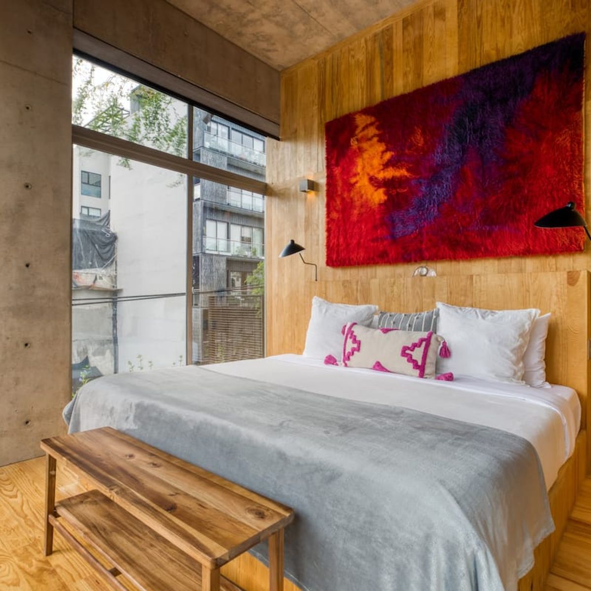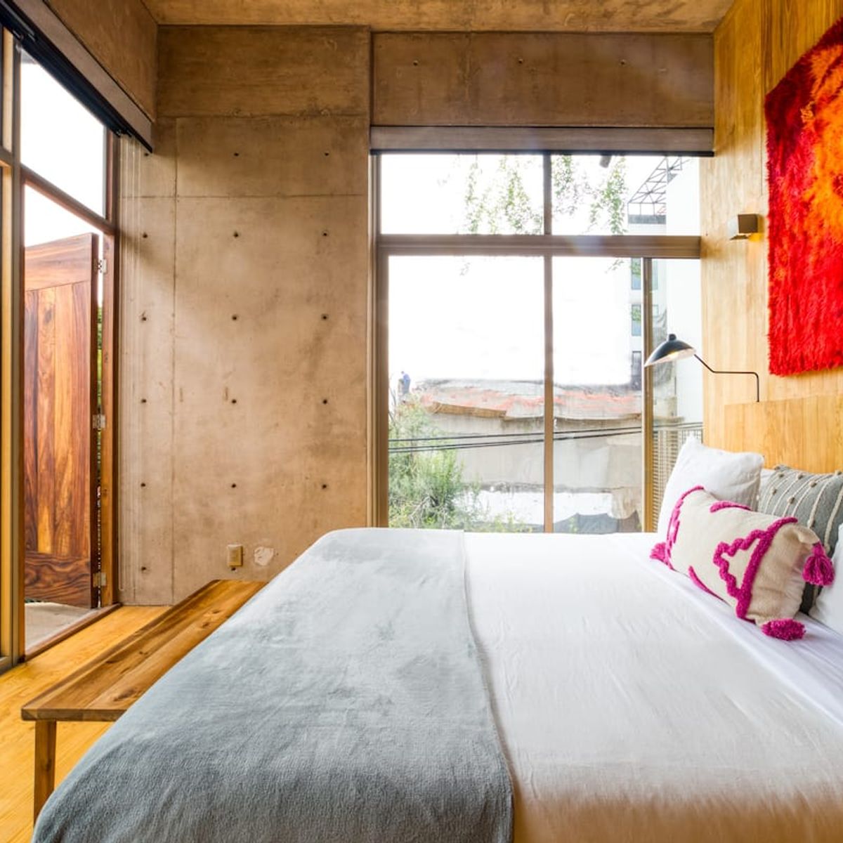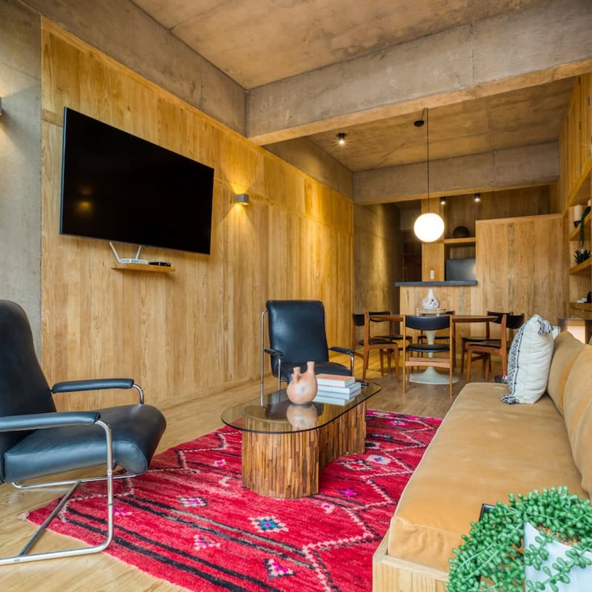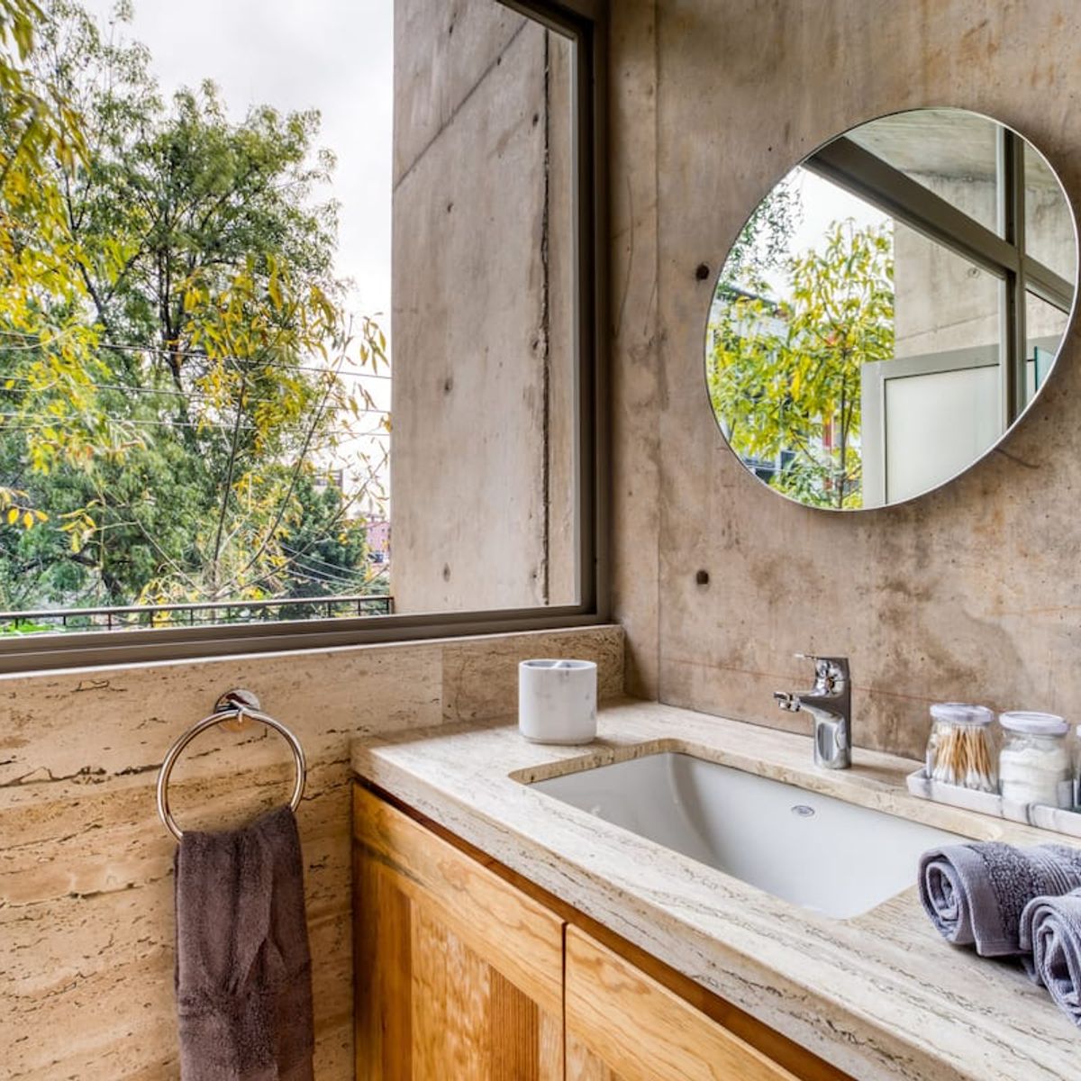 Unbelievable 2BR apartment in a unique building designed by famed Mexican architect Alberto Kalach. Located in Roma Norte, this beautiful apartment has the perfect location to enjoy an incredible trip to Mexico City. You can walk to the best food, shopping and going out spots while enjoying and amazing apartment where you can rest.