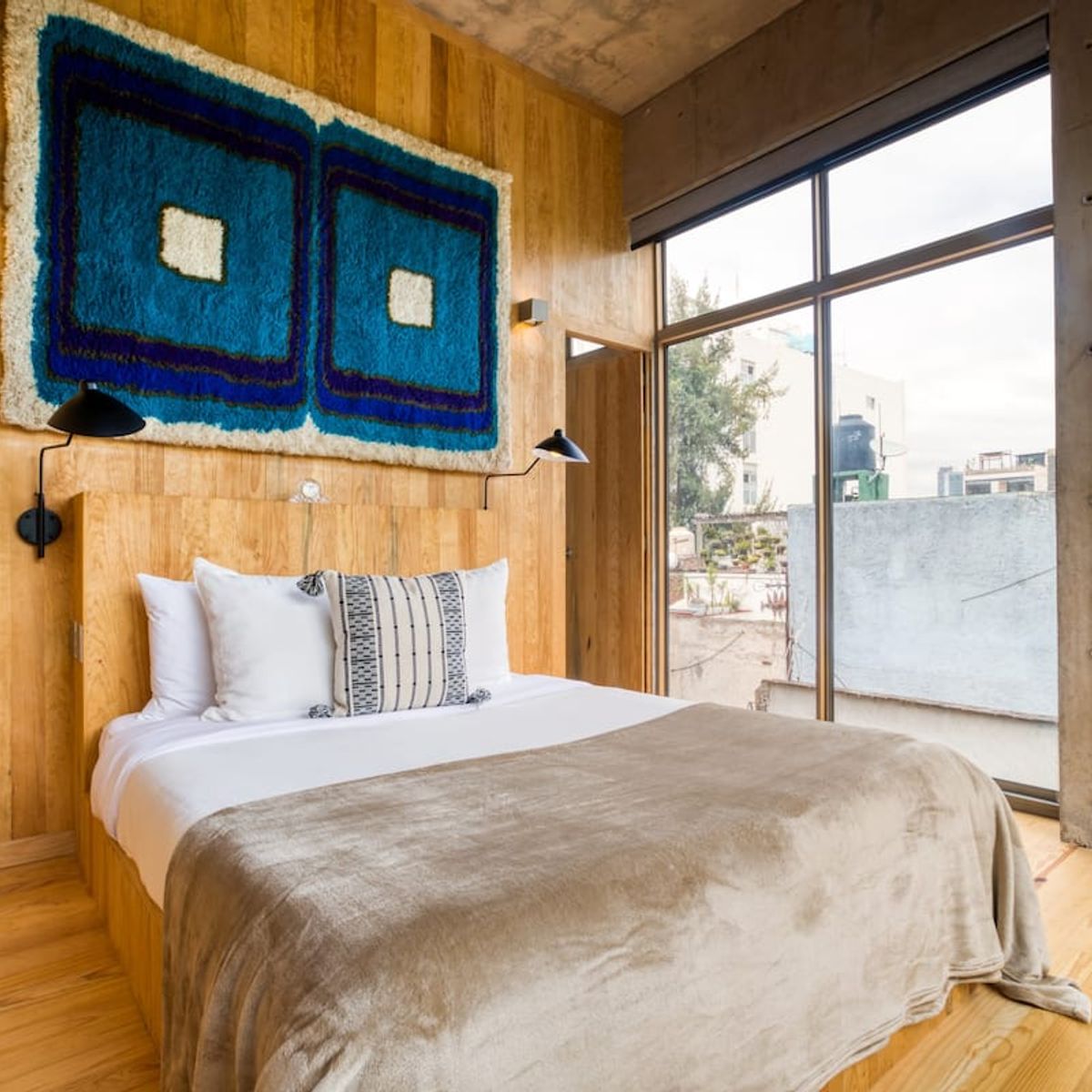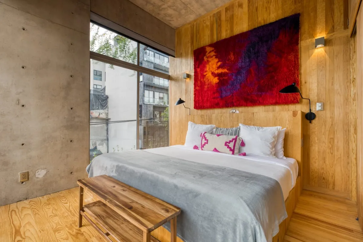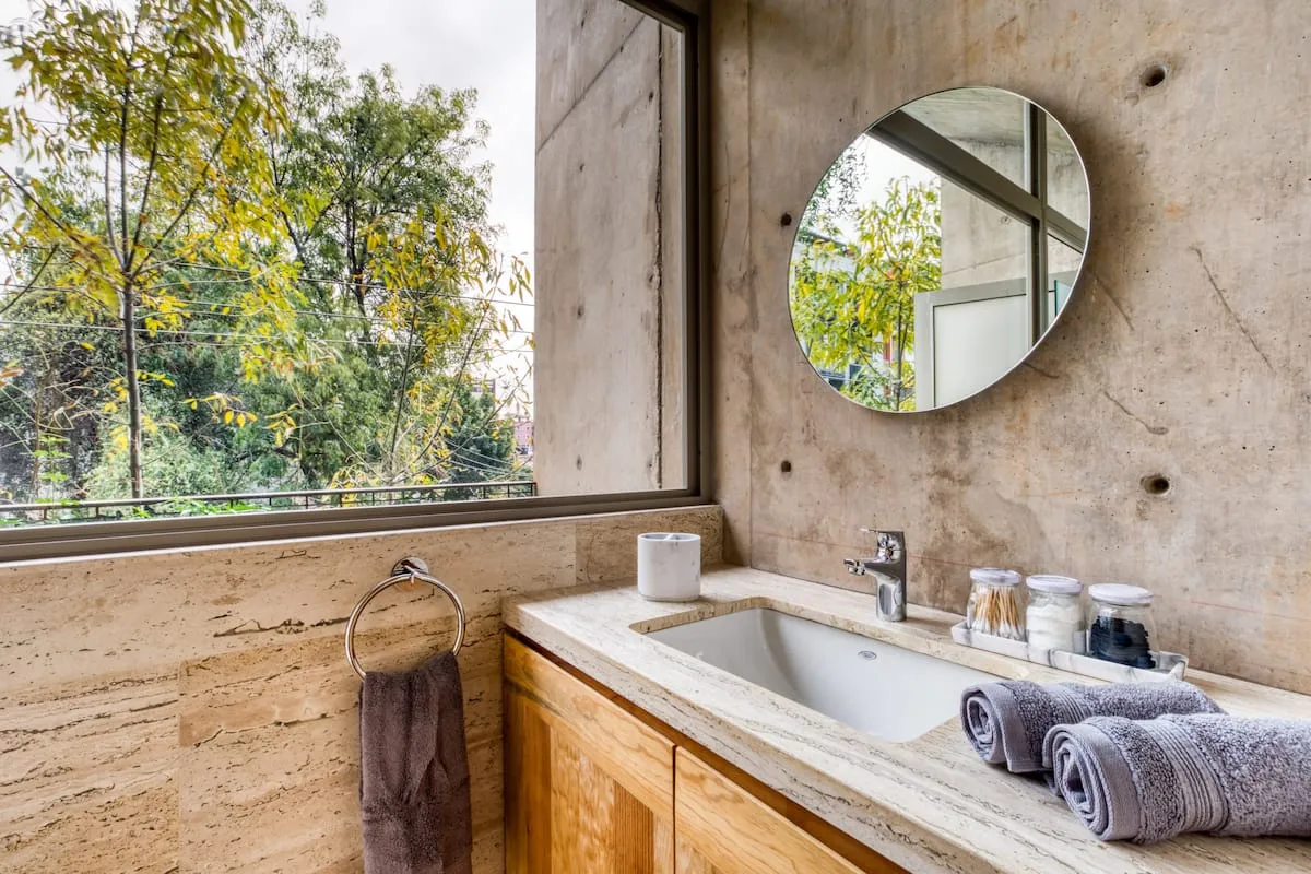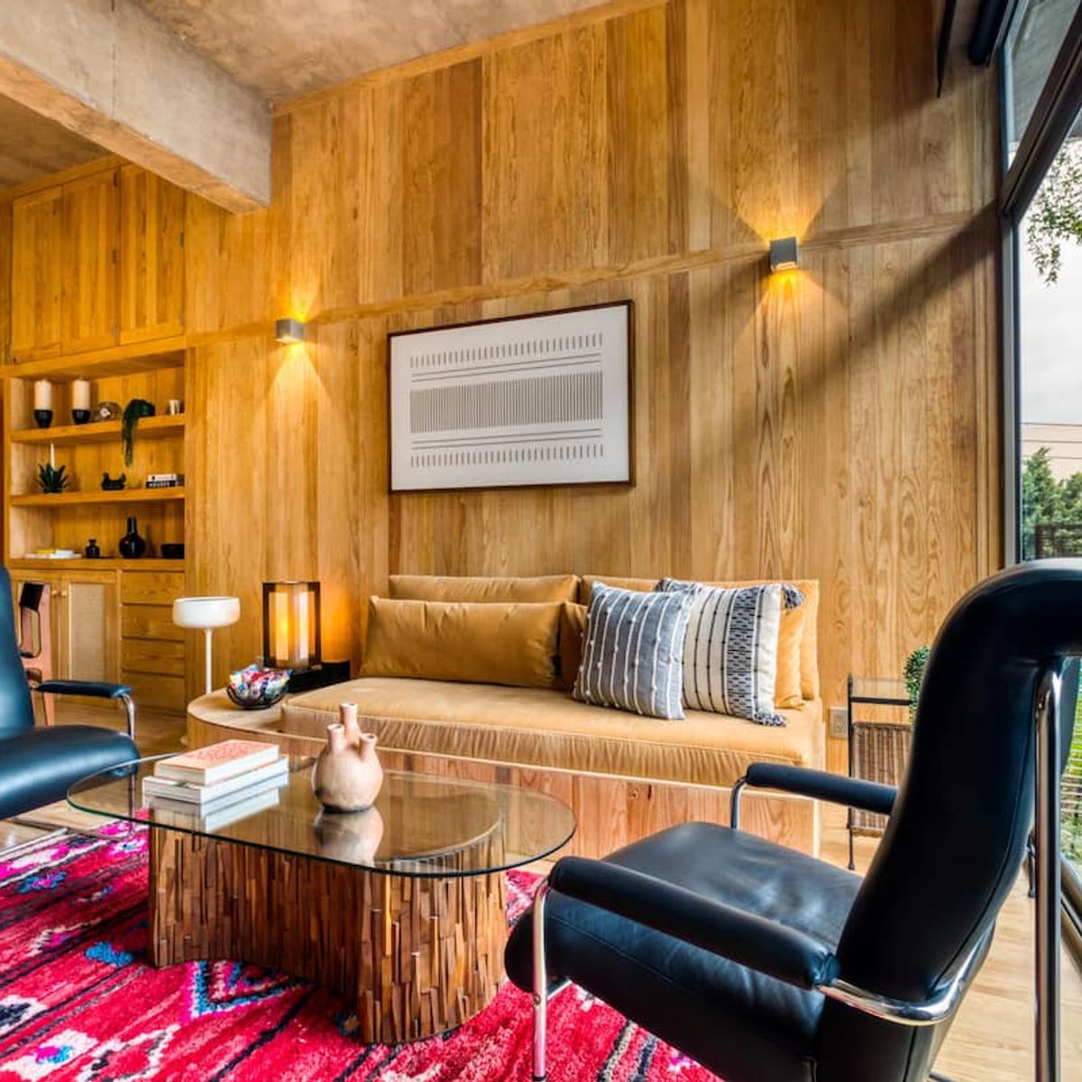 Unbelievable 2BR apartment in a unique building designed by famed Mexican architect Alberto Kalach. Located in Roma Norte, this beautiful apartment has the perfect location to enjoy an incredible trip to Mexico City. You can walk to the best food, shopping and going out spots while enjoying and amazing apartment where you can rest.