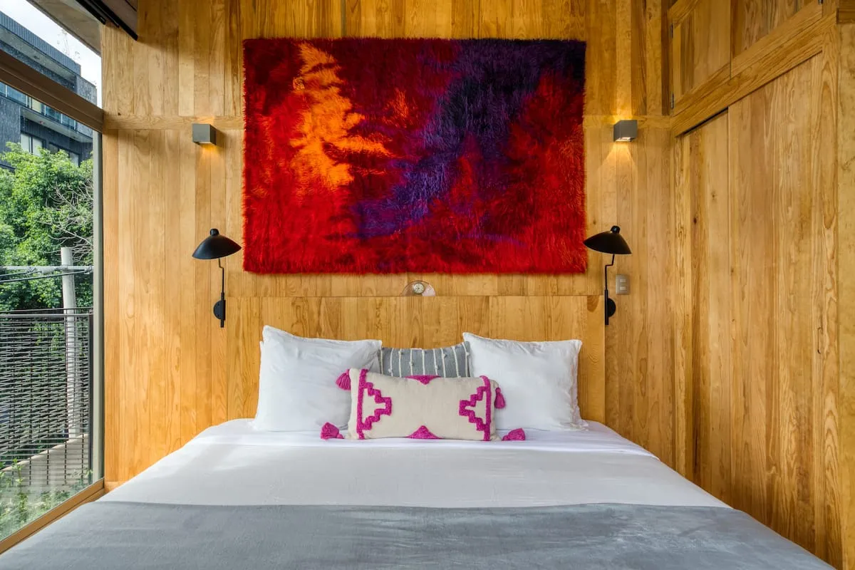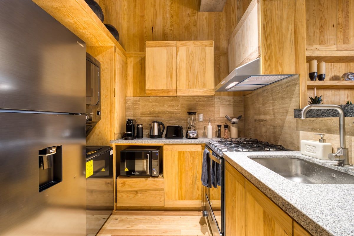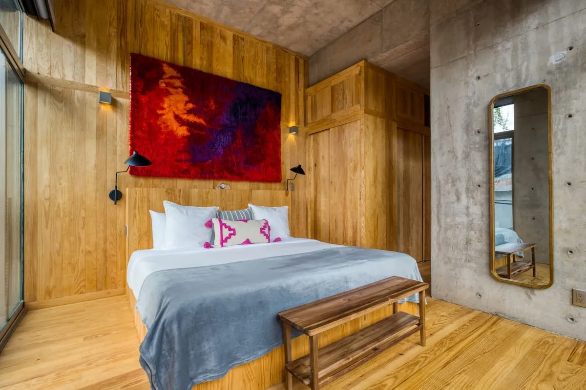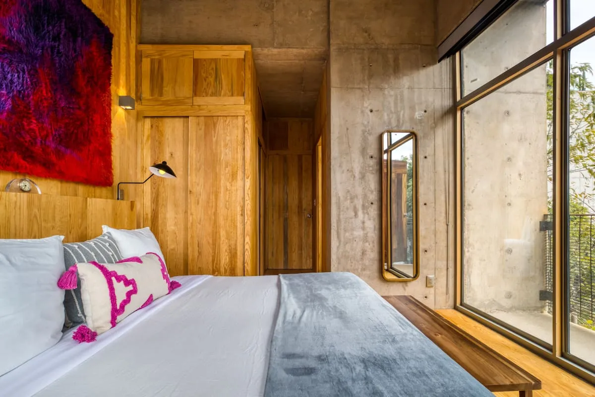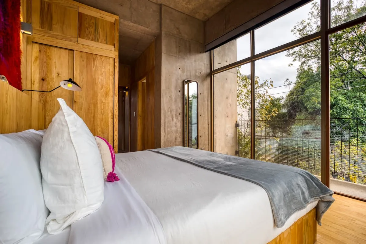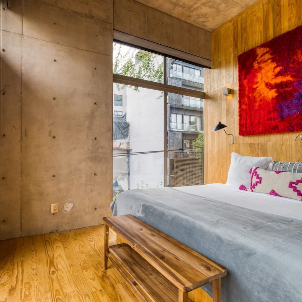 Unbelievable 2BR apartment in a unique building designed by famed Mexican architect Alberto Kalach. Located in Roma Norte, this beautiful apartment has the perfect location to enjoy an incredible trip to Mexico City. You can walk to the best food, shopping and going out spots while enjoying and amazing apartment where you can rest.