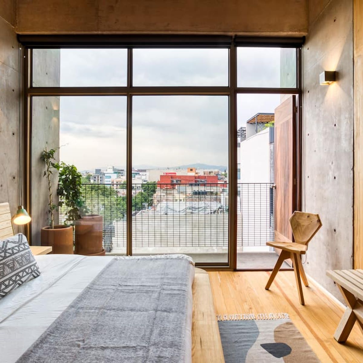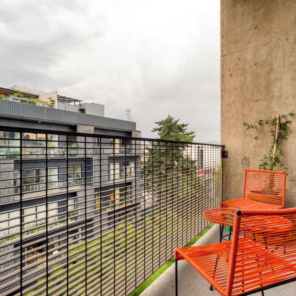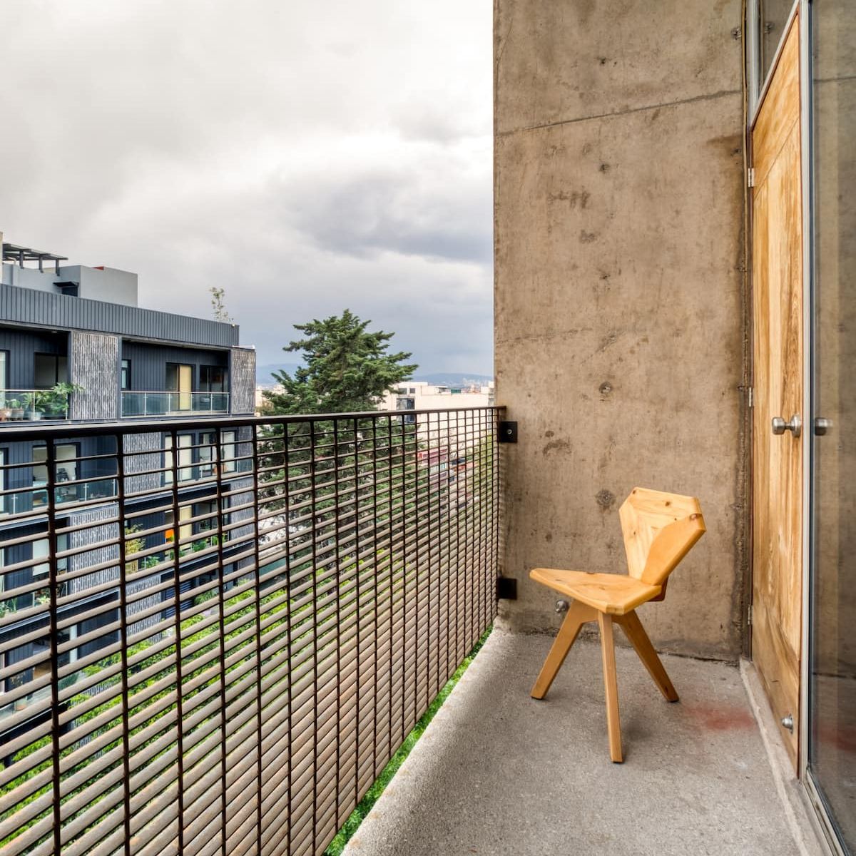 This stunning building designed by Alberto Kalach is located in Colonia Roma and crowned by this beautiful Penthouse. The view from the main bedroom points towards the stunning Mexico City skyline, allowing residents to admire some of the most beautiful areas of the city. Visitors of this Penthouse can enjoy the hustle and bustle of the vibrant city while relaxing in the tranquility of its luxurious living space.
