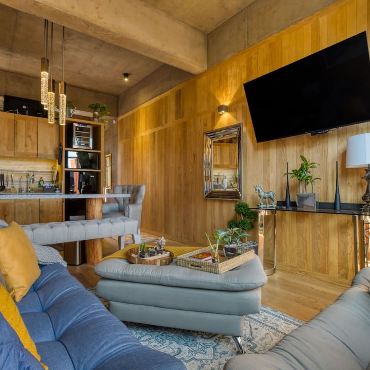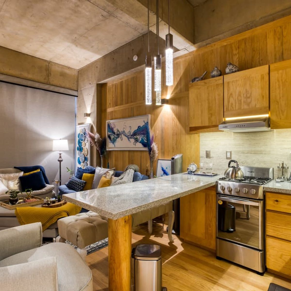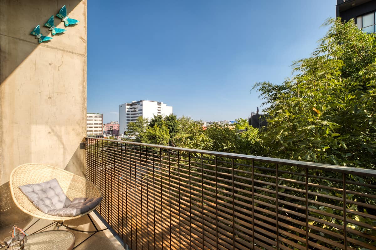 Comfortable loft apartment by award-winning Mexican architect Alberto Kalach, located in Colonia Roma. The apartment features exposed concrete and beautiful pinewood finishes along with a private balcony.