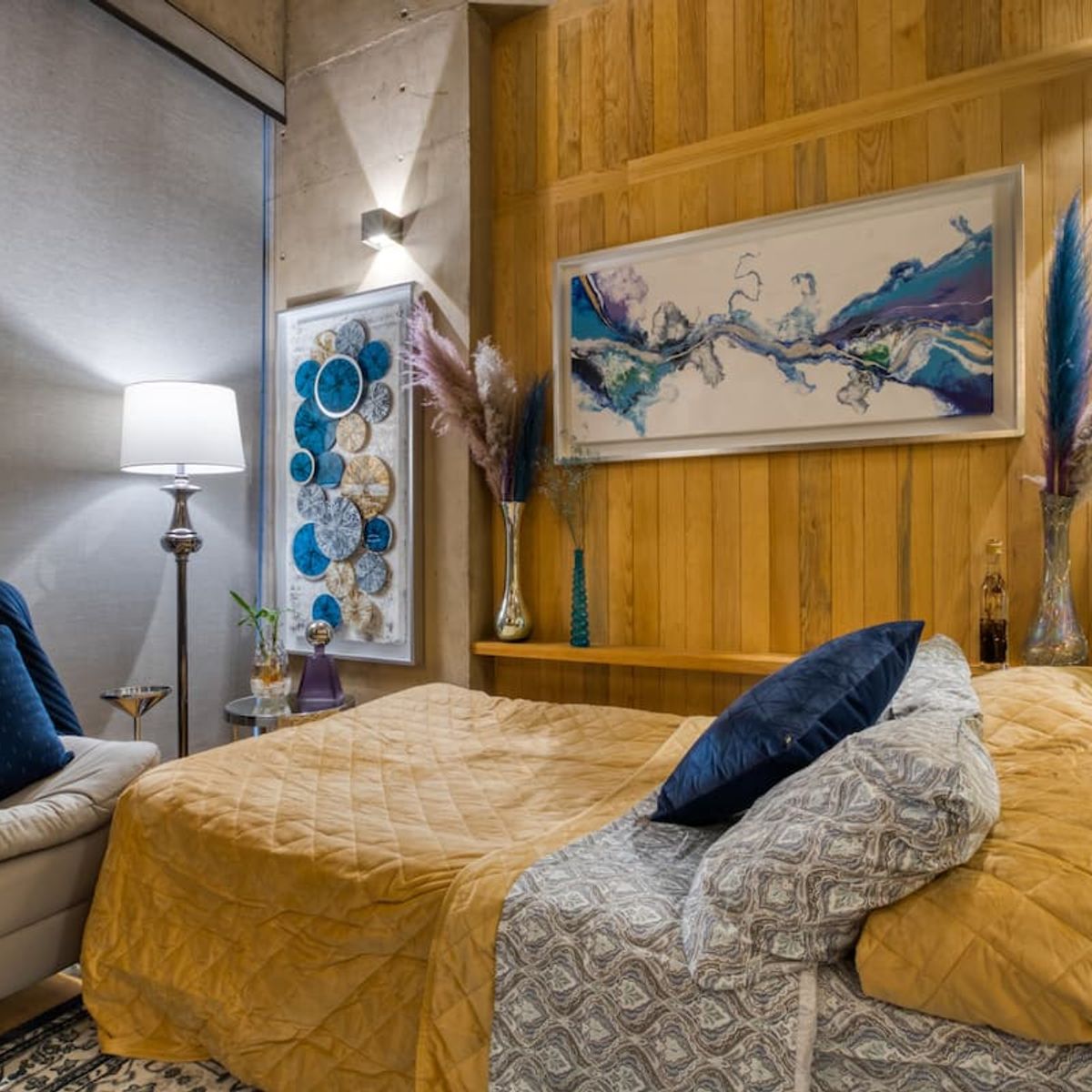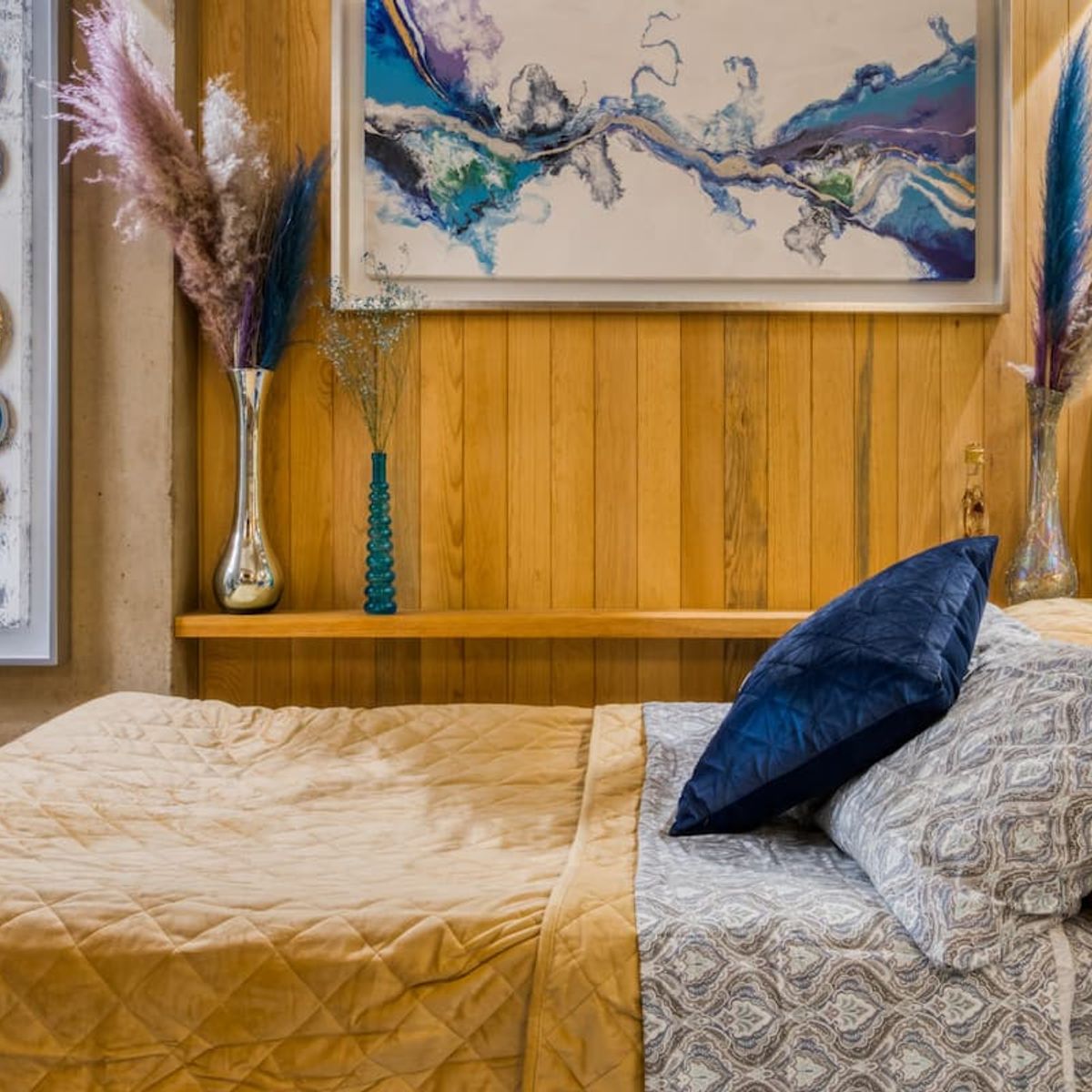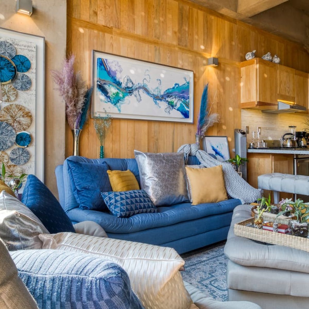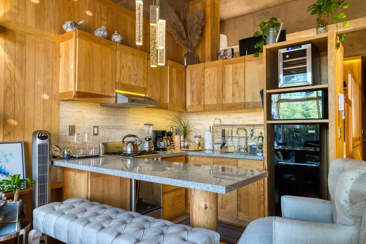 This apartment is a loft featuring a queen bed. The sofa in the living room can also be used as a sleeper sofa.
