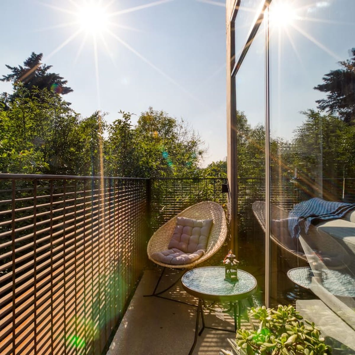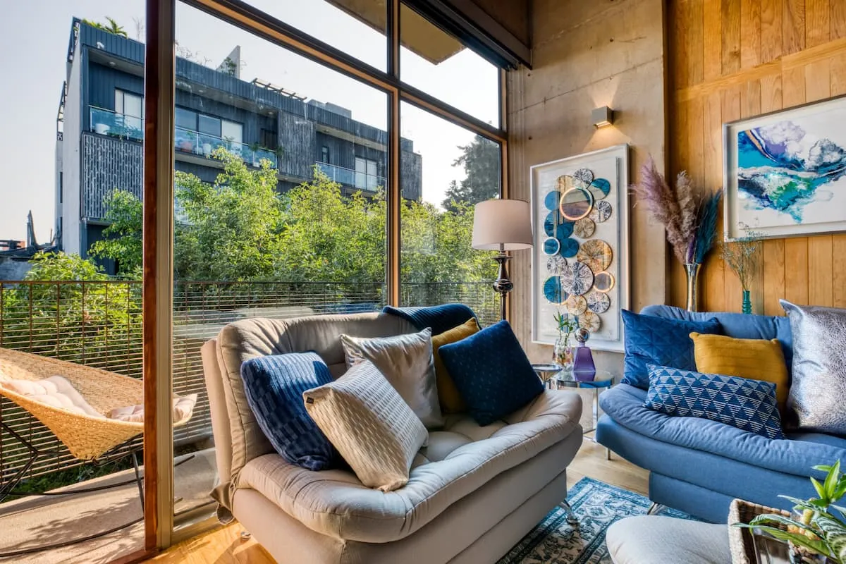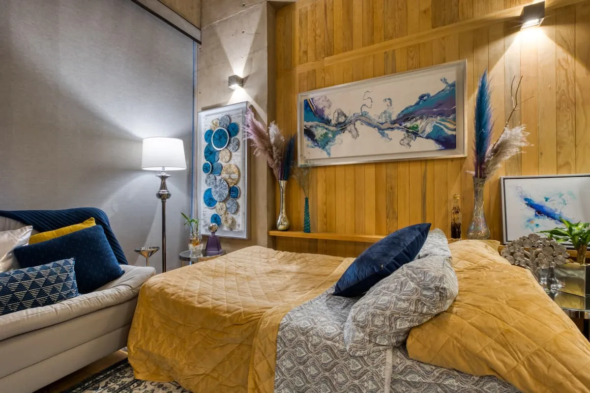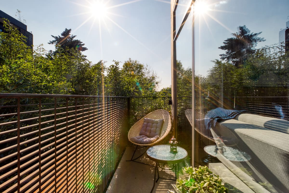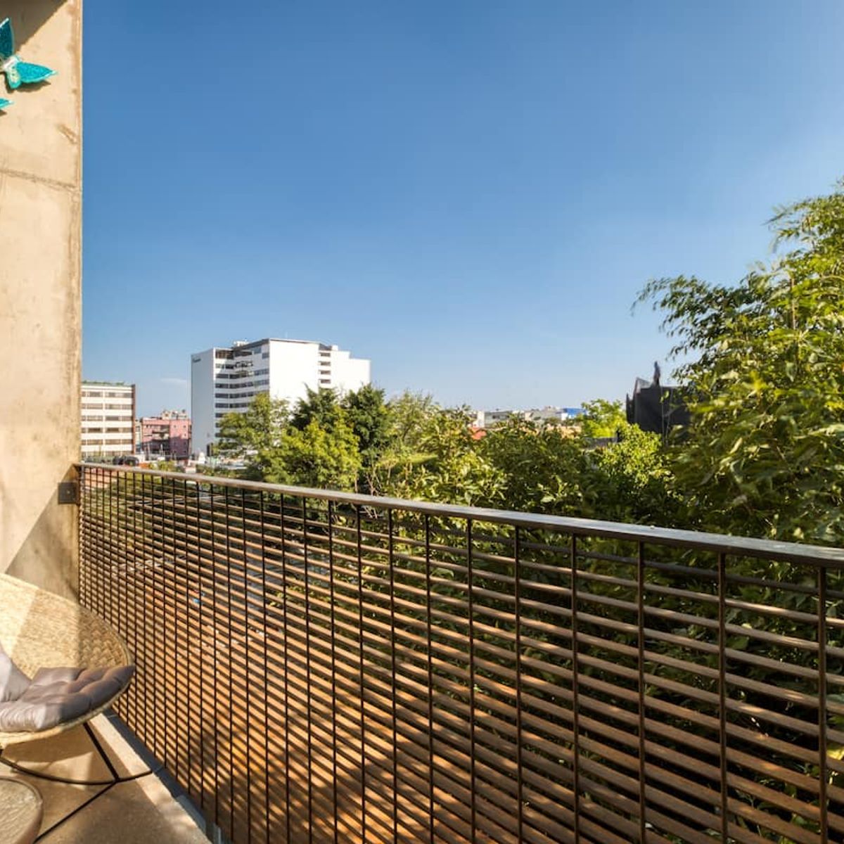 The apartment building has 24/7 security and is located just blocks from a large park. There is a communal rooftop boasting gorgeous views of the Mexico City skyline.