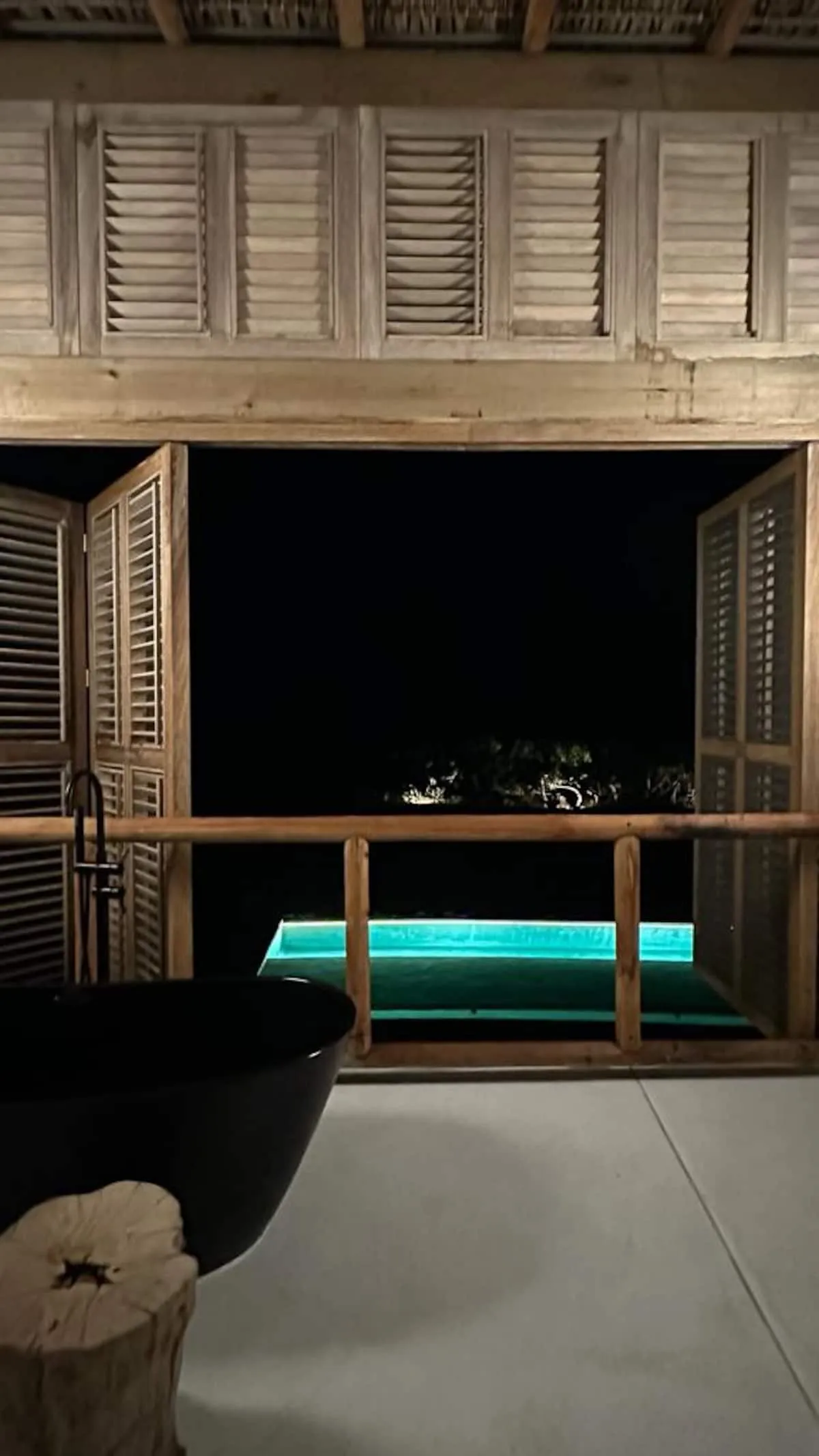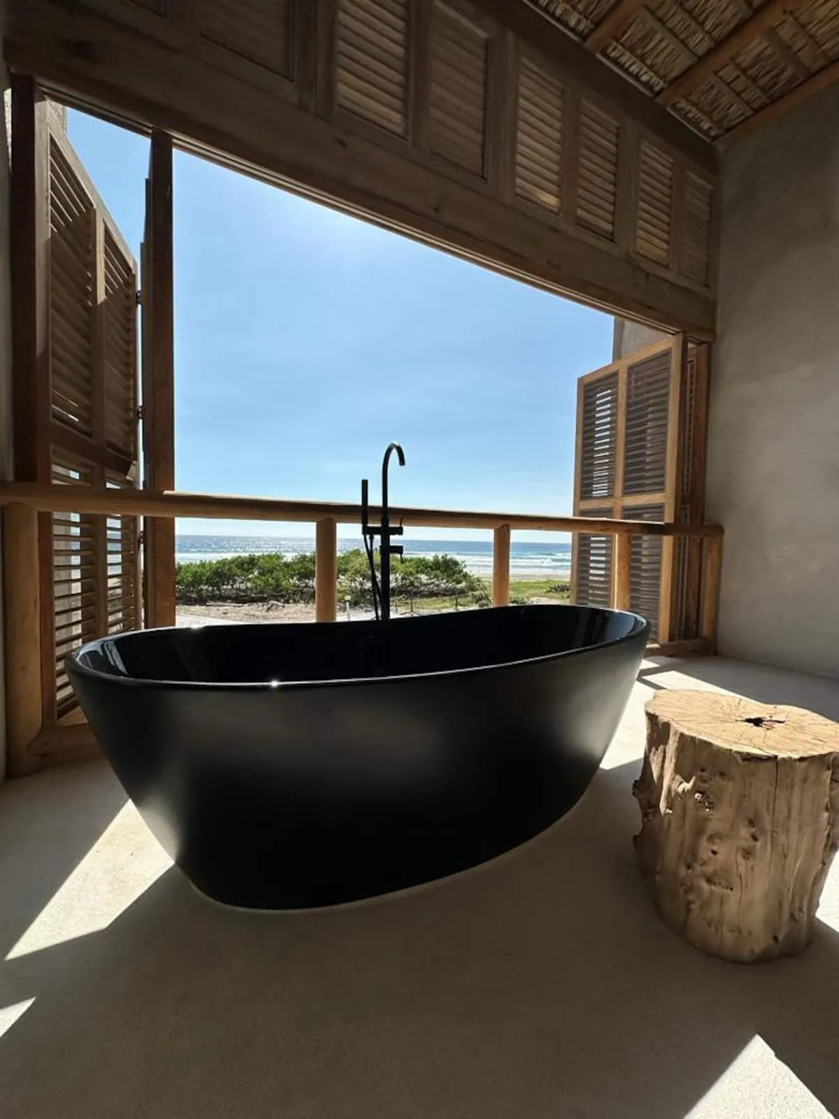 Set on a 1,200-square-meter plot with 20 meters of beachfront, the villa features an 18-meter infinity pool, sunken terrace, and sculptural fire pit for unforgettable evenings by the sea. Inside, carefully curated design elements, including freestanding black bathtubs with panoramic views, add to its refined aesthetic.