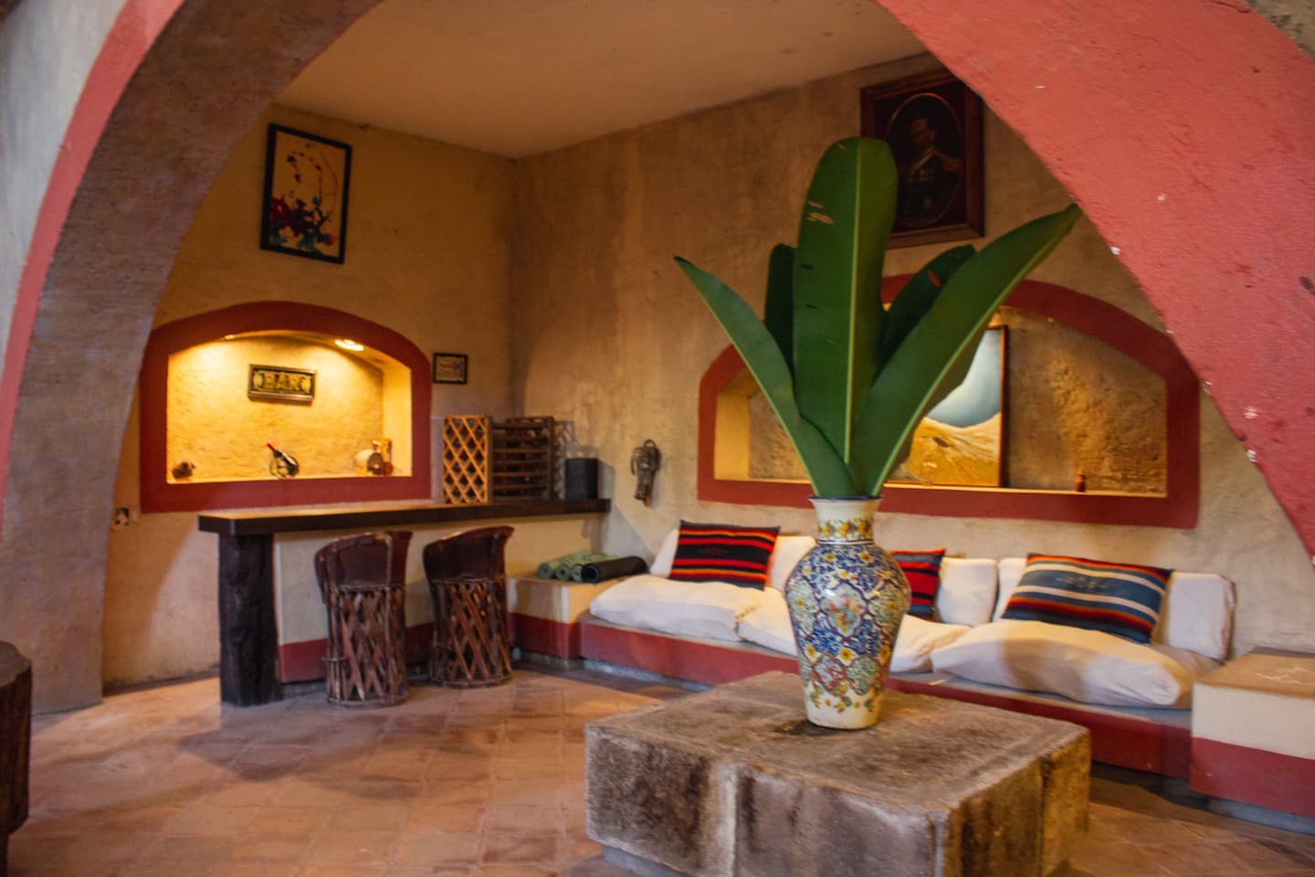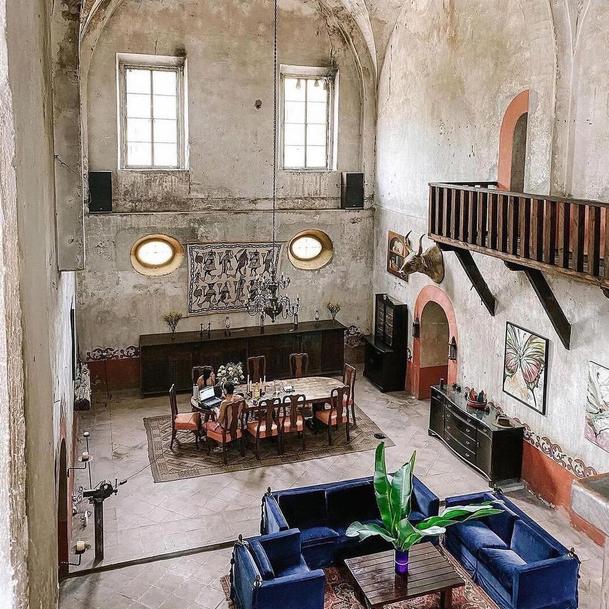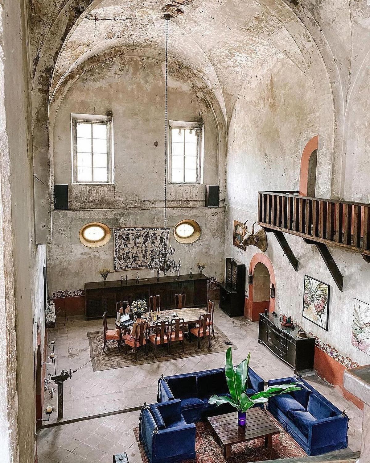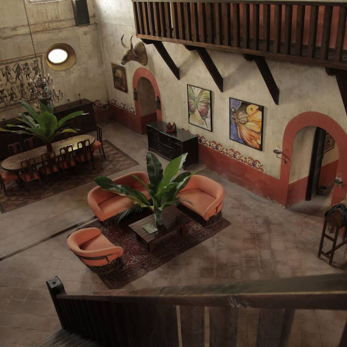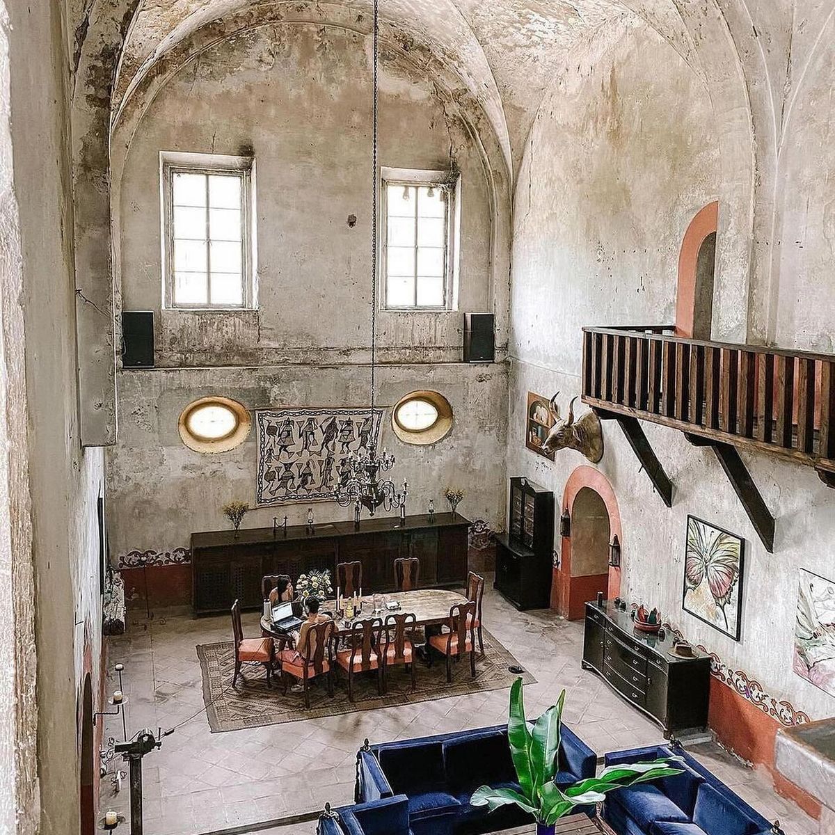The residence, wonderfully converted from an antique cathedral, boasts three generous common areas, replete with cozy rooms and armchairs. Begin your day on the portico terrace, savoring breakfast as you drink in the view of the hacienda's striking helmet. The house features an event bar, a dining space accommodating 12 guests, a game room equipped with a carambola and pool table, and a TV room—your personal theatre for binge-watching favorite series.