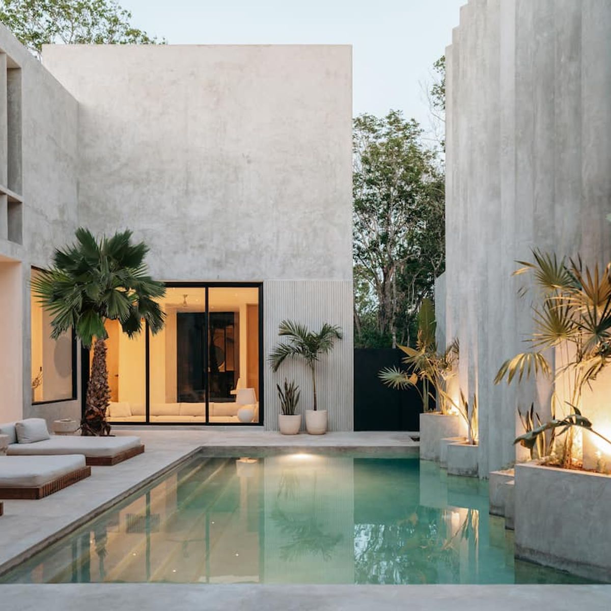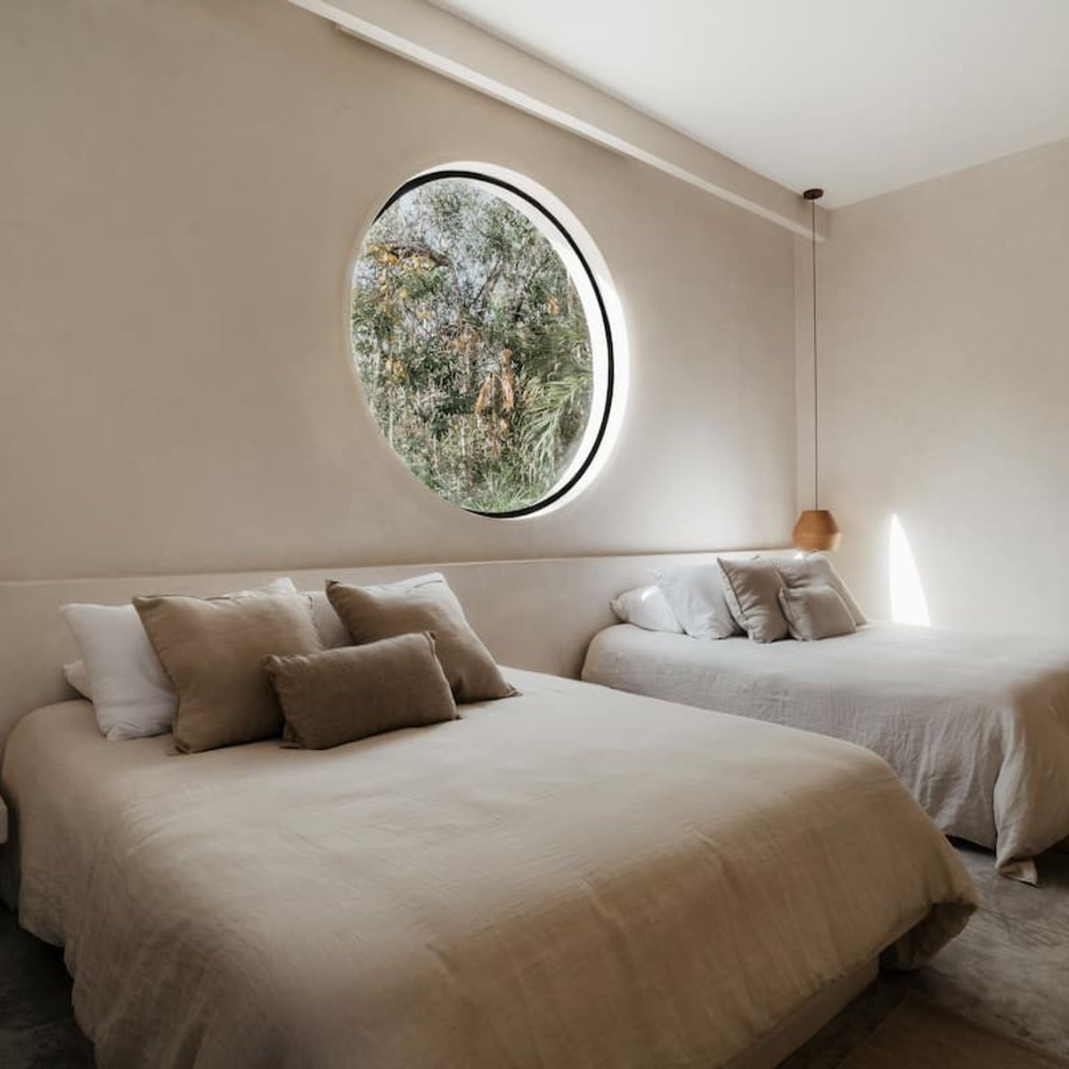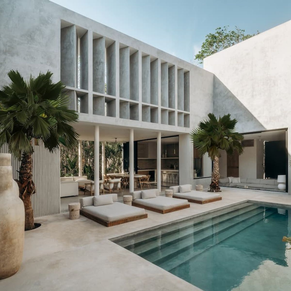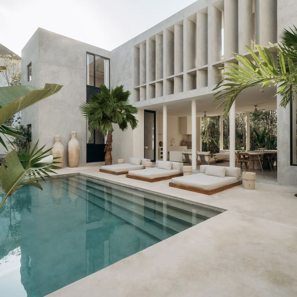 Tucked away just four minutes from Tulum’s beaches, this stunning villa is a five-bedroom, six-bathroom home built for travelers seeking privacy, space, and modern design. With two private pools and accommodations for up to 14 guests, it’s one of the area’s standout properties—known for its architecture and seclusion.