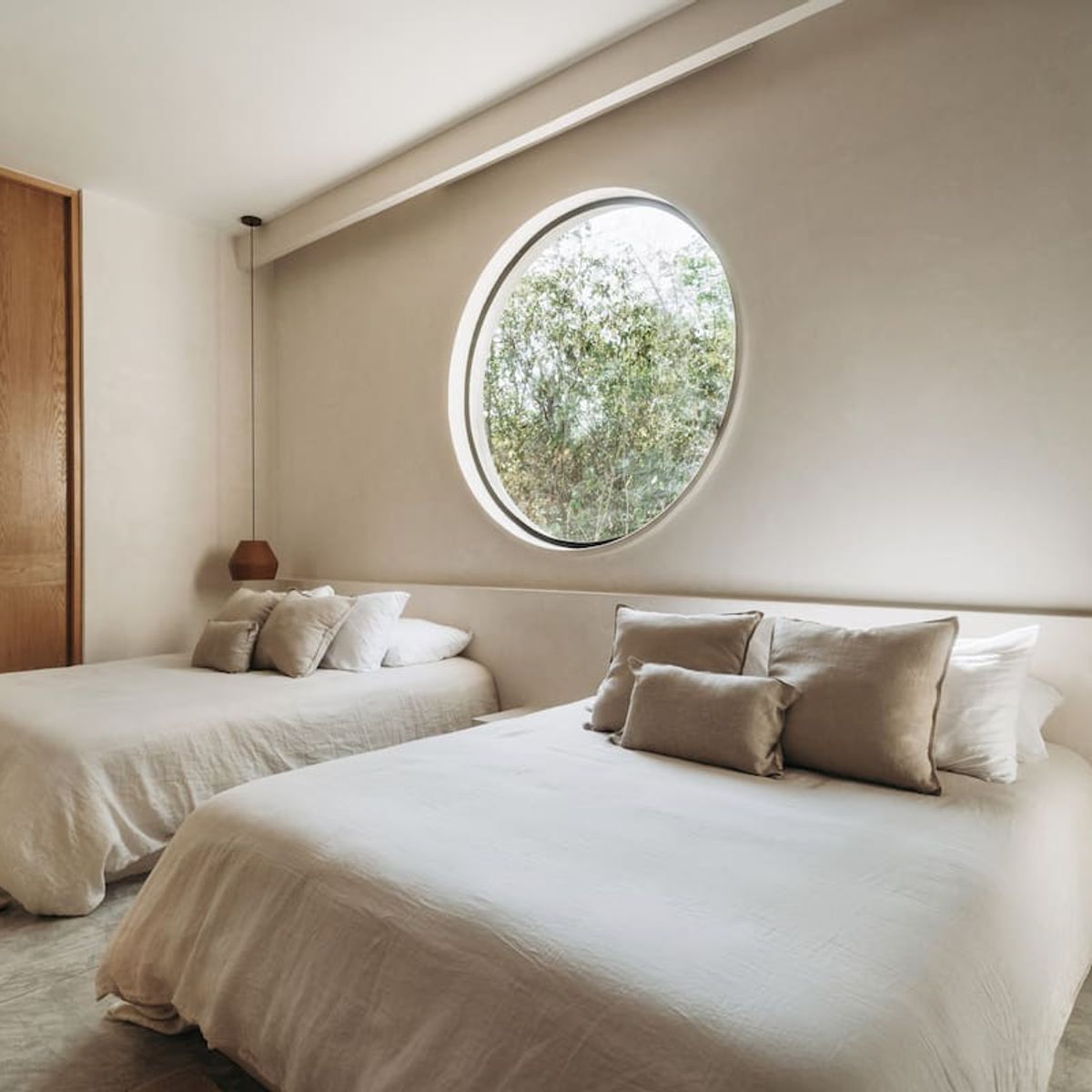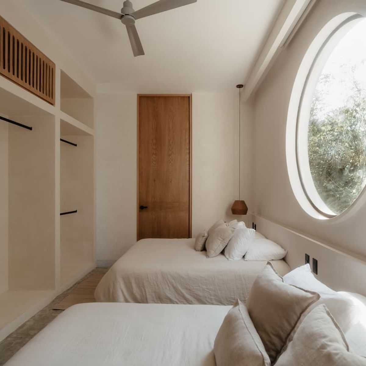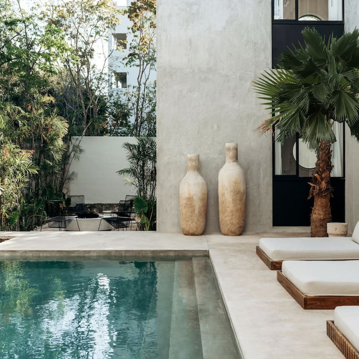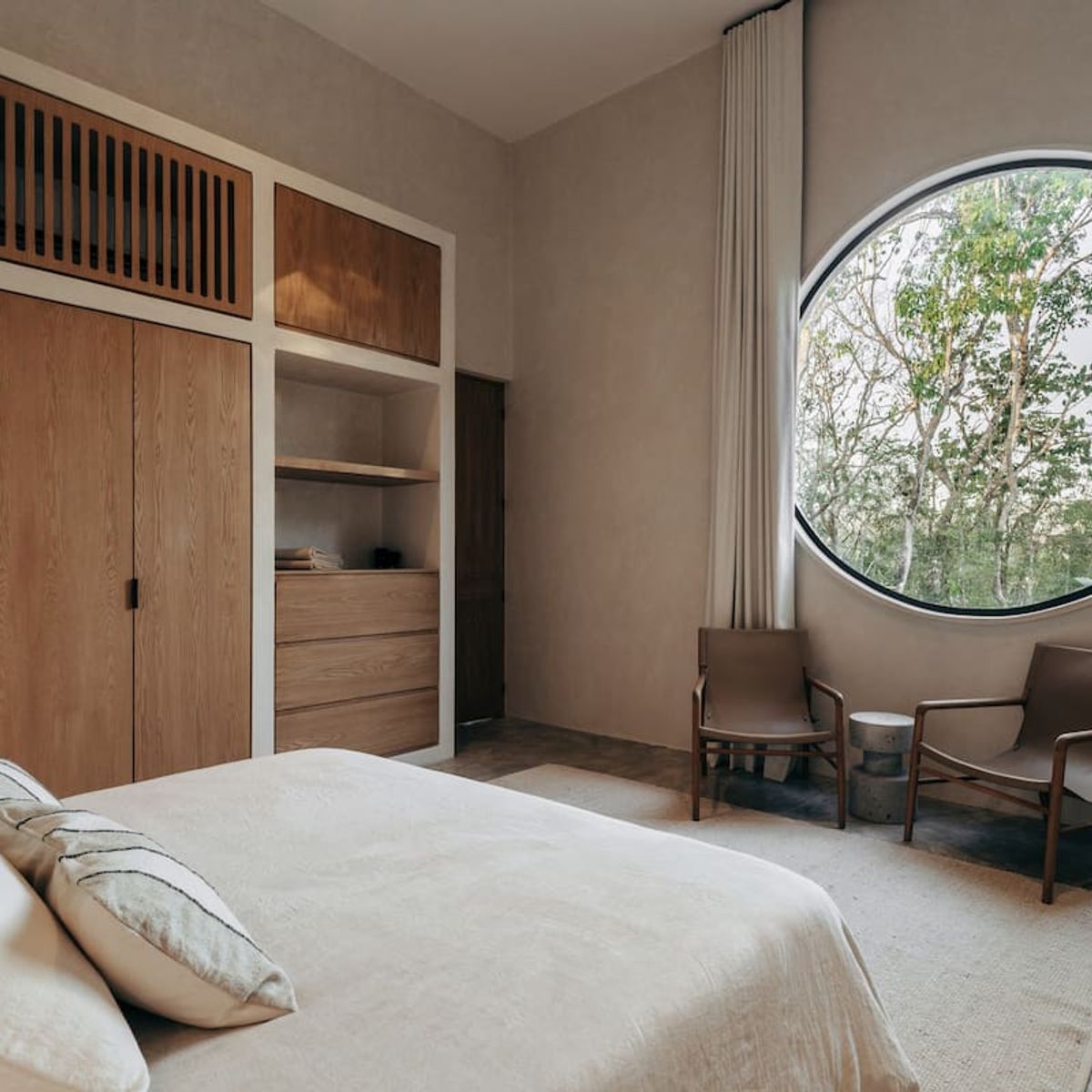 Tucked away just four minutes from Tulum’s beaches, this stunning villa is a five-bedroom, six-bathroom home built for travelers seeking privacy, space, and modern design. With two private pools and accommodations for up to 14 guests, it’s one of the area’s standout properties—known for its architecture and seclusion.