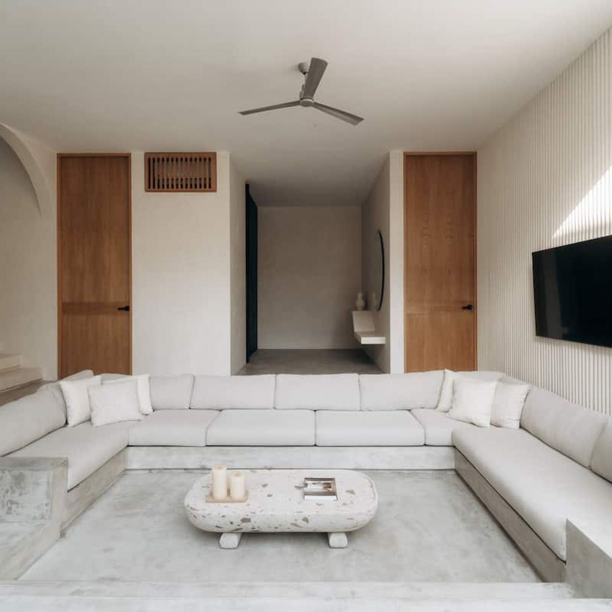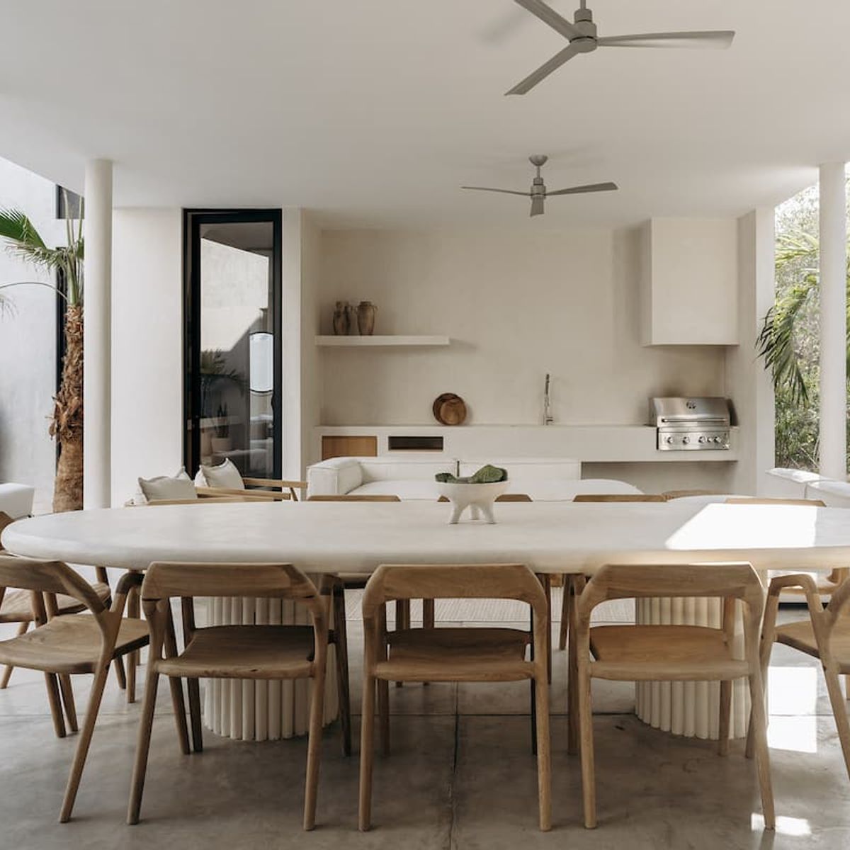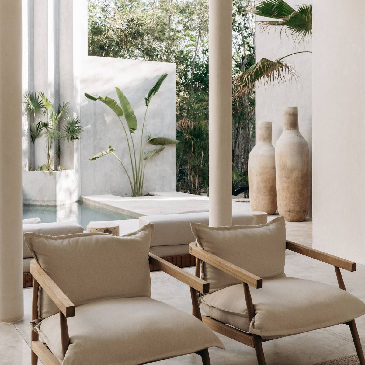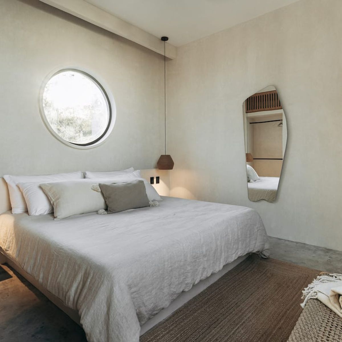 Tucked away just four minutes from Tulum’s beaches, this stunning villa is a five-bedroom, six-bathroom home built for travelers seeking privacy, space, and modern design. With two private pools and accommodations for up to 14 guests, it’s one of the area’s standout properties—known for its architecture and seclusion.