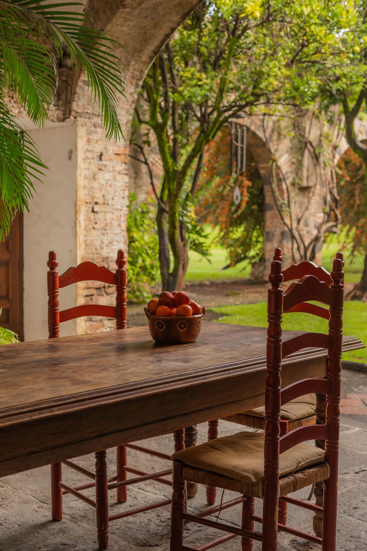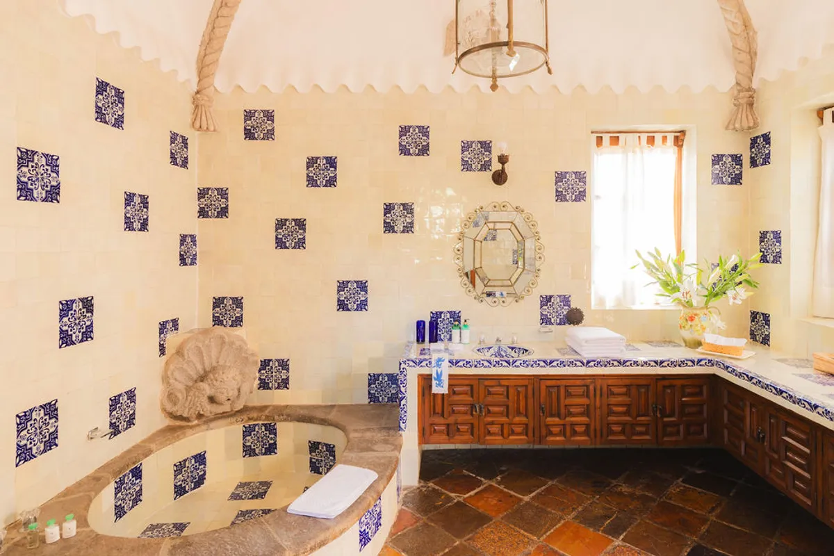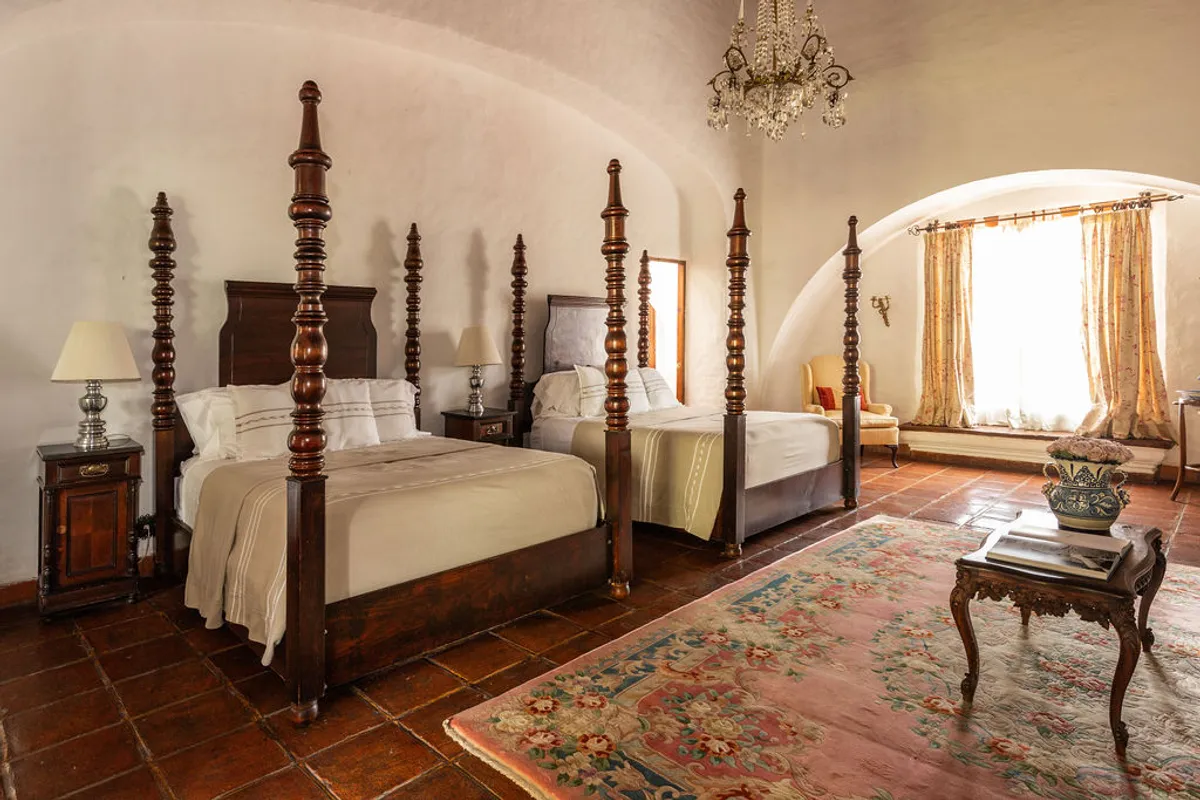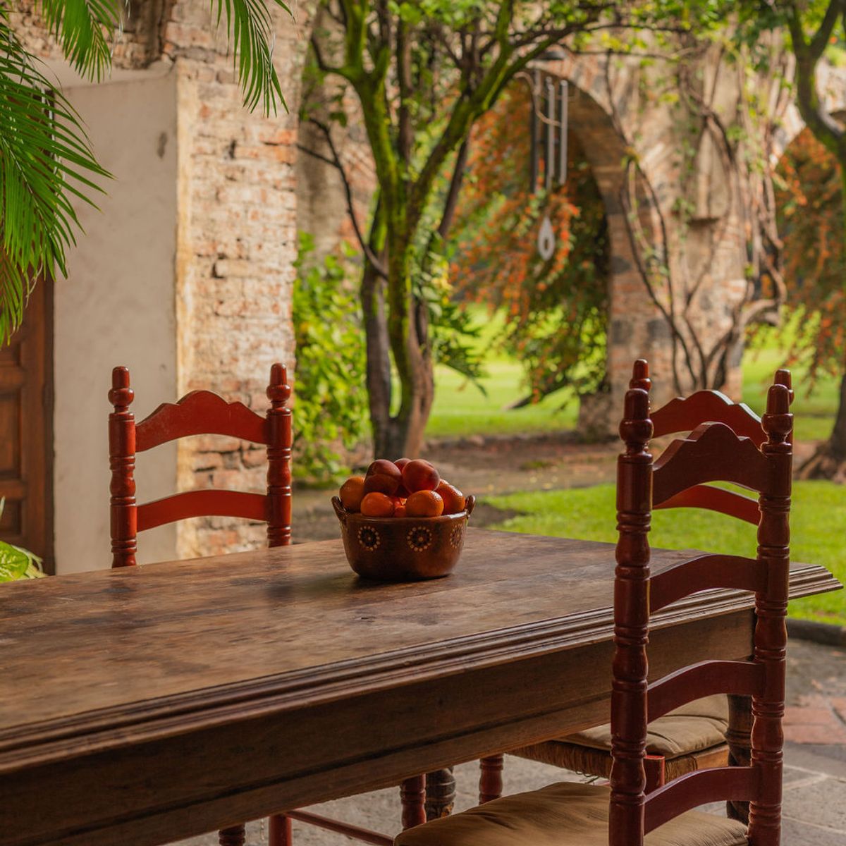 Today, this hacienda is a private paradise hidden among lush gardens and fruit trees. Spanning over 6 hectares, the property features 10 beautifully appointed rooms with handcrafted finishes, Talavera-tiled bathrooms, air conditioning, and premium bedding.