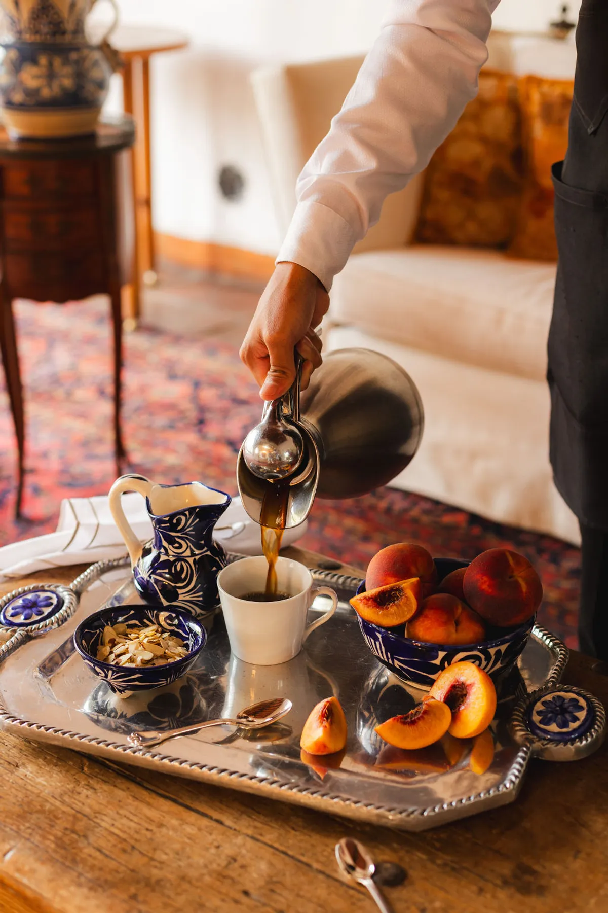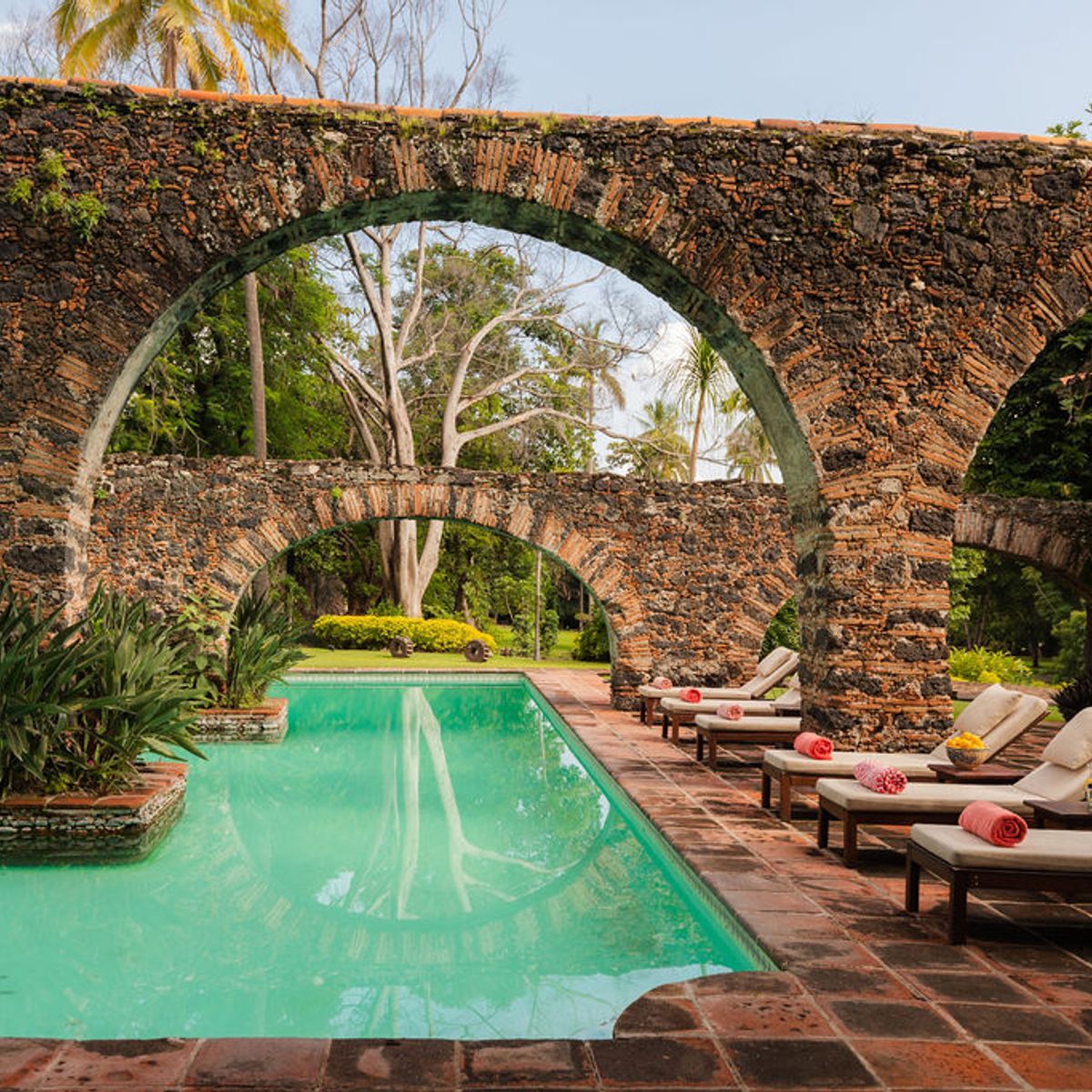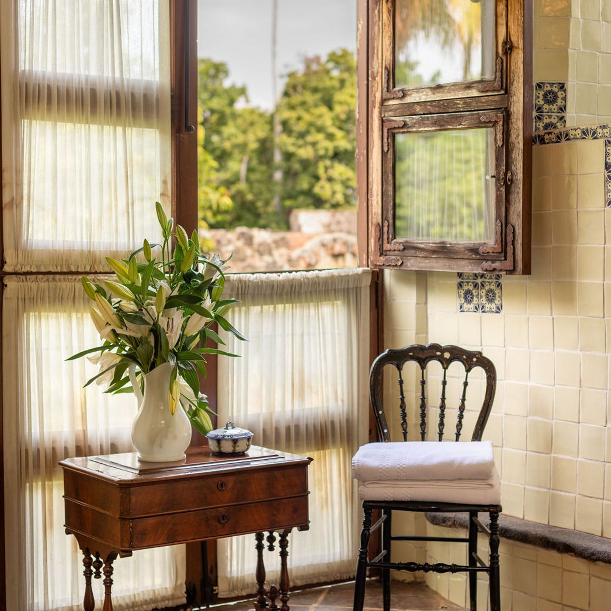 Today, this hacienda is a private paradise hidden among lush gardens and fruit trees. Spanning over 6 hectares, the property features 10 beautifully appointed rooms with handcrafted finishes, Talavera-tiled bathrooms, air conditioning, and premium bedding.