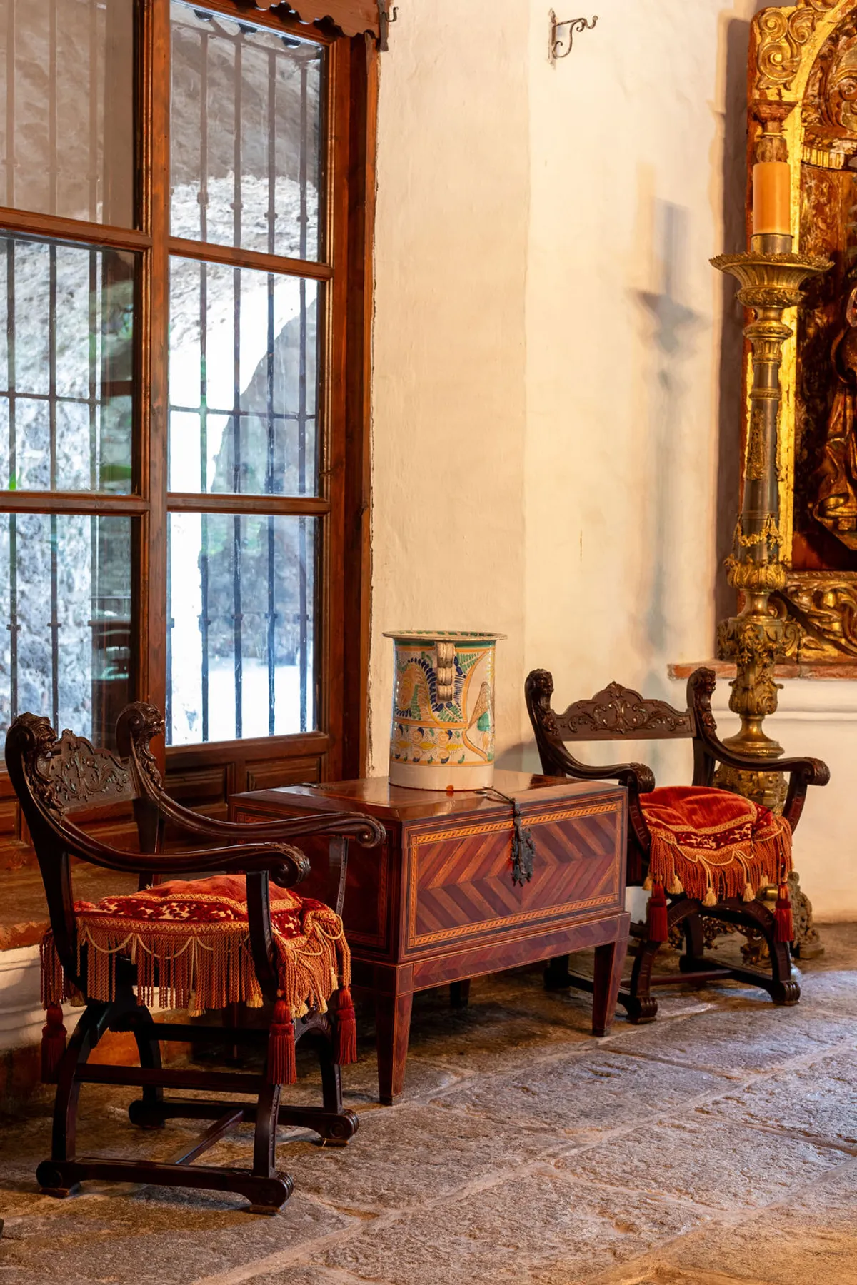 Located in Tlatizapan, the cradle of the Zapatista revolution, the hacienda was looted and destroyed during the conflict. Decades later, in the 1960s, a publishing magnate restored it as a tranquil retreat from the chaos of city life.