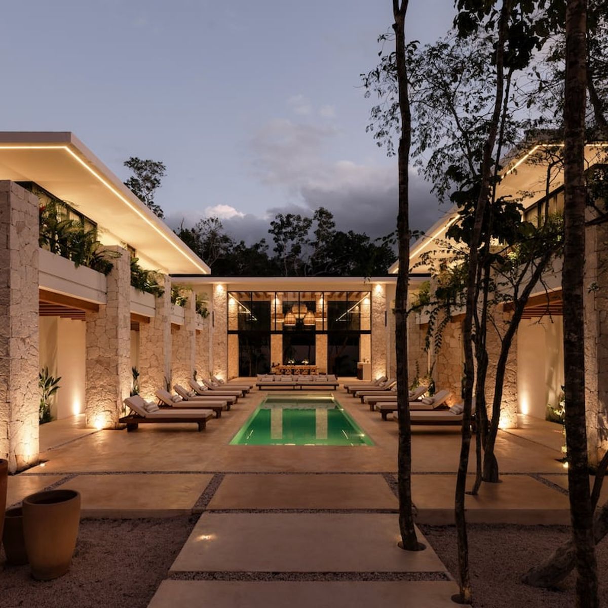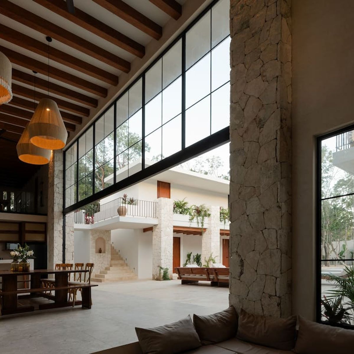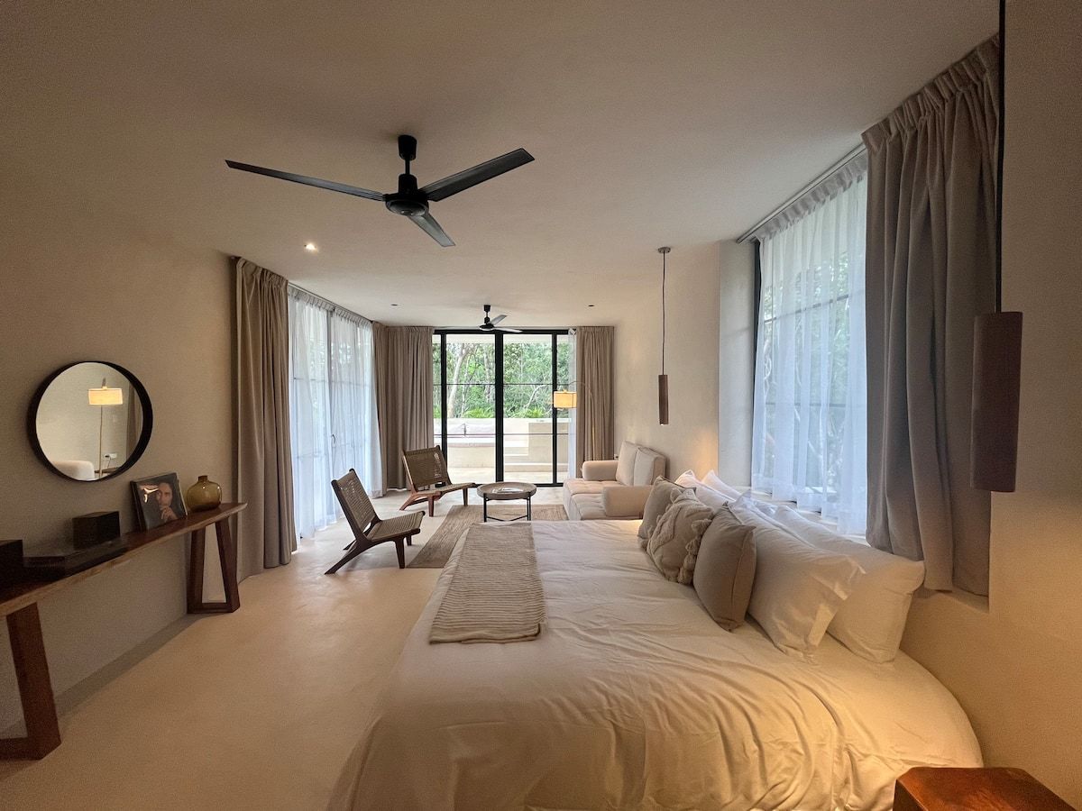 Three buildings form a U-shaped design, offering privacy, open spaces, and a natural flow that embraces the surrounding greenery. The villa embodies the spirit of Tulum—luxury through thoughtful design, organic materials, and a peaceful atmosphere.