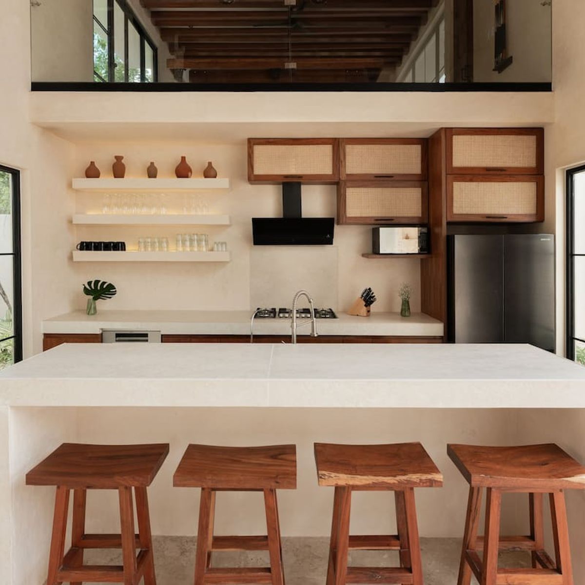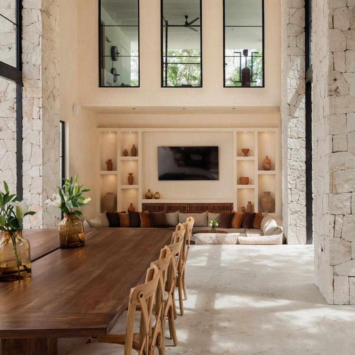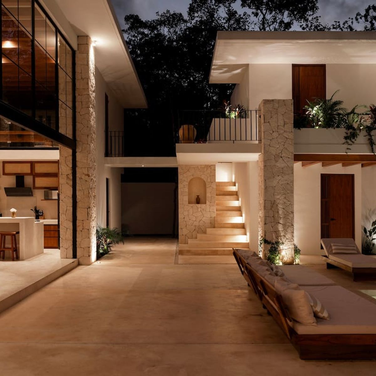 Three buildings form a U-shaped design, offering privacy, open spaces, and a natural flow that embraces the surrounding greenery. The villa embodies the spirit of Tulum—luxury through thoughtful design, organic materials, and a peaceful atmosphere.