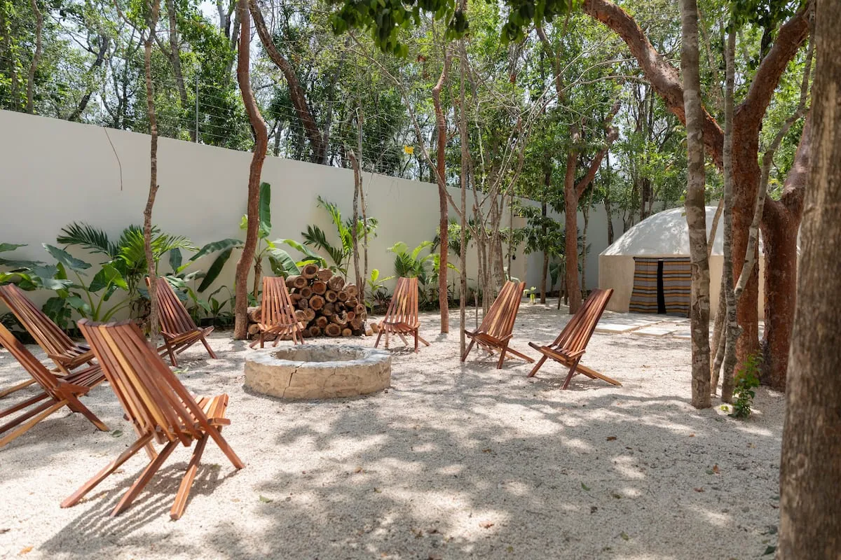 The Hacienda is located between Tulum town and the beach, about a 10-minute drive to the coast. Access is via dirt roads, adding to its secluded and tranquil setting inside of the jungle.