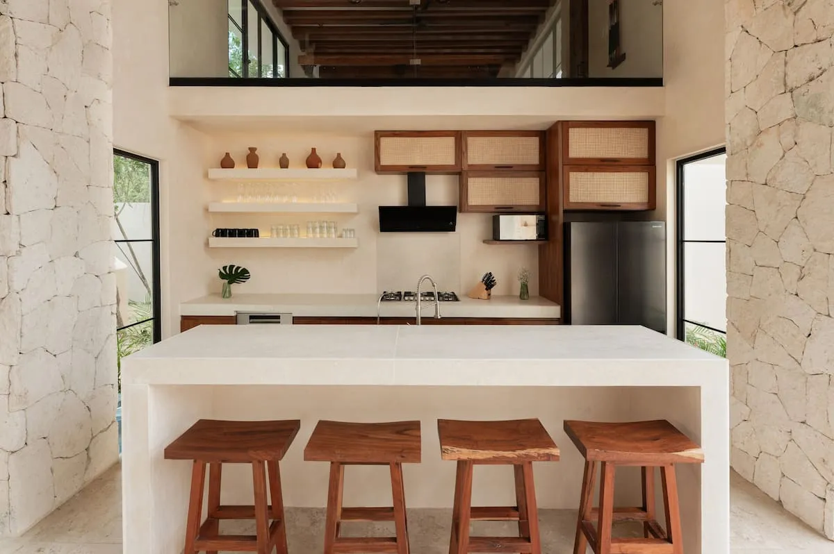 Set in the Mayan jungle, the villa blends traditional charm with modern sophistication. Handpicked minimalist design elements, including wooden beams, stone pillars, and chukum finishes, create a seamless connection between nature and architecture.