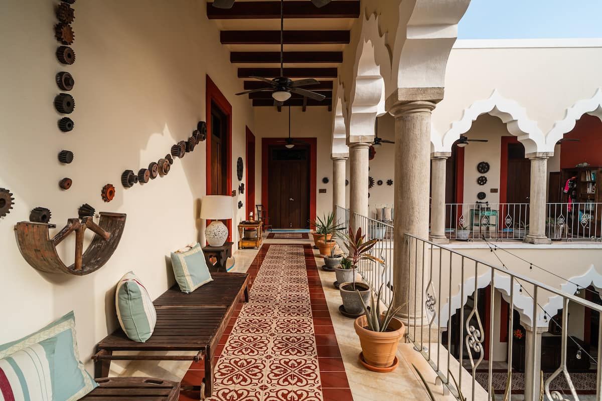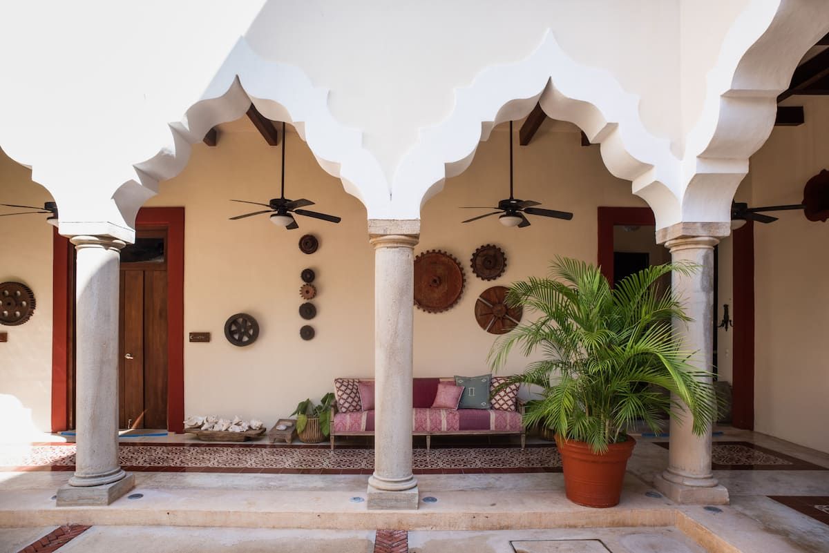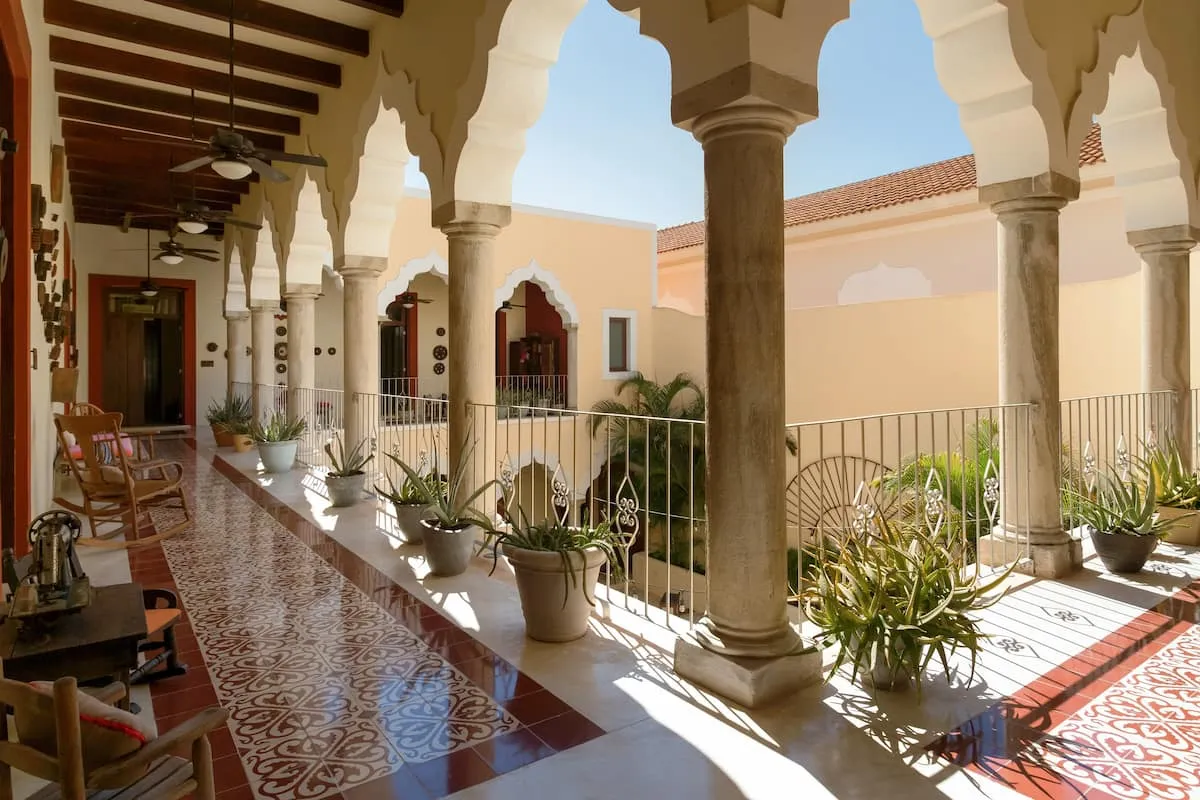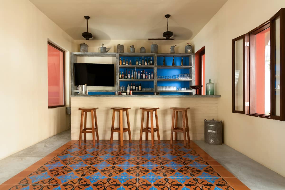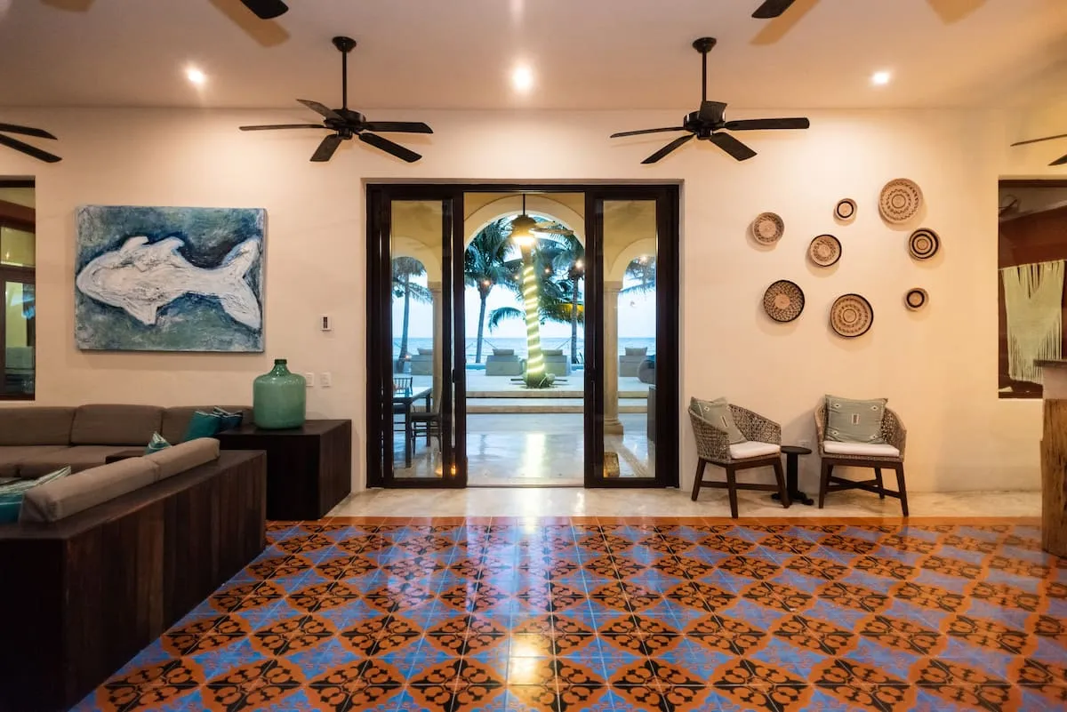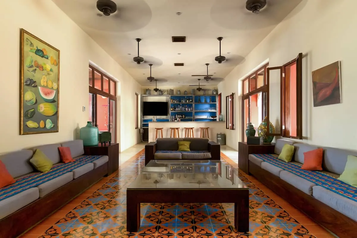 Inspired by traditional Mexican estates, the residence is laid out around a tranquil central courtyard. Follow the arched doorways into inviting living and dining areas with intricate tilework, vibrant fabrics, and sleek furnishings.