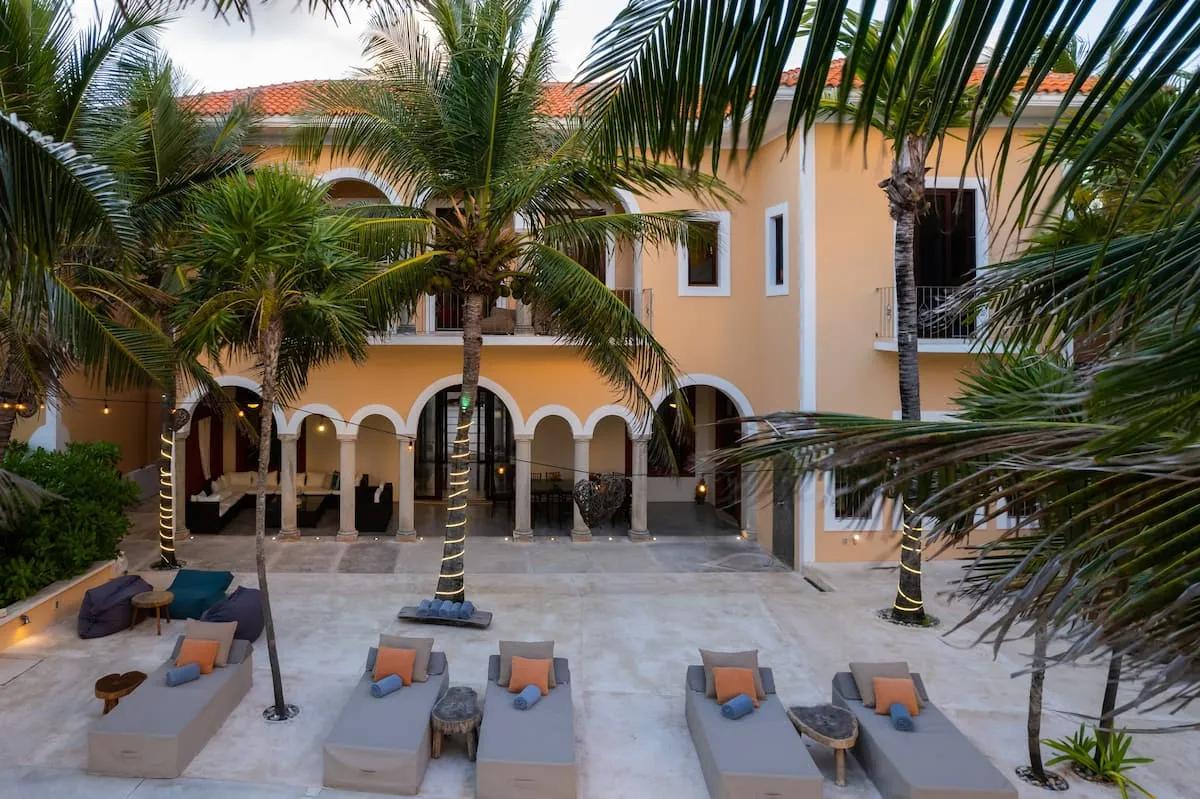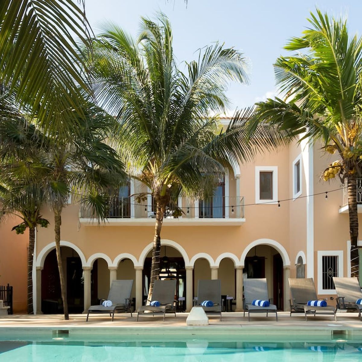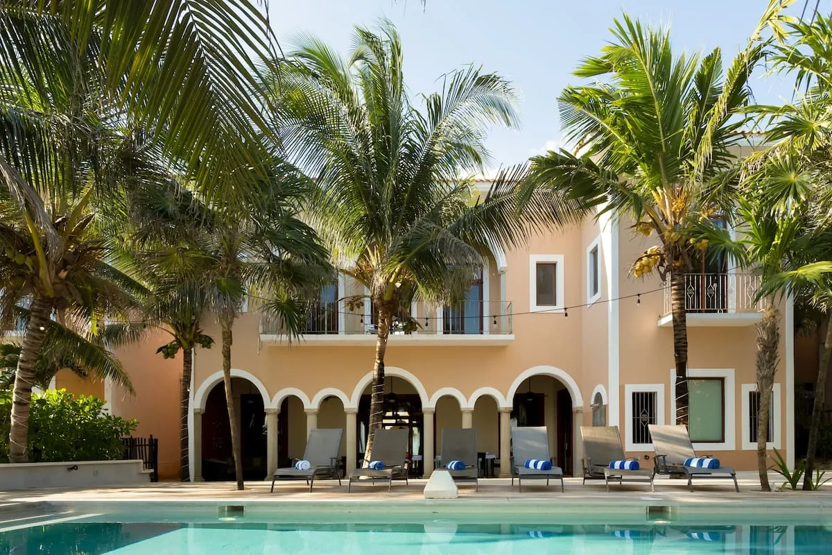 With its gorgeous beachfront location, charming hacienda-style architecture, and range of luxury amenities, Hacienda Corazon is a Riviera Maya vacation rental after your heart. Reserve its ten bedrooms for a getaway with up to twenty friends or extended family, or book with its two sister villas to host a family reunion, milestone celebration, or destination wedding.