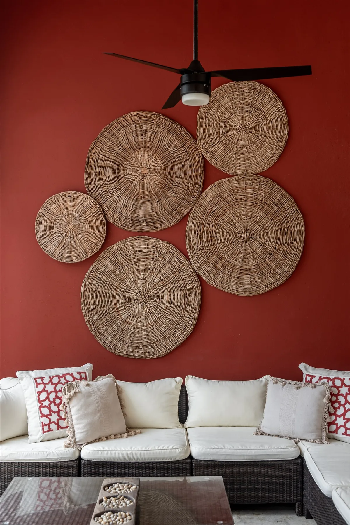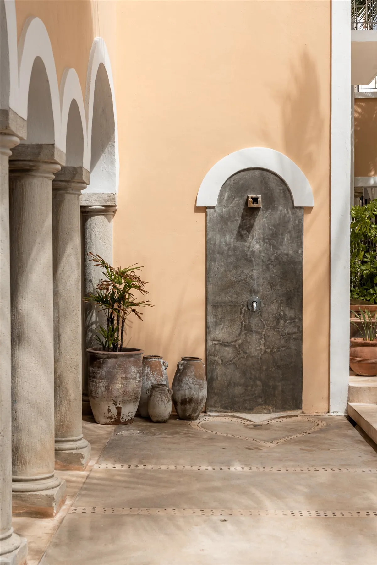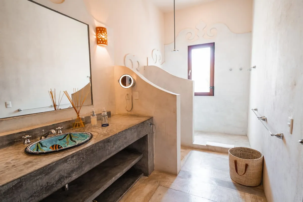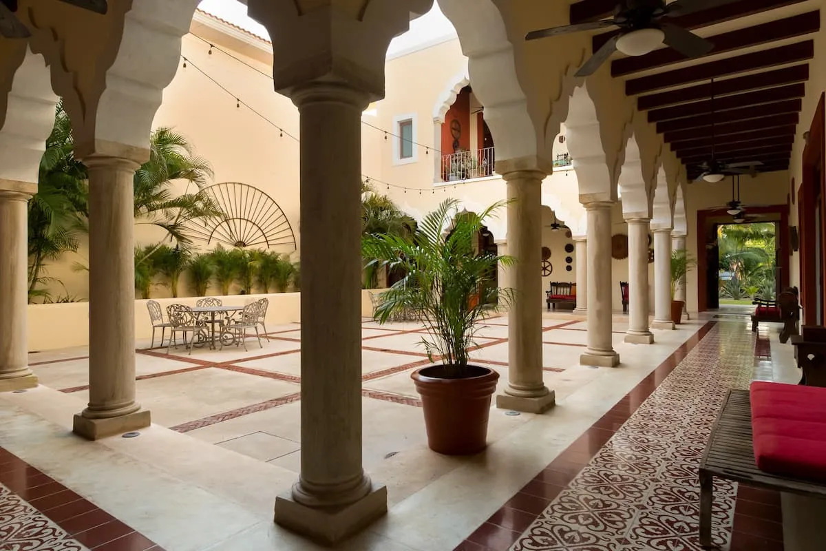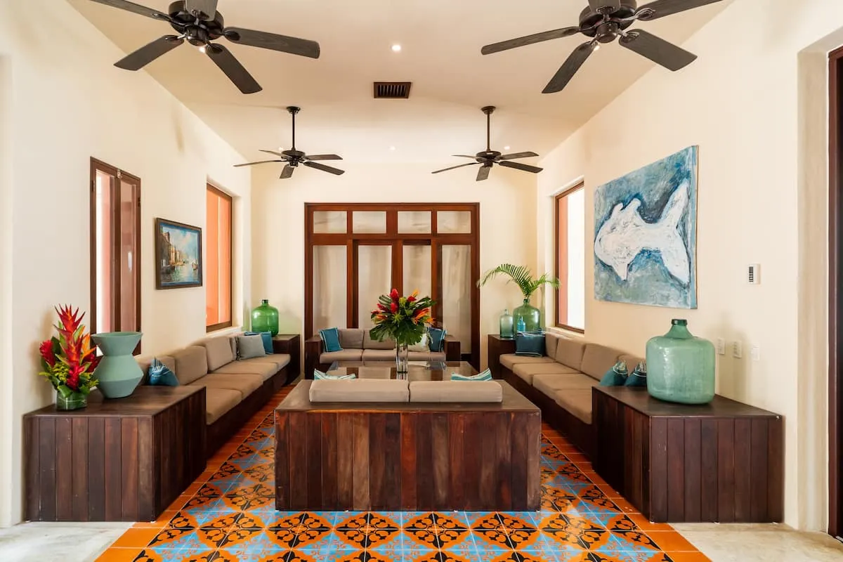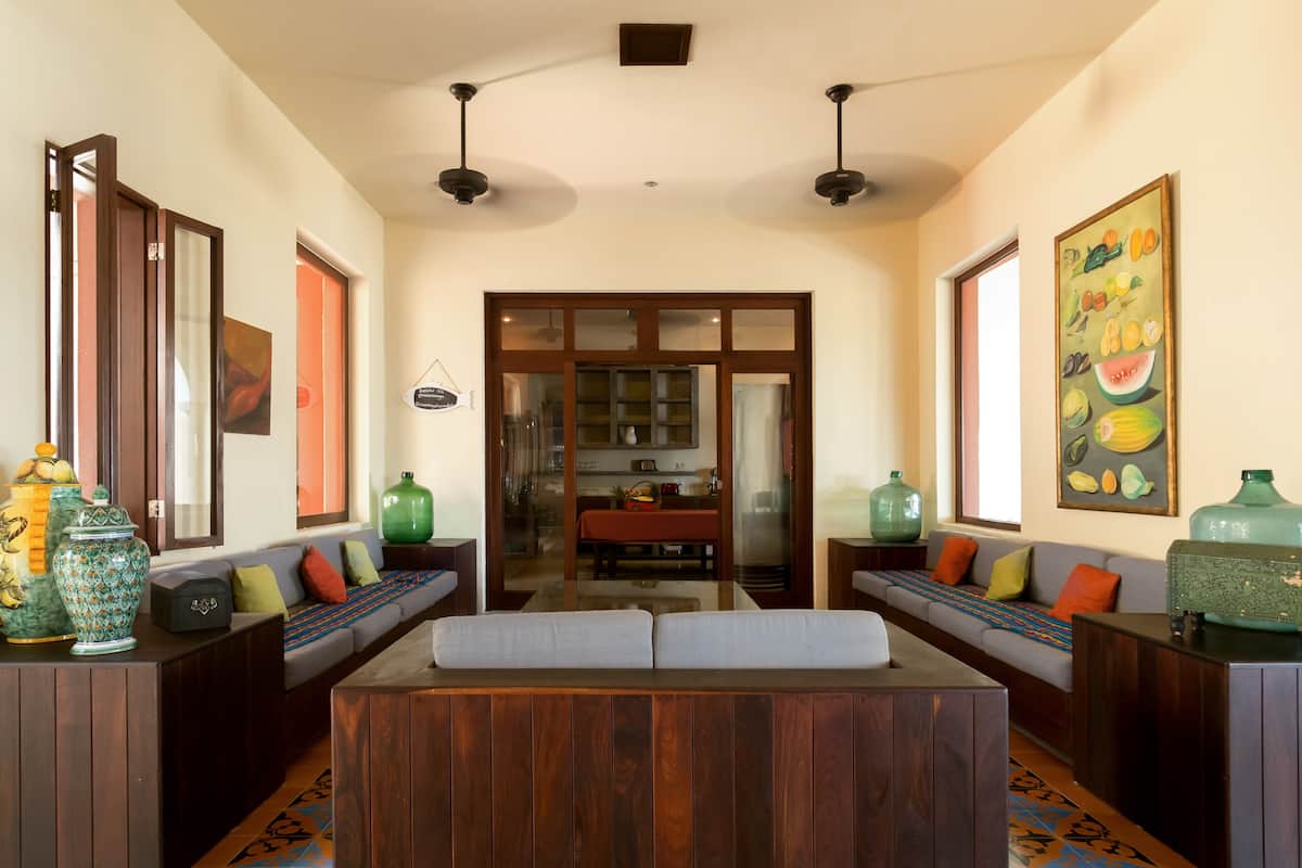 Inspired by traditional Mexican estates, the residence is laid out around a tranquil central courtyard. Follow the arched doorways into inviting living and dining areas with intricate tilework, vibrant fabrics, and sleek furnishings.